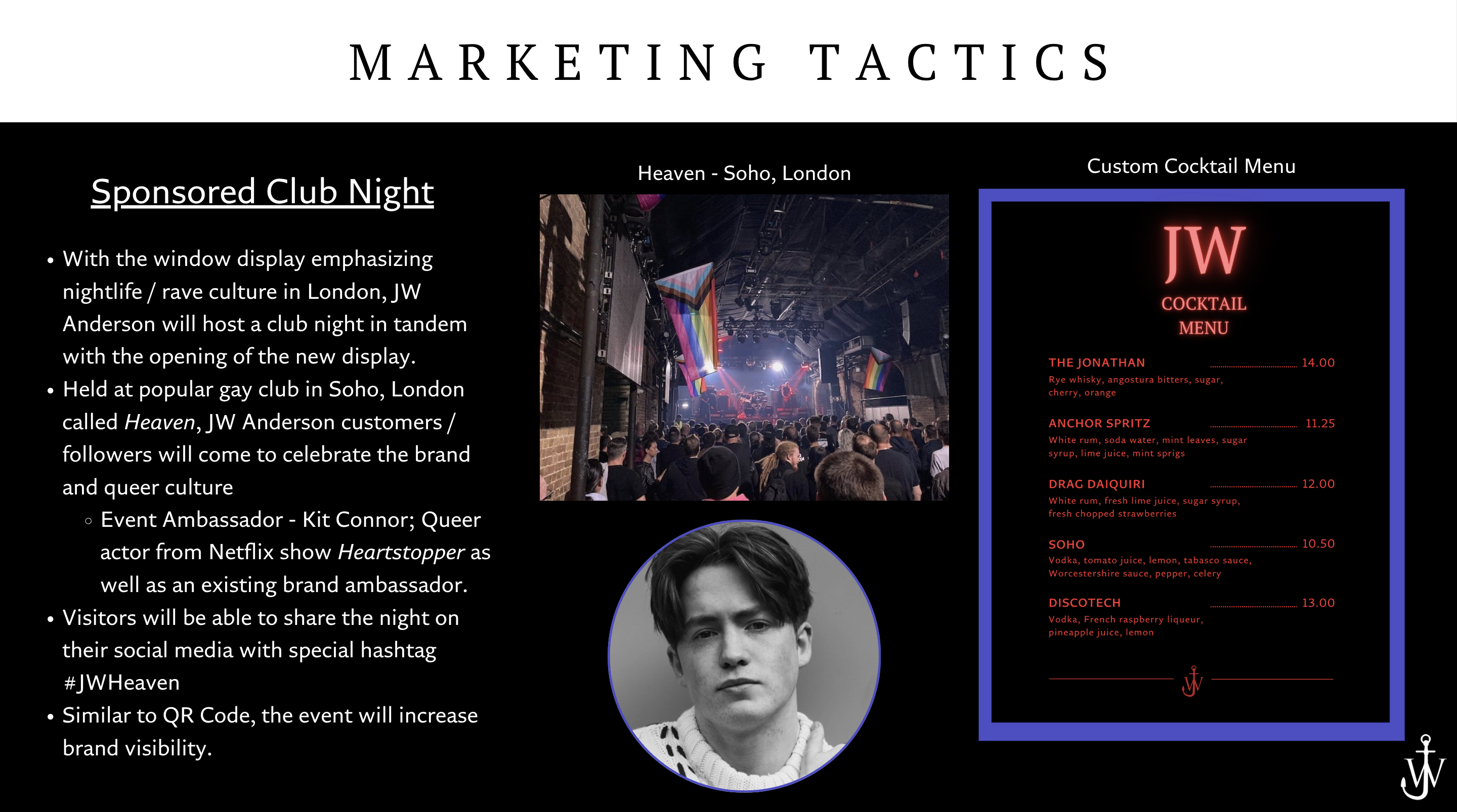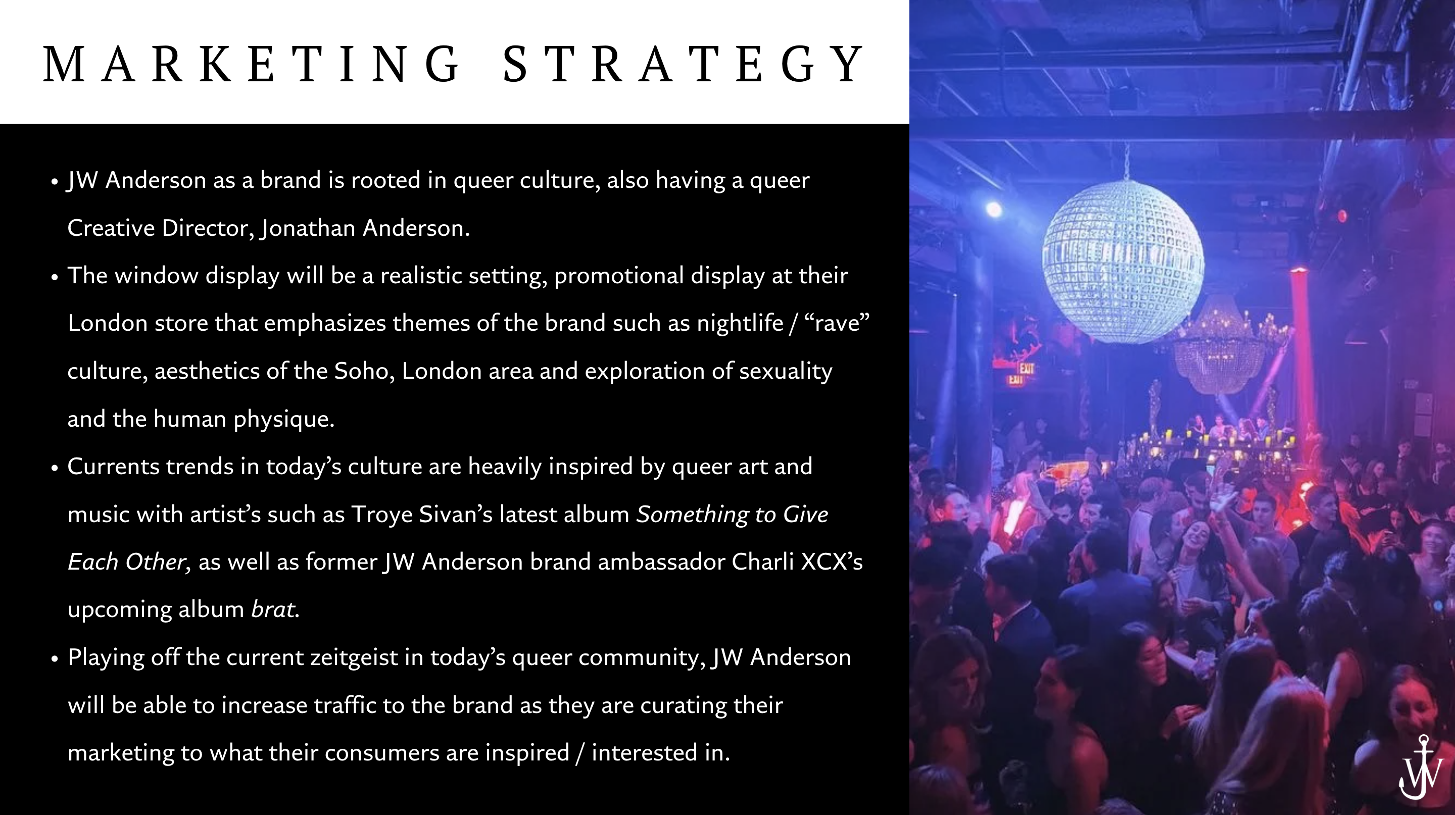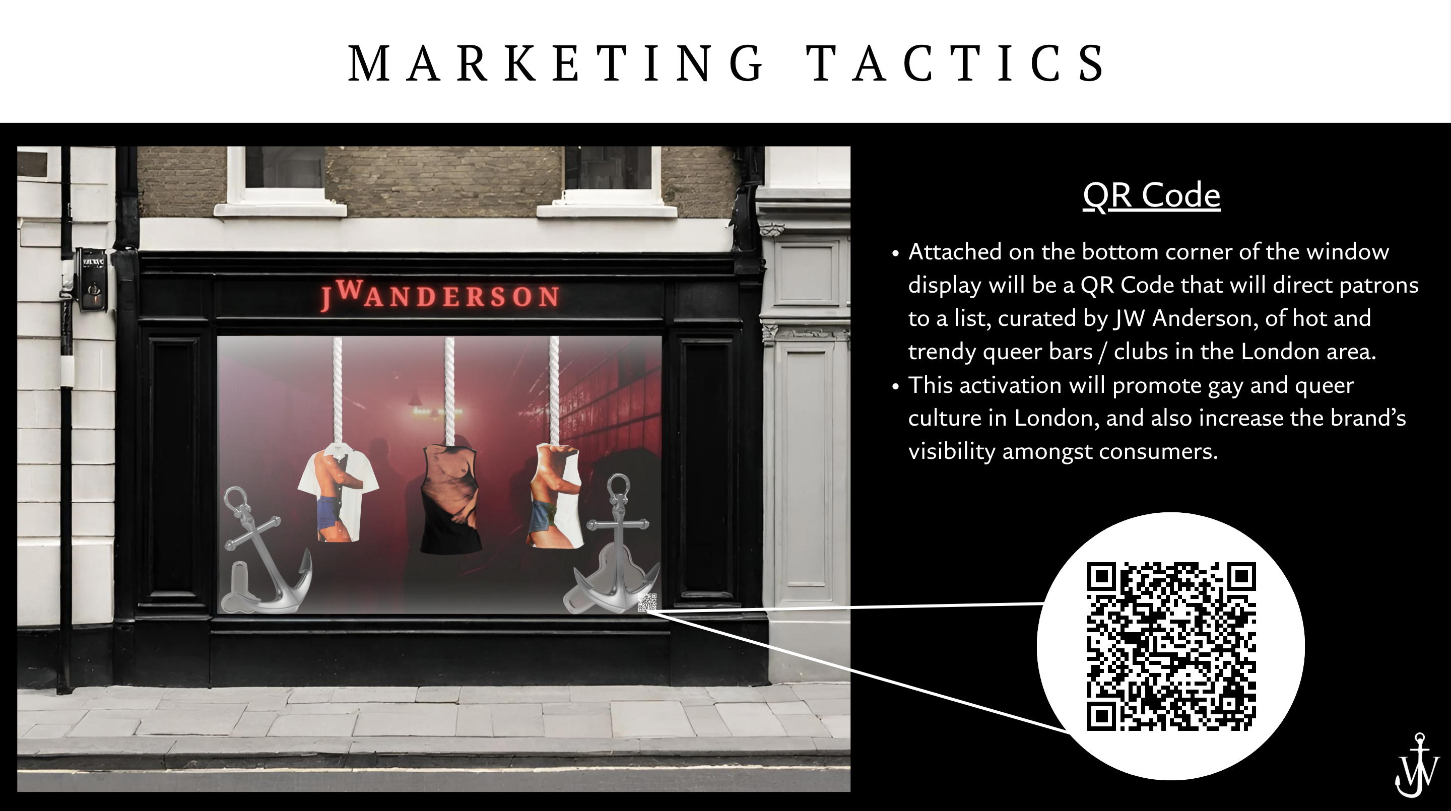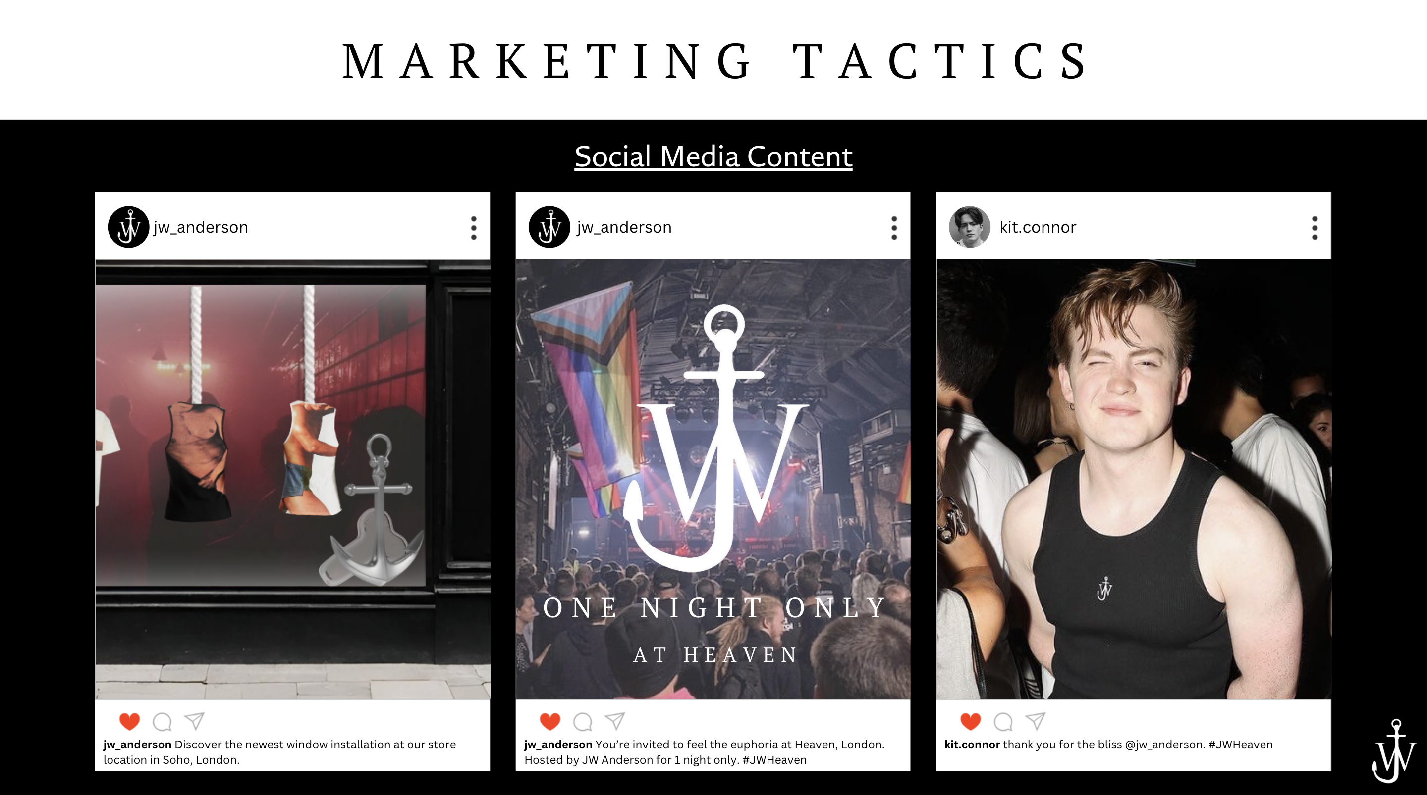 Playing off the current zeitgeist in today’s queer community, JW Anderson will be able to increase traffic to the brand as they are curating their marketing to what their consumers are inspired / interested in.