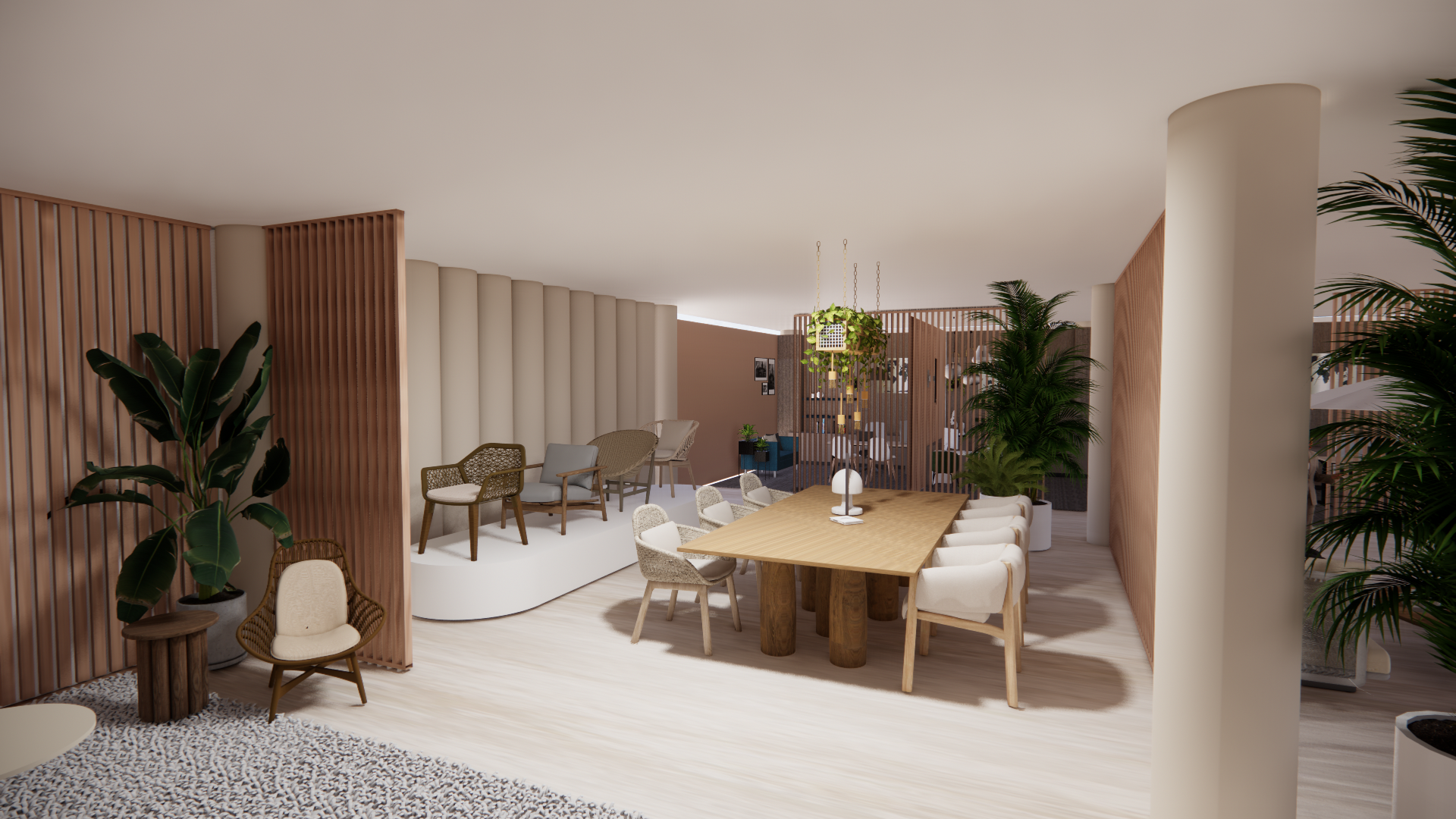 To create a showroom that reflects on the companys mision the space was designed to showcase their products in a way that is both visually stunning and functional. The concept of this furniture showroom is to create an immersive experience for customers, allowing them to explore and interact with the products in a space that is carefully curated to reflect the company's aesthetic and values.