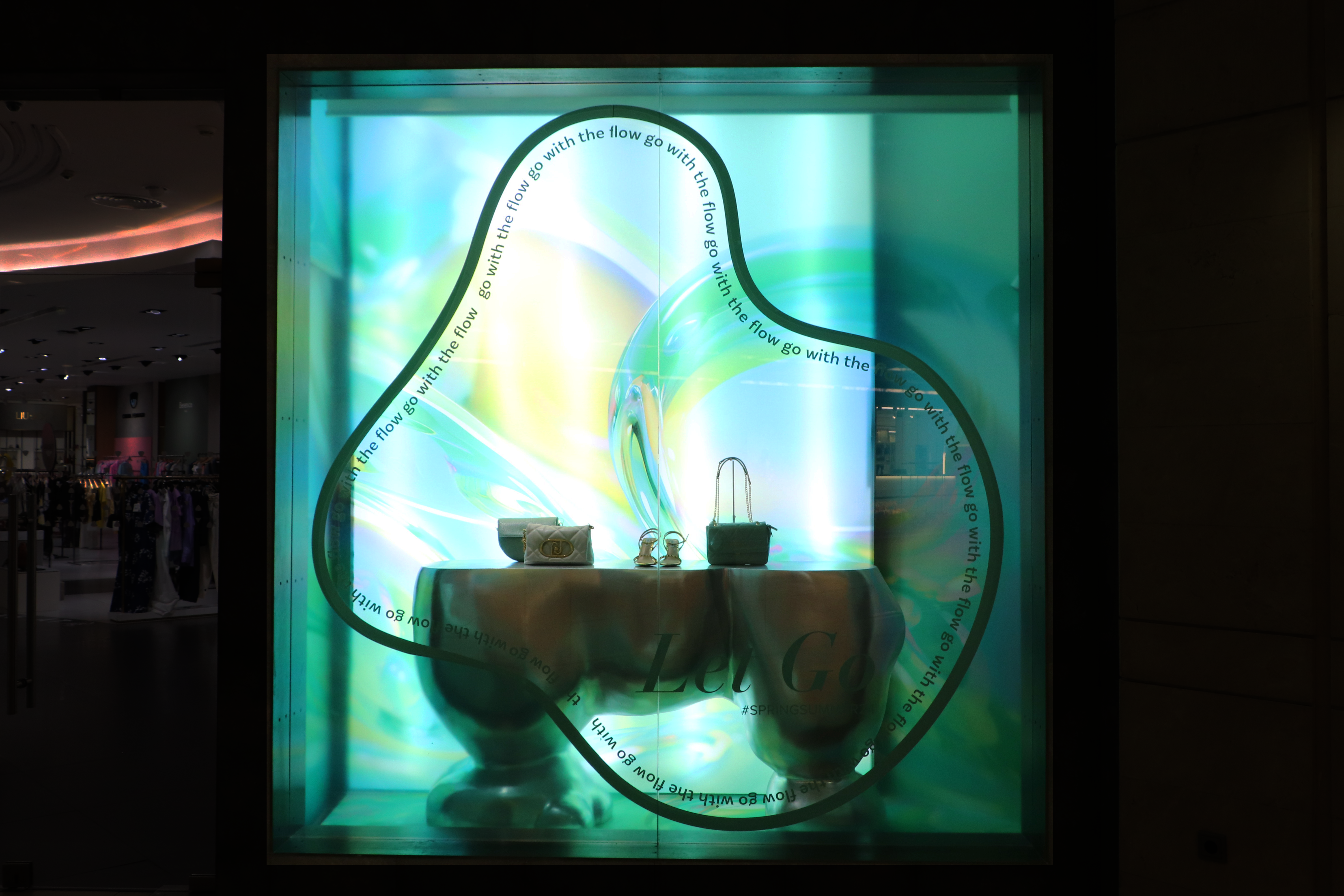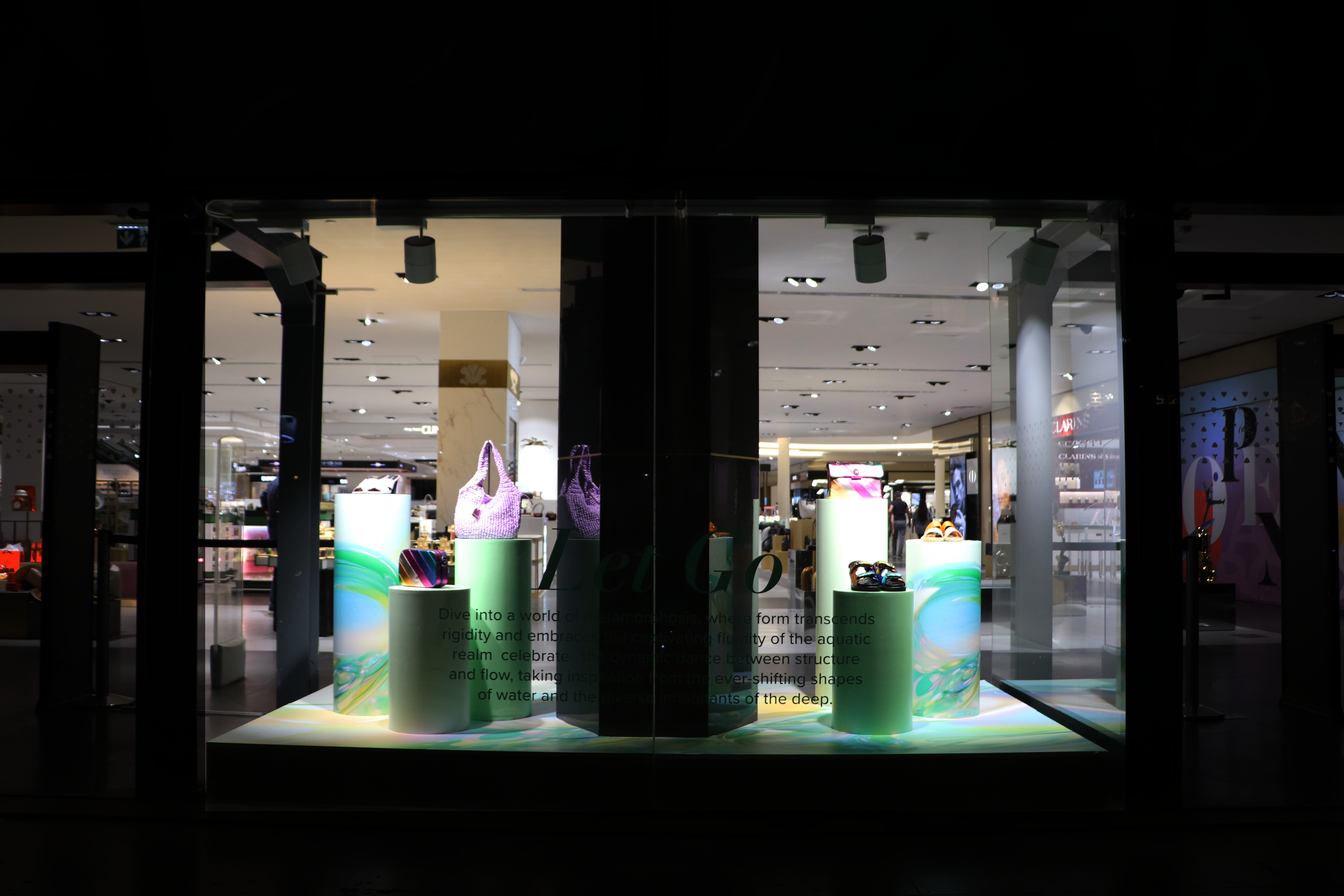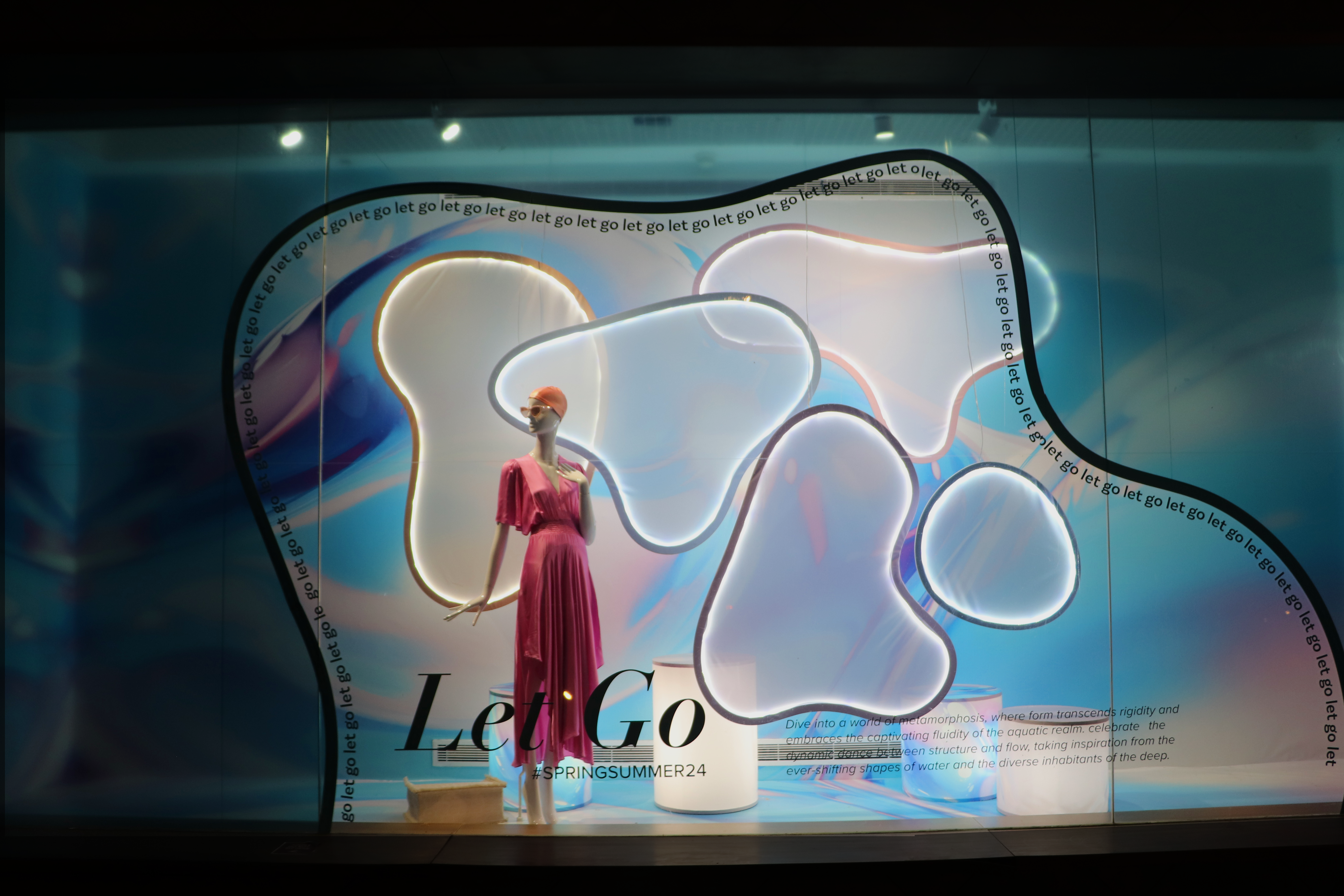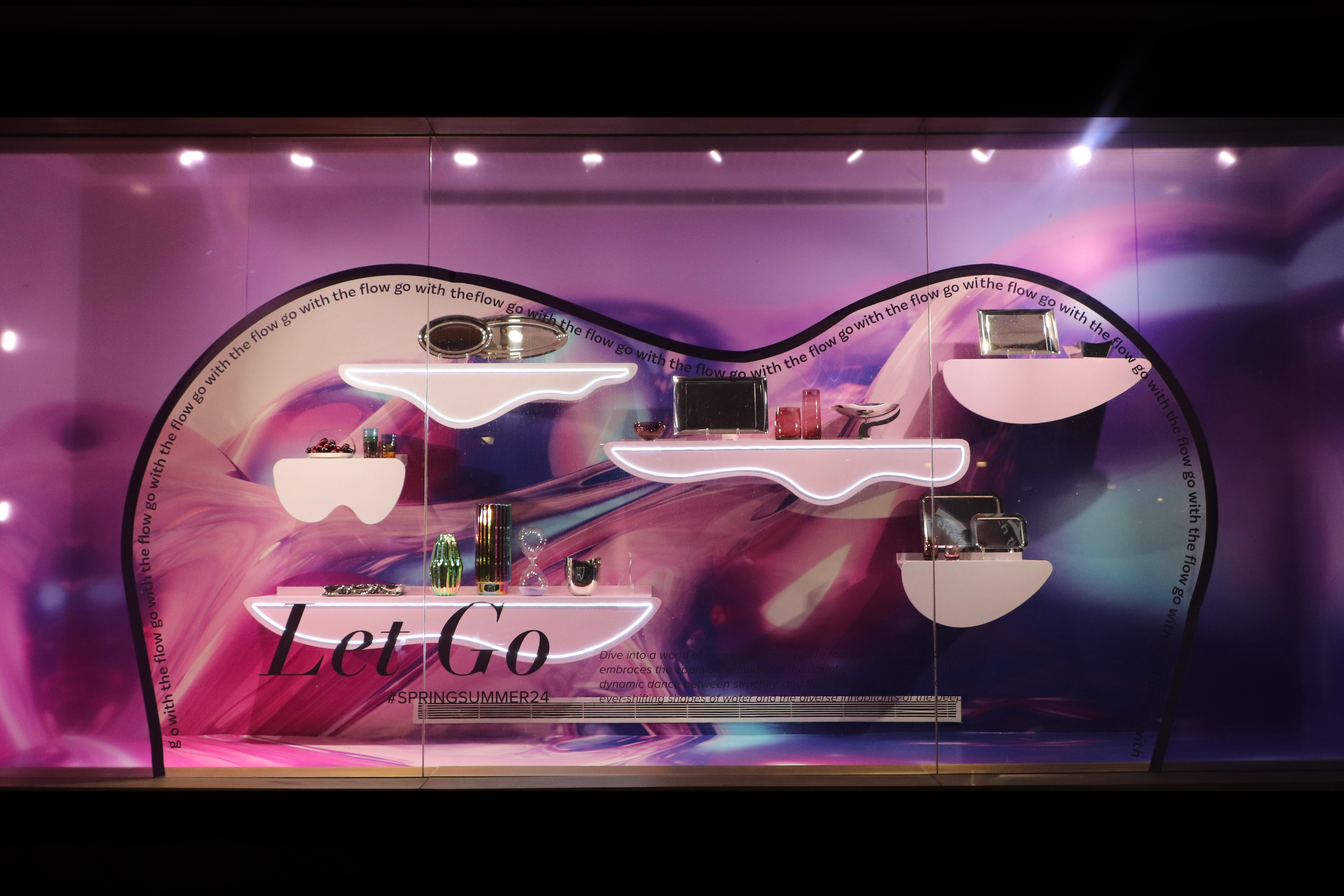Experience the allure of metamorphosis through our windows and in-store designs, where the essence of water is captured in every curve and flow.