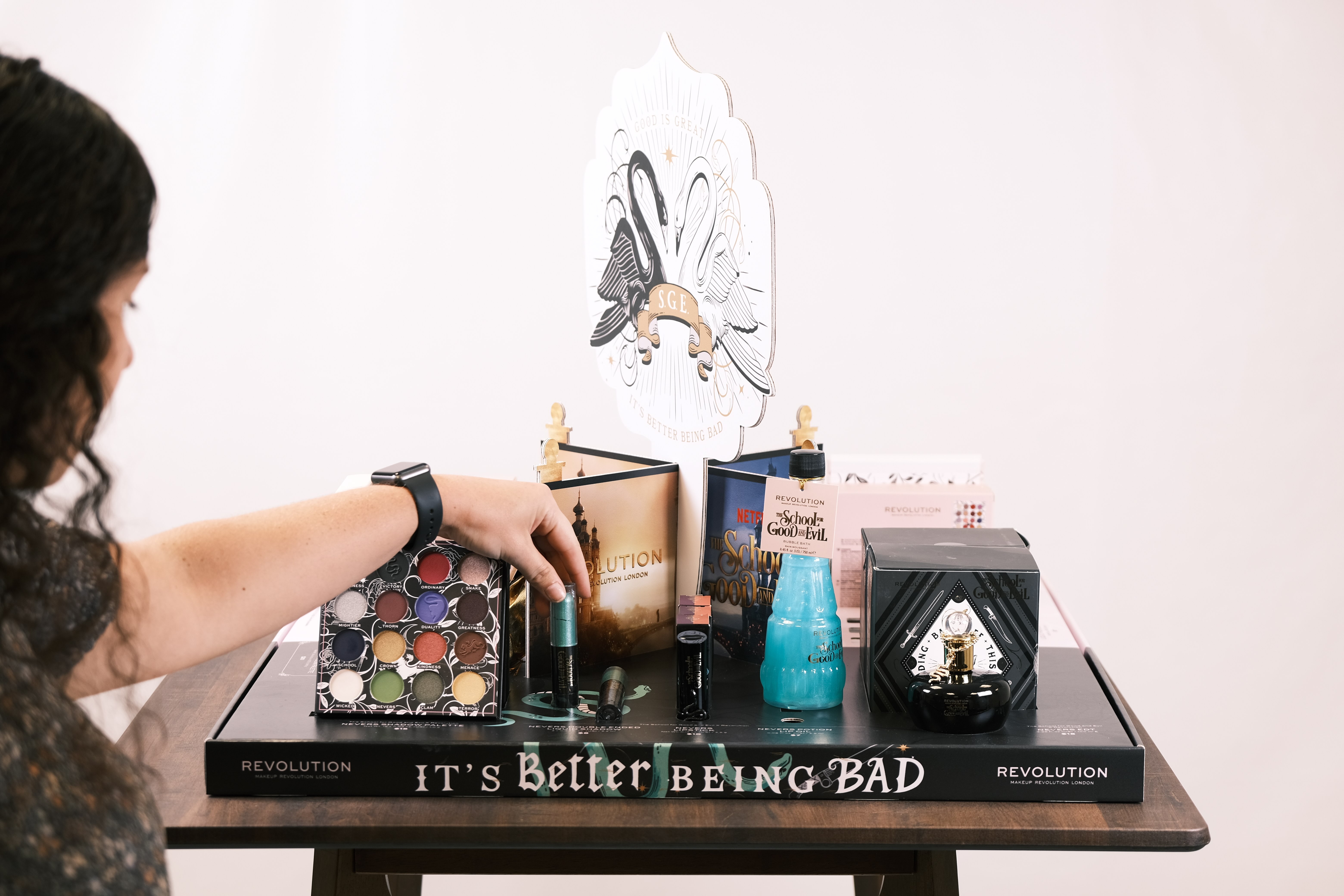 Innomark created this eye-catching display to coincide with Revolution Beauty’s School for Good and Evil product line launch. A multi-dimensional centerpiece leverages the movie’s iconic swan imagery to attract attention and engage shoppers. The design also utilizes color contrast (pink vs. black) to capture the brand story and categorize products. Its trays were shoppable from all four sides and fit the retailer’s existing fixture, while showcasing test product and merchandising a variety of brushes, sleeping masks, mirrors, and more.