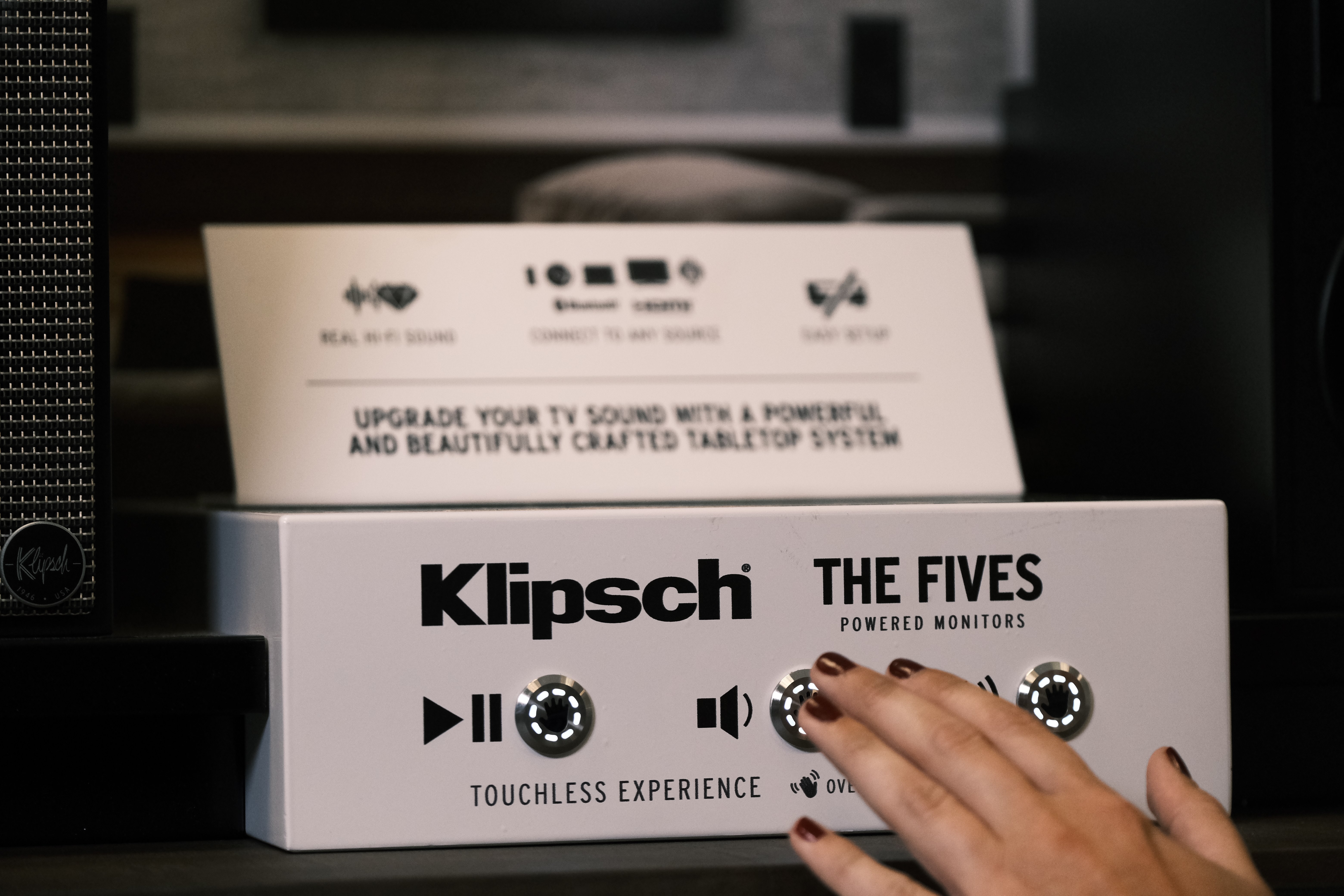 Innomark partnered with Klipsch to create this touchless demo display that showcased The FIVES powered speaker system, while attracting attention, engaging shoppers, and motivating purchase. This solution includes a metal body, melamine inlays, touchless controls, and an EPVC backer and button graphics. The plug-and-play design allowed store associates to simply remove packaging, place the display, and plug in to activate. Meanwhile, the touchless controls enabled shoppers to test the system without the need for physical contact at a time when sanitization was essential to the in-store experience.