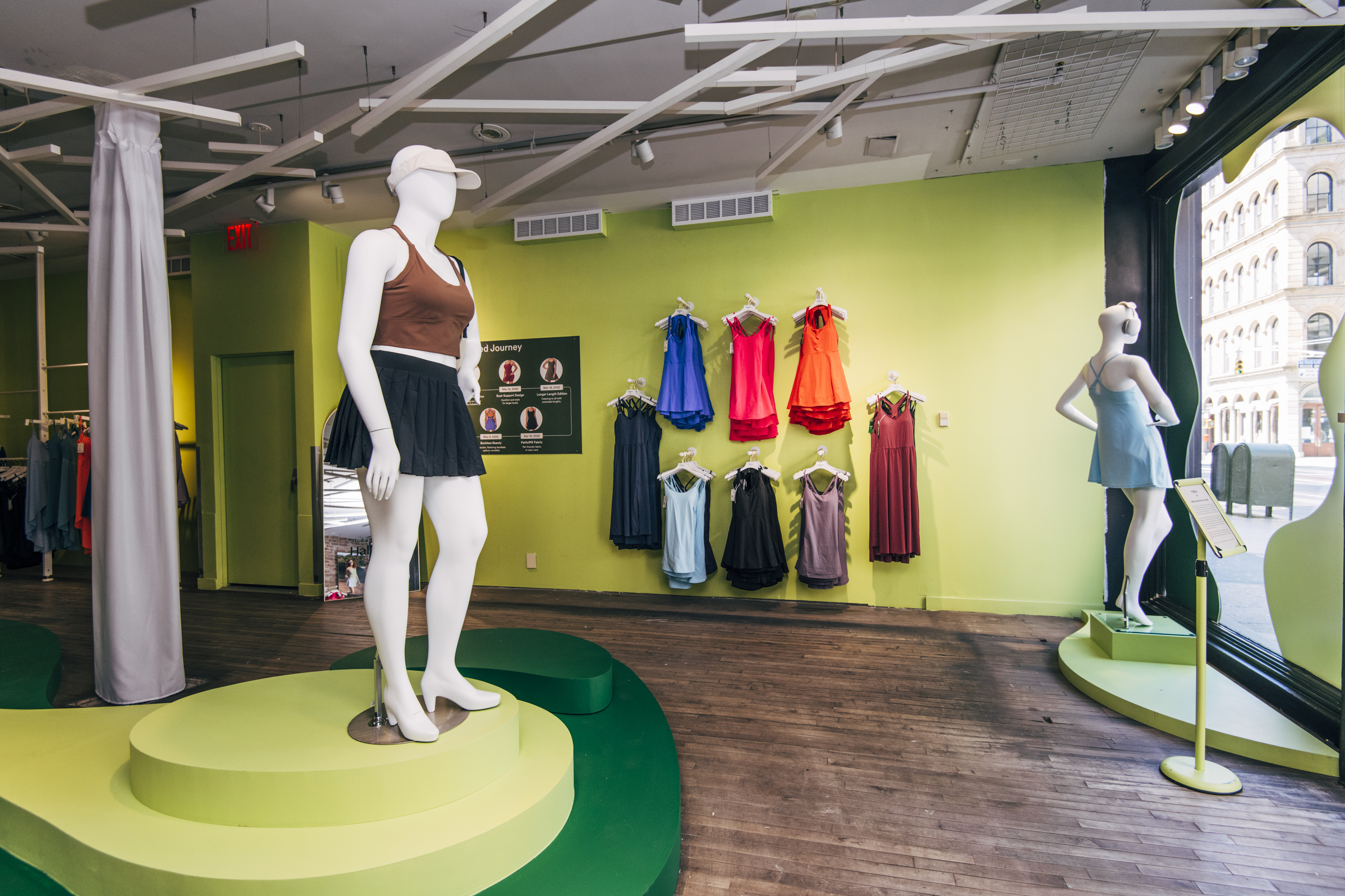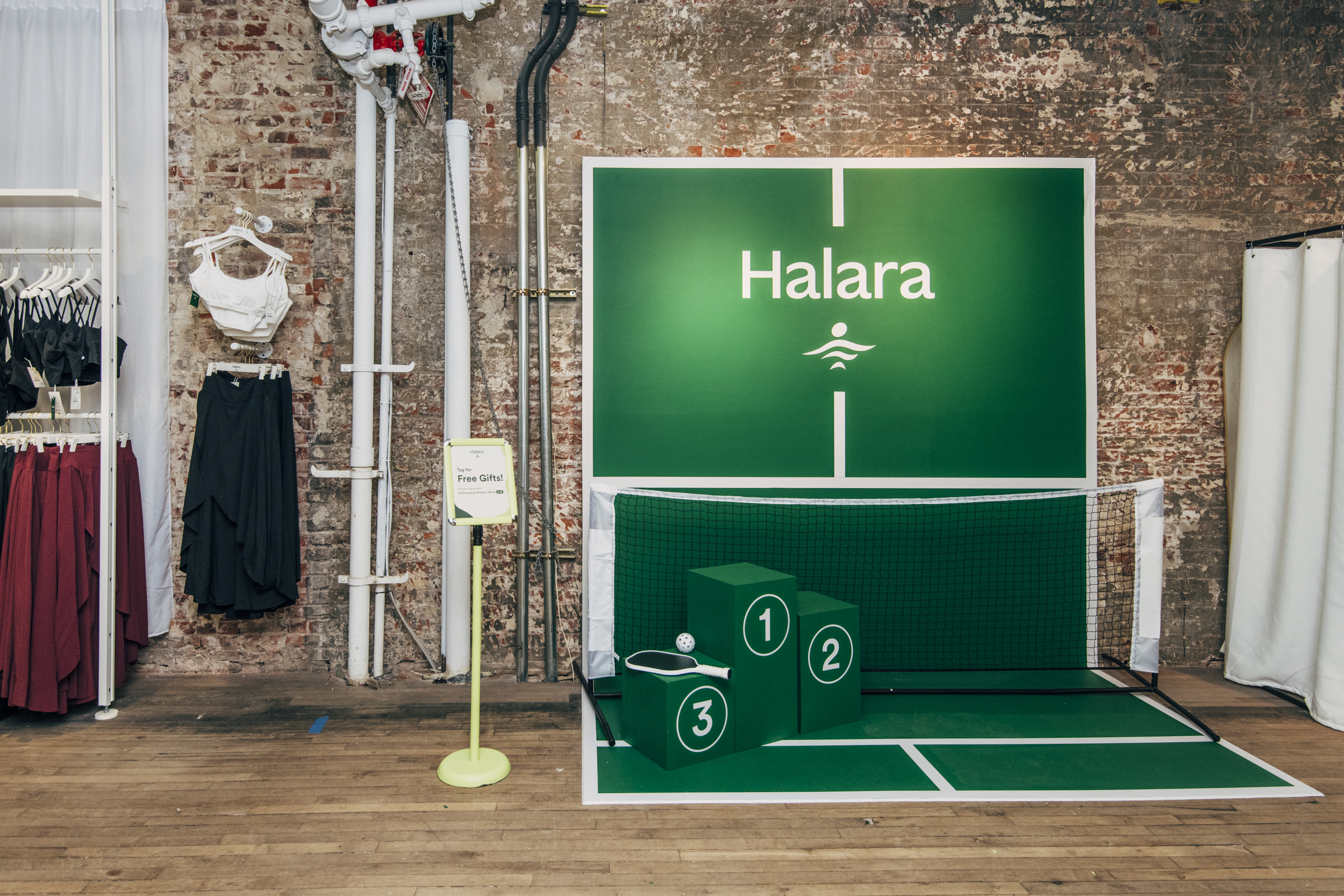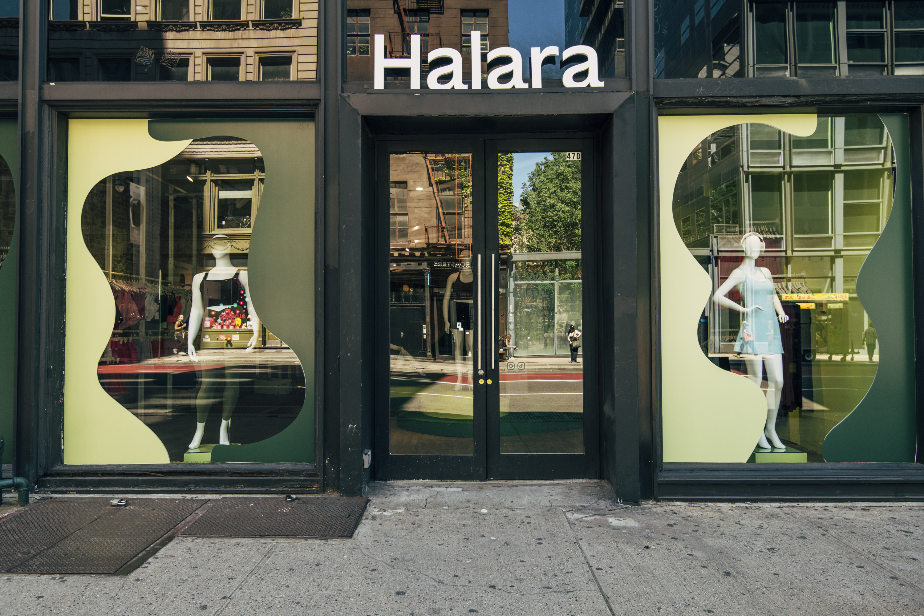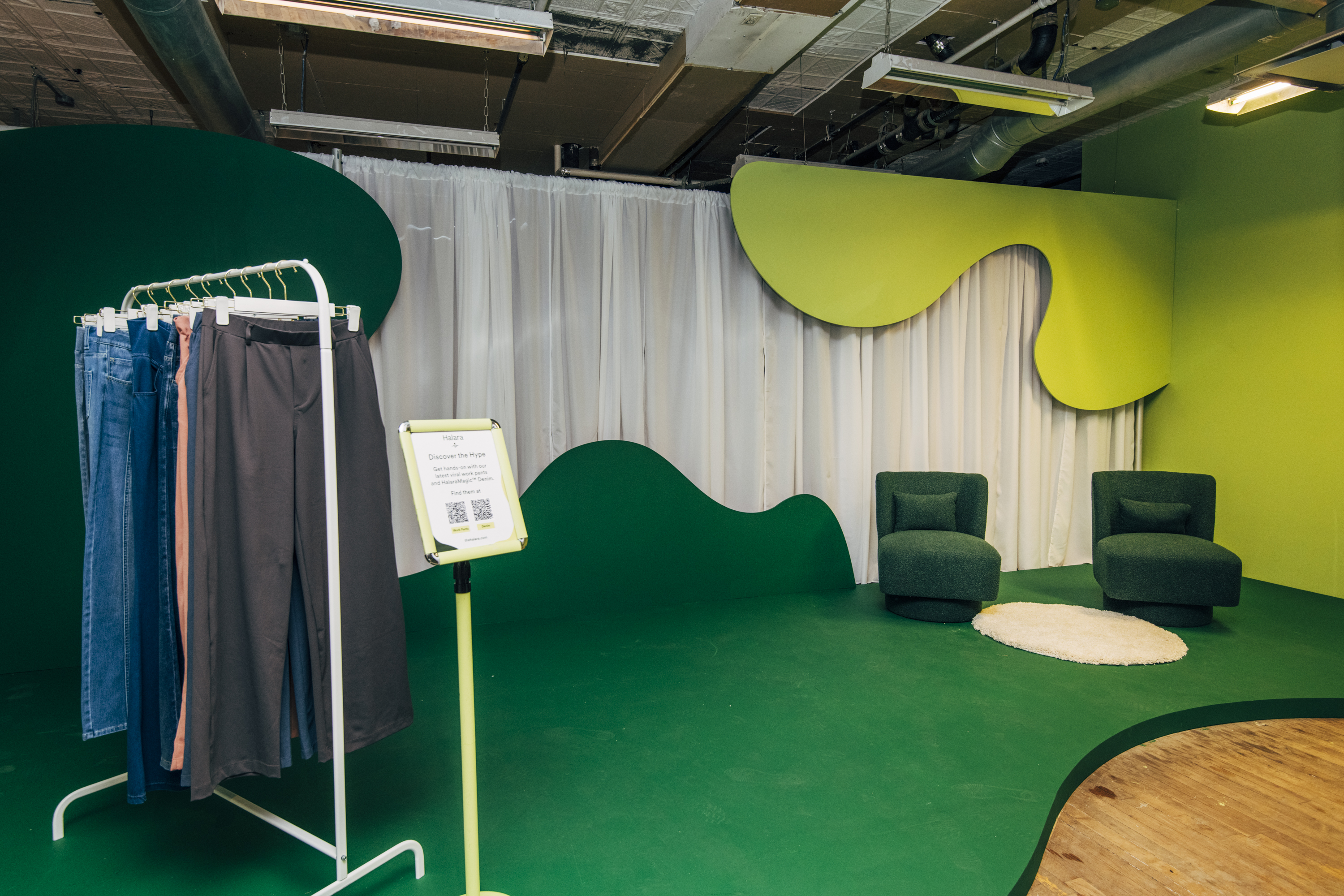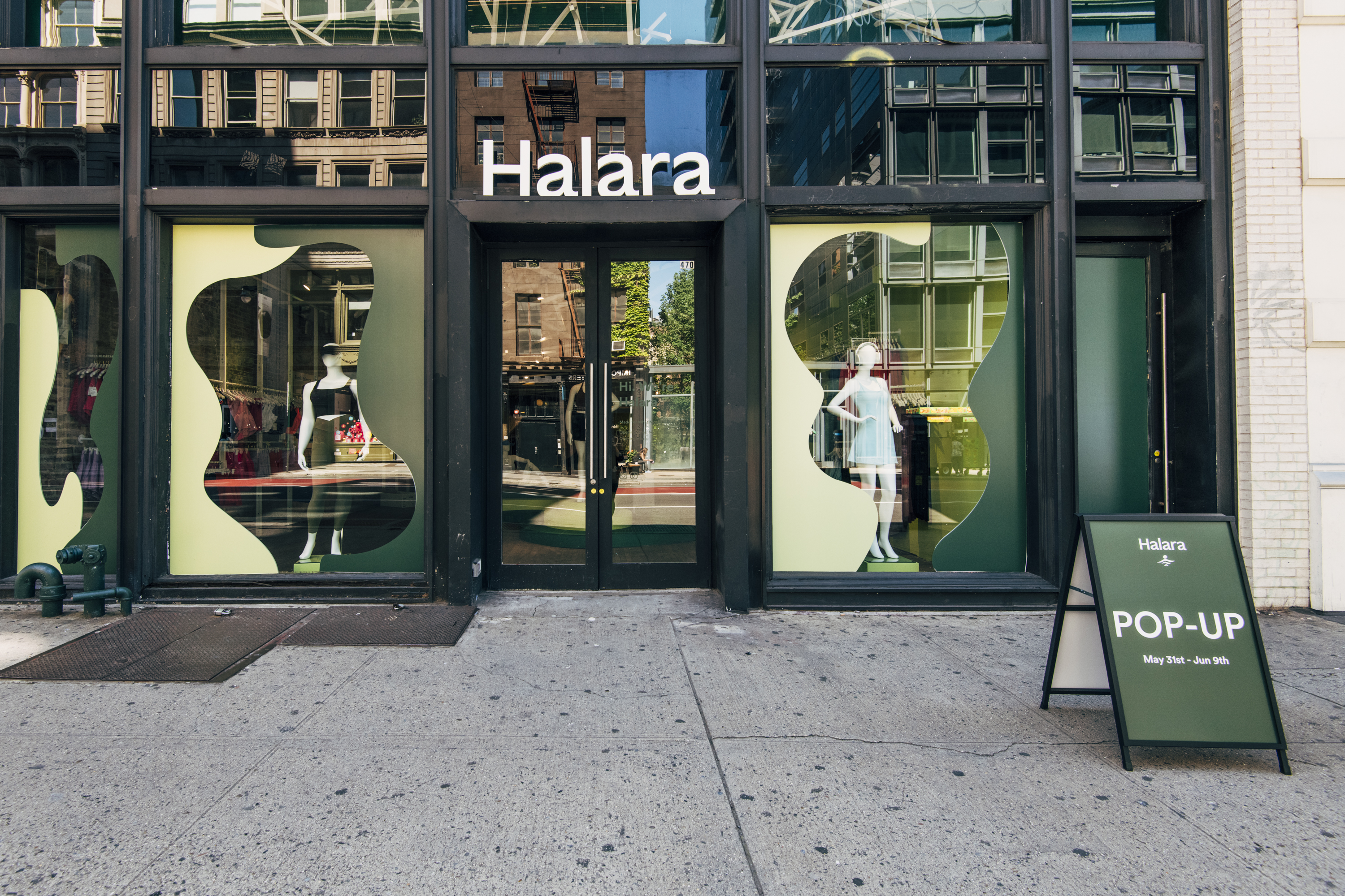 Halara Pop-Up showroom and window fabrication and install by Argon Props. Designed and produced by PopUpMob. Photo credit: Alyssa Greenberg.