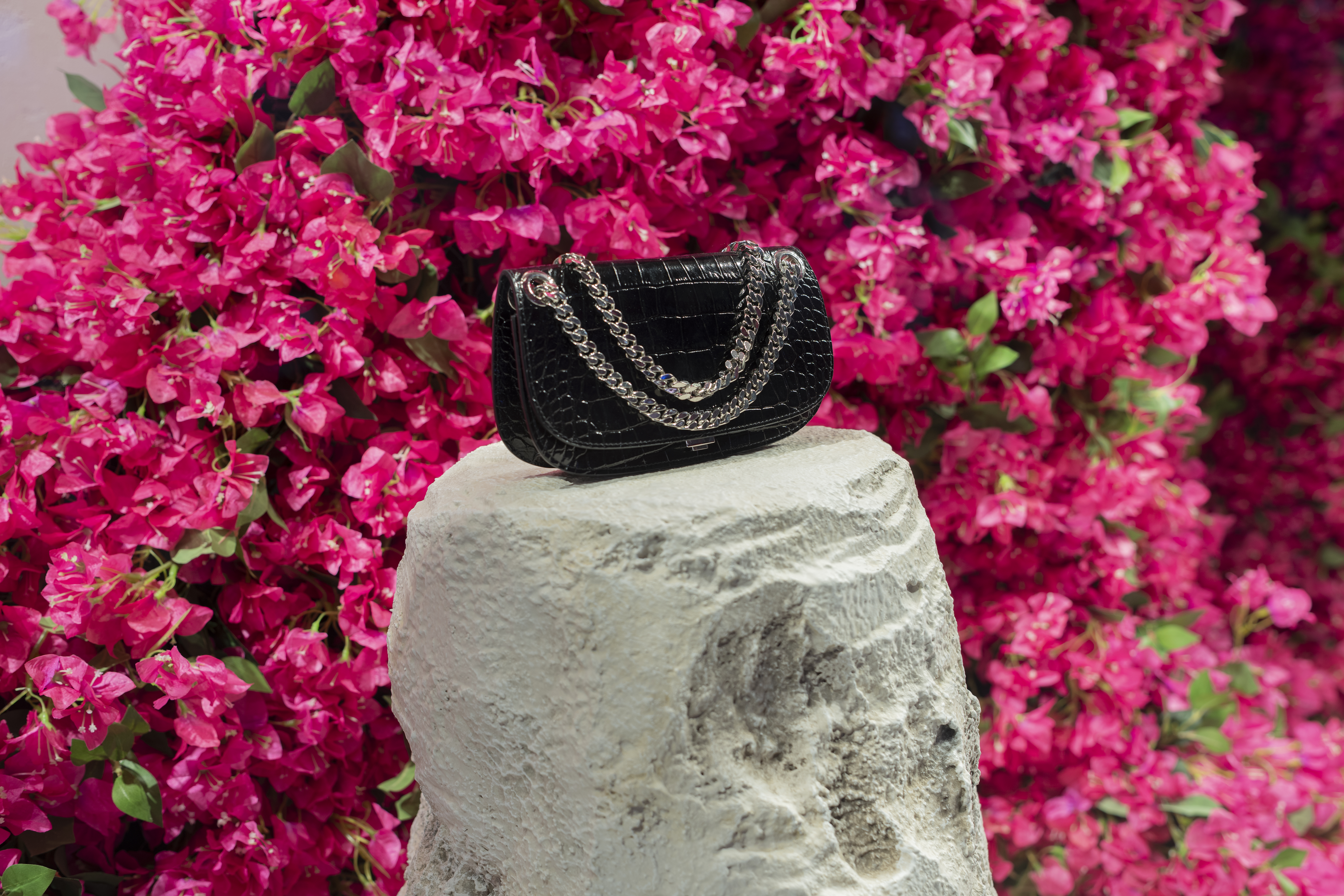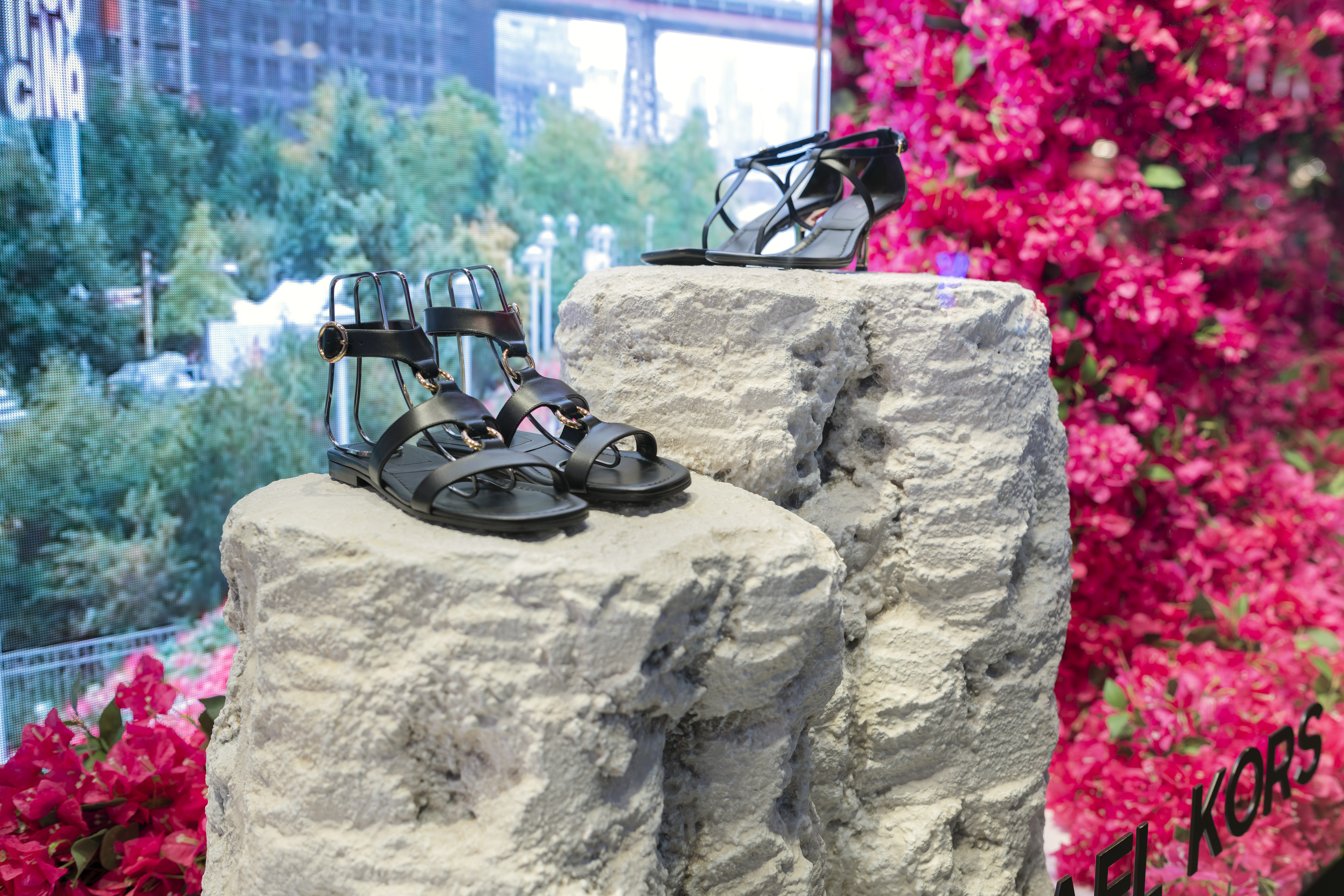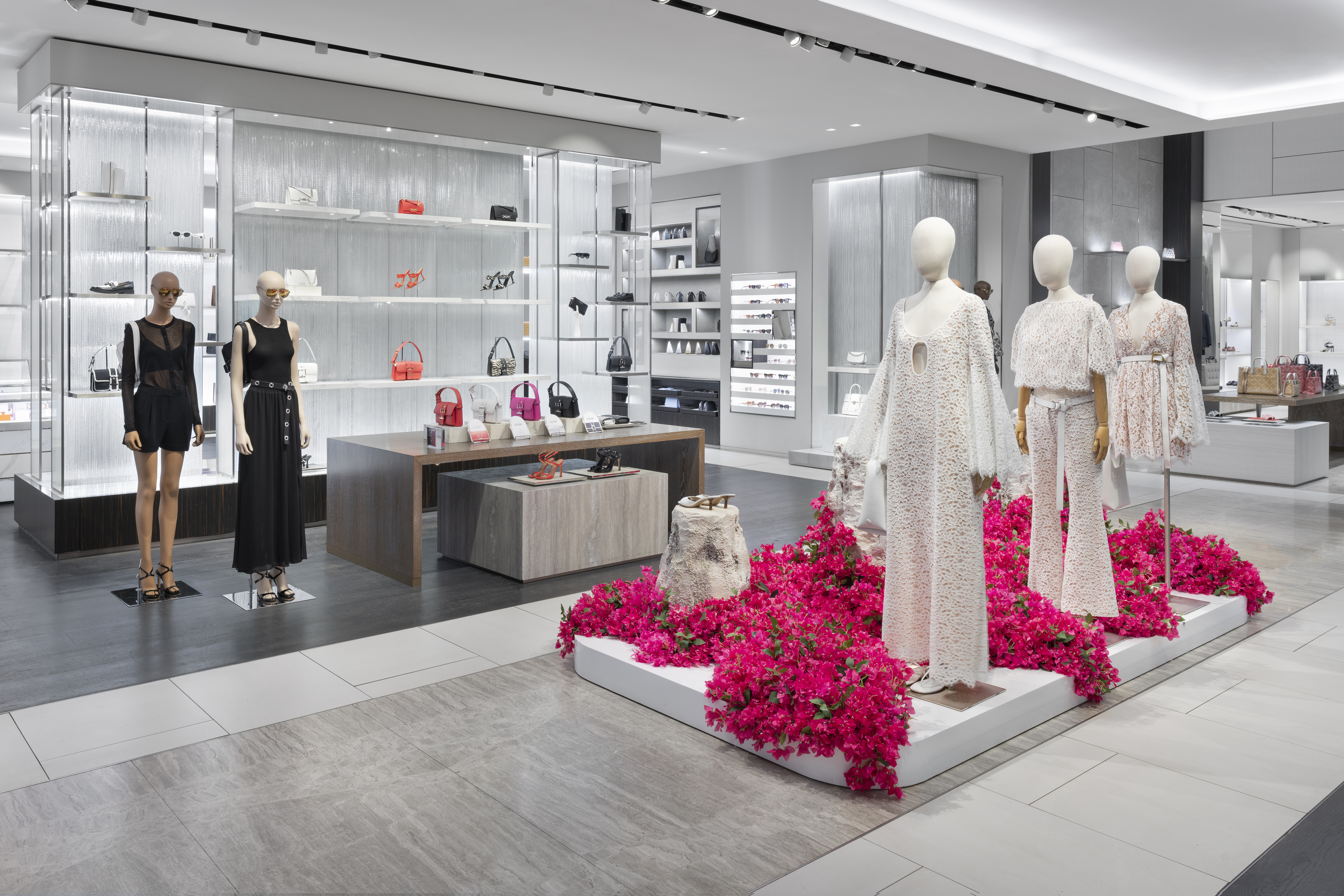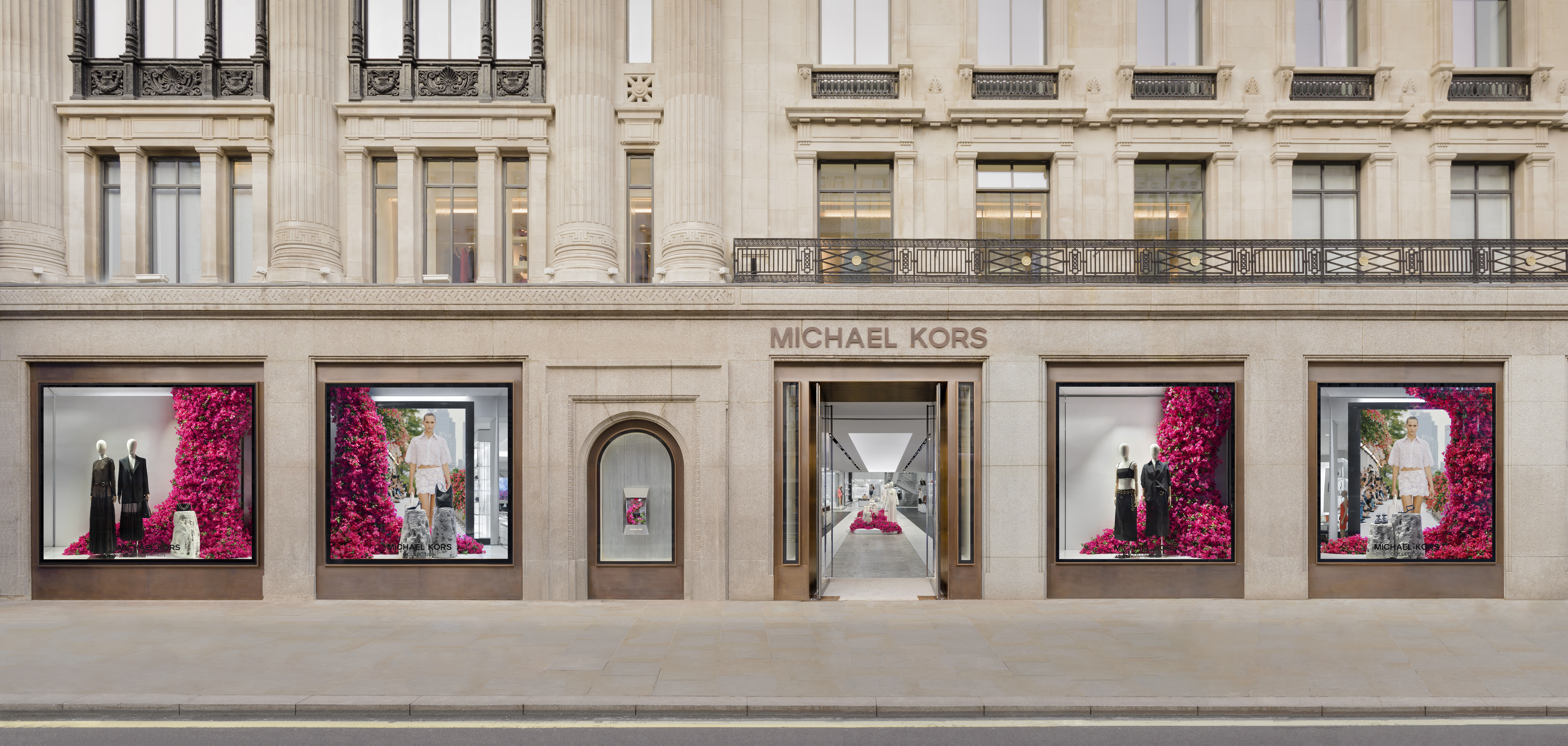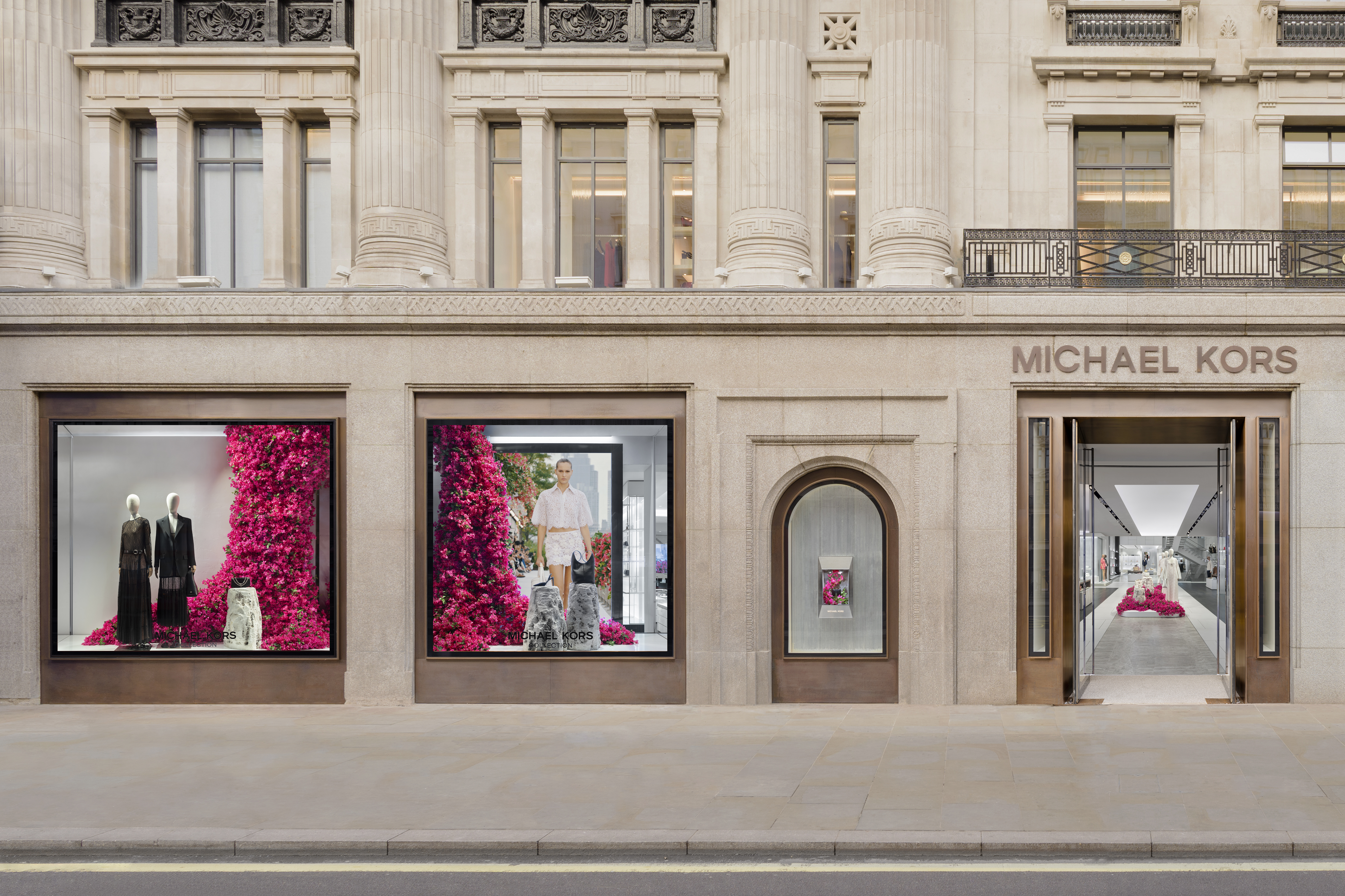 Michael Kors' Spring 2024 window animation effortlessly captures the vibrant essence of Capri, Italy, through a captivating display of bougainvillea flowers. The animation features these lush, magenta blooms cascading gracefully across the store windows, evoking the island's romantic charm and sun-drenched beauty. The fluid motion of the flowers and the soft, Mediterranean-inspired color palette transport viewers to the idyllic coastal setting, perfectly encapsulating the spirit of Kors' latest collection.