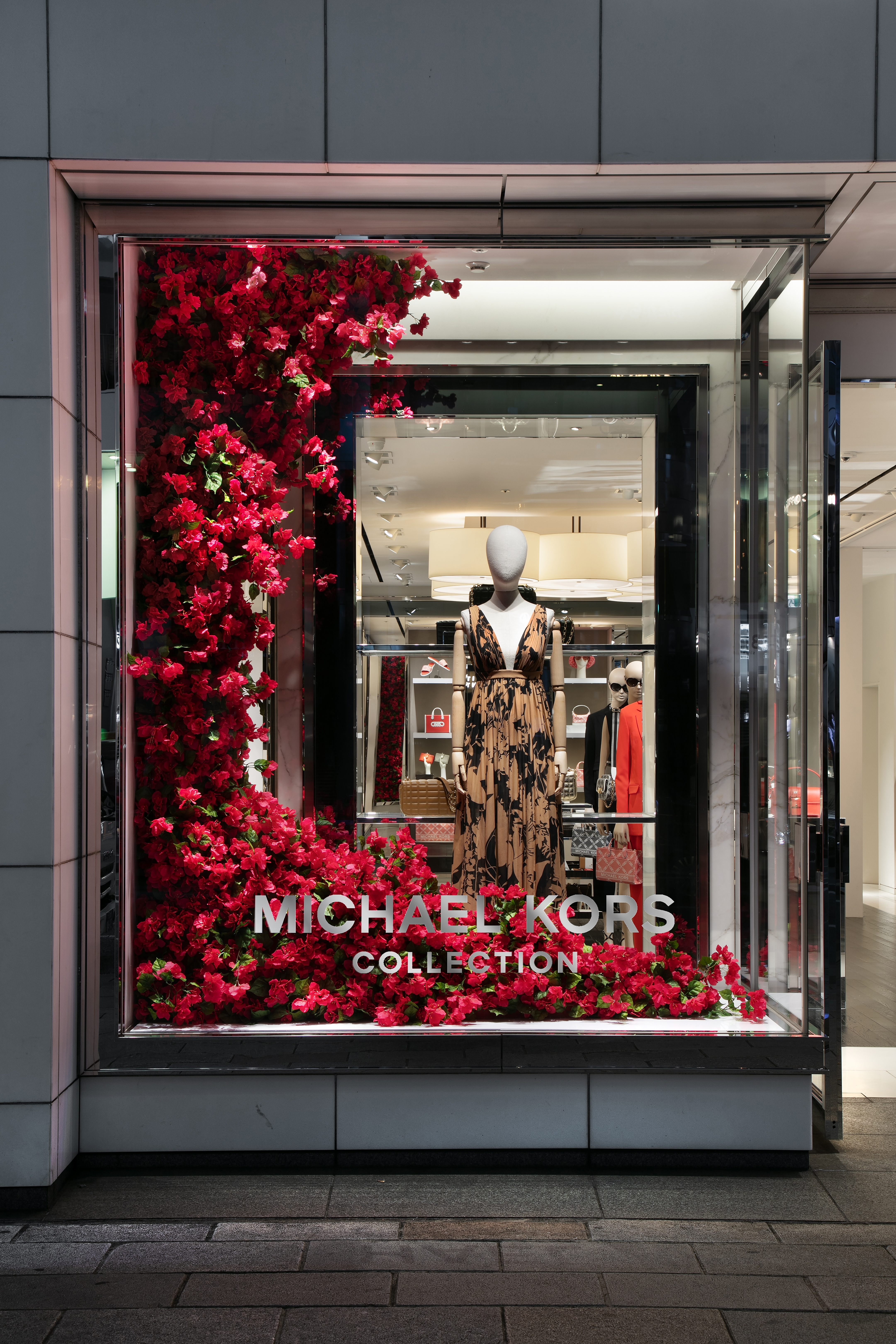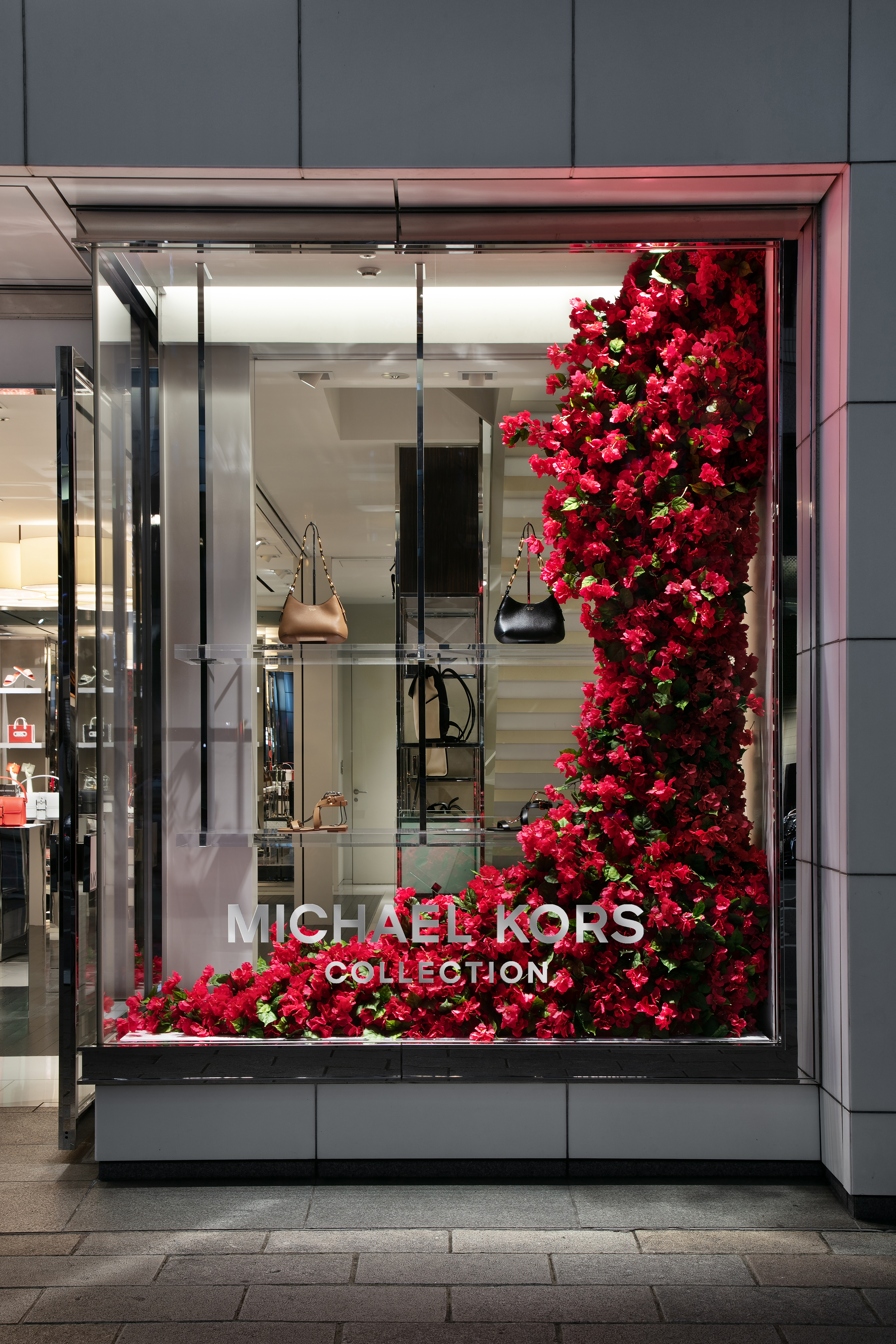 Michael Kors' Spring 2024 window animation effortlessly captures the vibrant essence of Capri, Italy, through a captivating display of bougainvillea flowers. The animation features these lush, magenta blooms cascading gracefully across the store windows, evoking the island's romantic charm and sun-drenched beauty. The fluid motion of the flowers and the soft, Mediterranean-inspired color palette transport viewers to the idyllic coastal setting, perfectly encapsulating the spirit of Kors' latest collection.