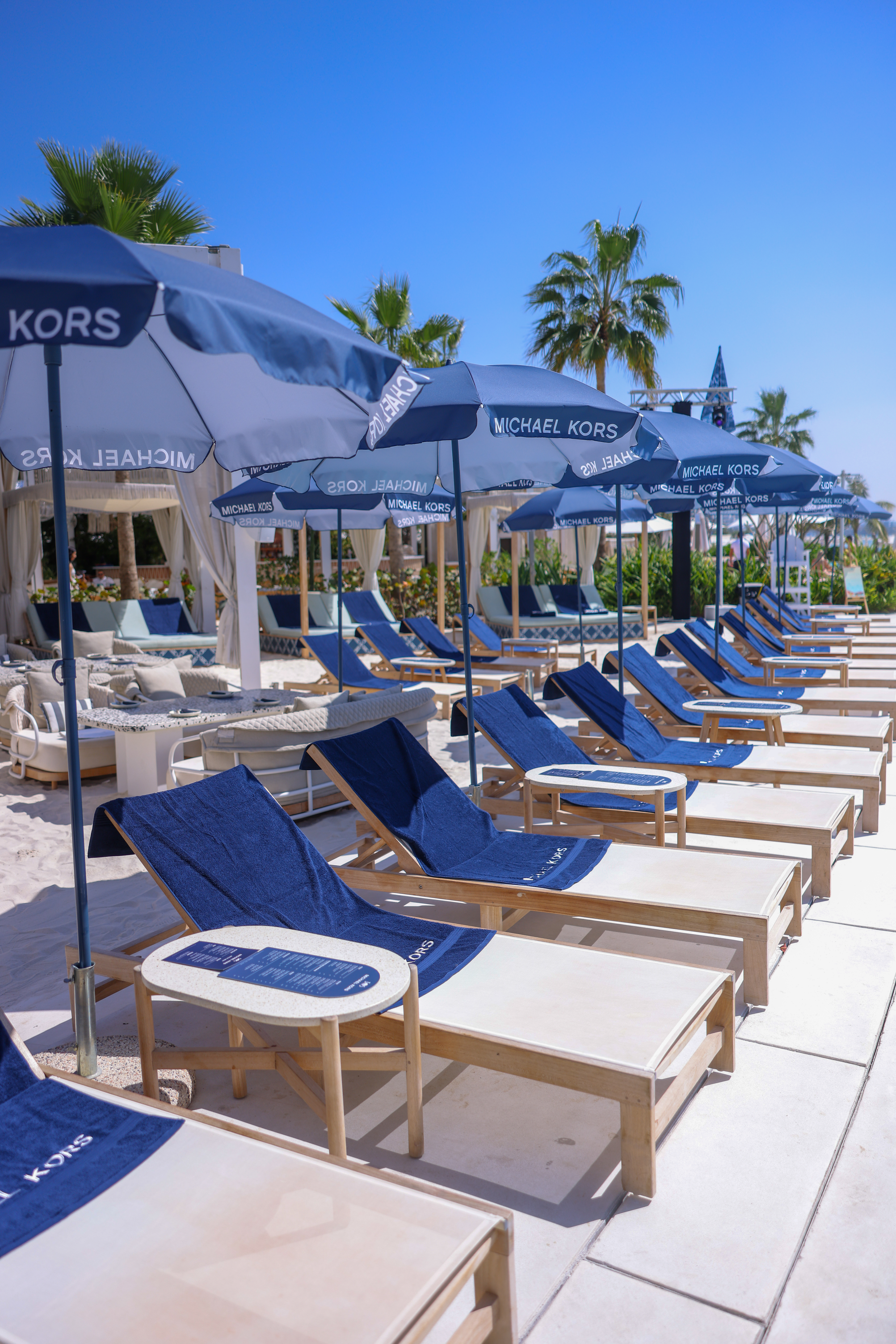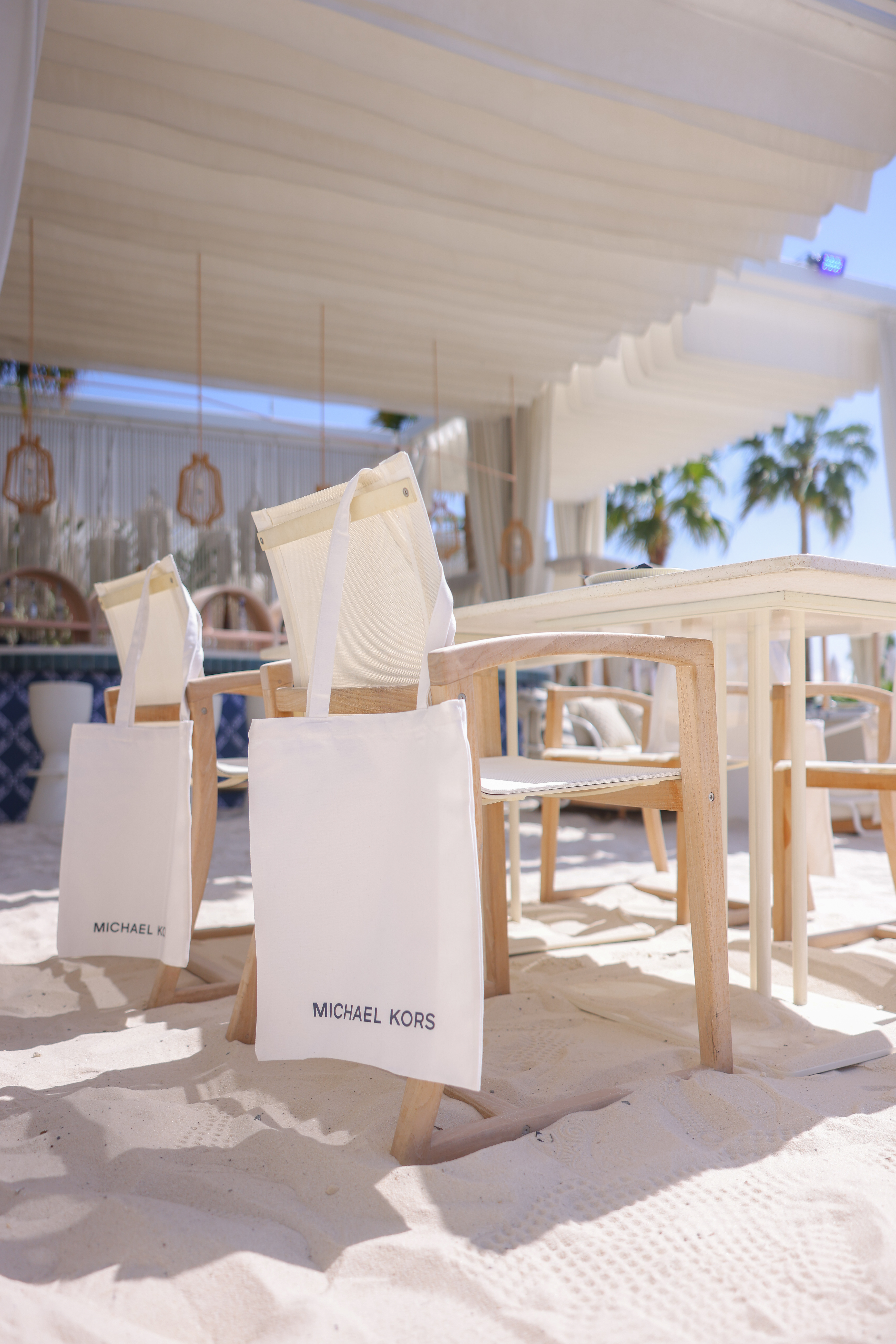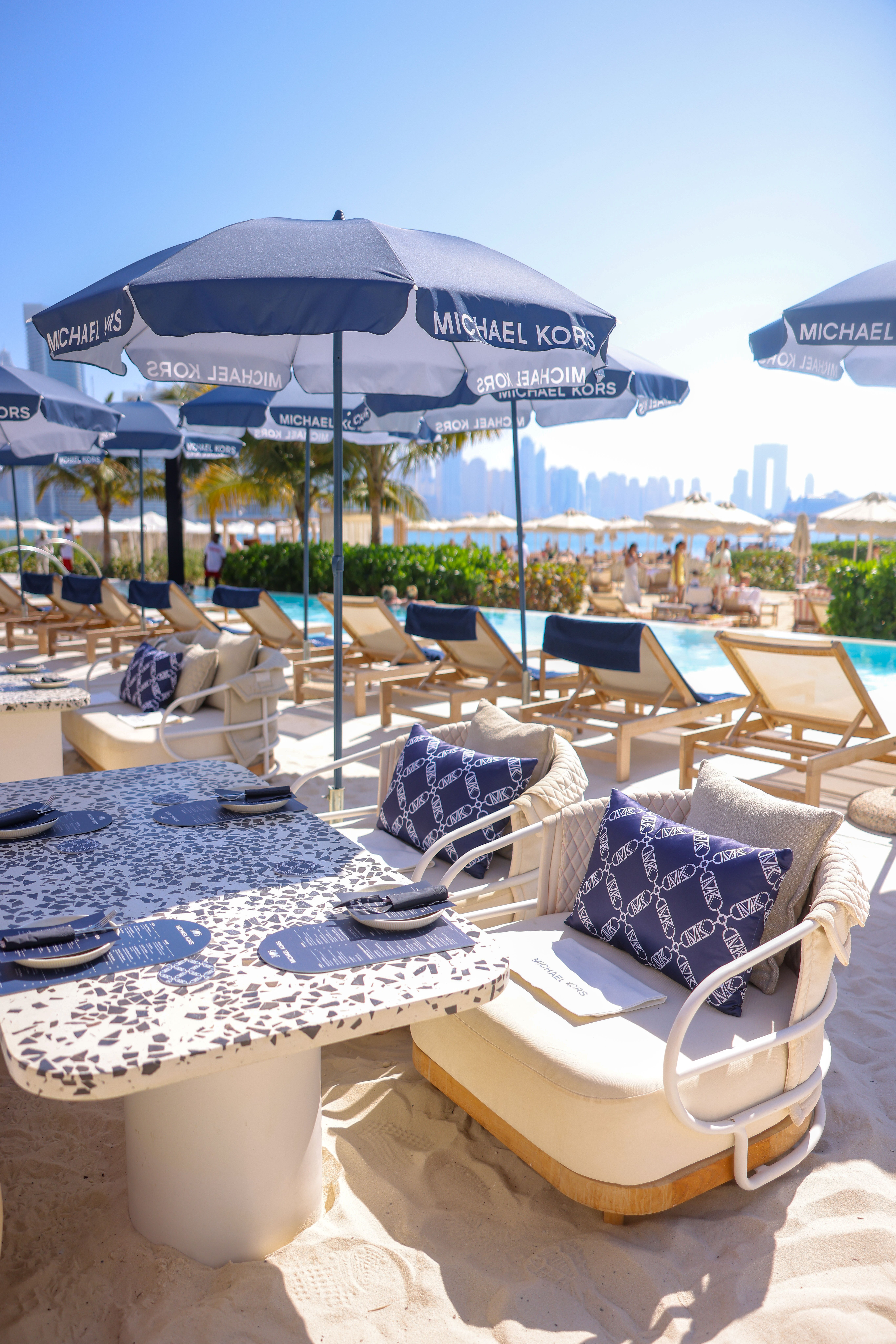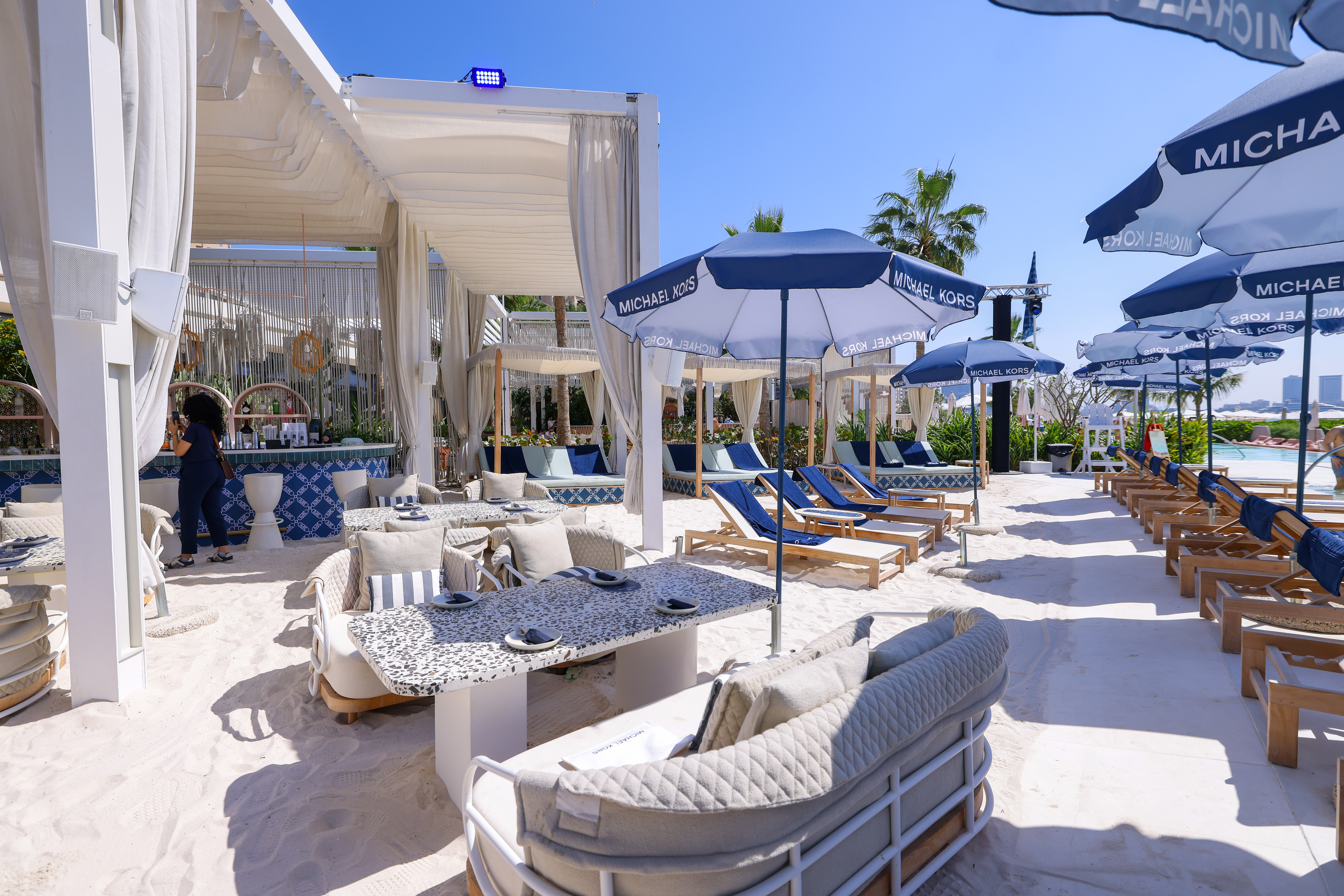 Michael Kors' "Club Kors" beach club event in Dubai was a quintessential blend of high fashion and tropical fun. The event featured a vibrant beachside setting where guests enjoyed the luxe atmosphere, complete with Michael Kors' signature Empire Jacquard Print prominently displayed throughout the space. A lively DJ set the mood with energetic beats, while attendees had the exclusive opportunity to shop the latest collection in a chic, relaxed environment. The combination of sun-soaked beach vibes and stylish shopping made for an unforgettable, fashion-forward experience.