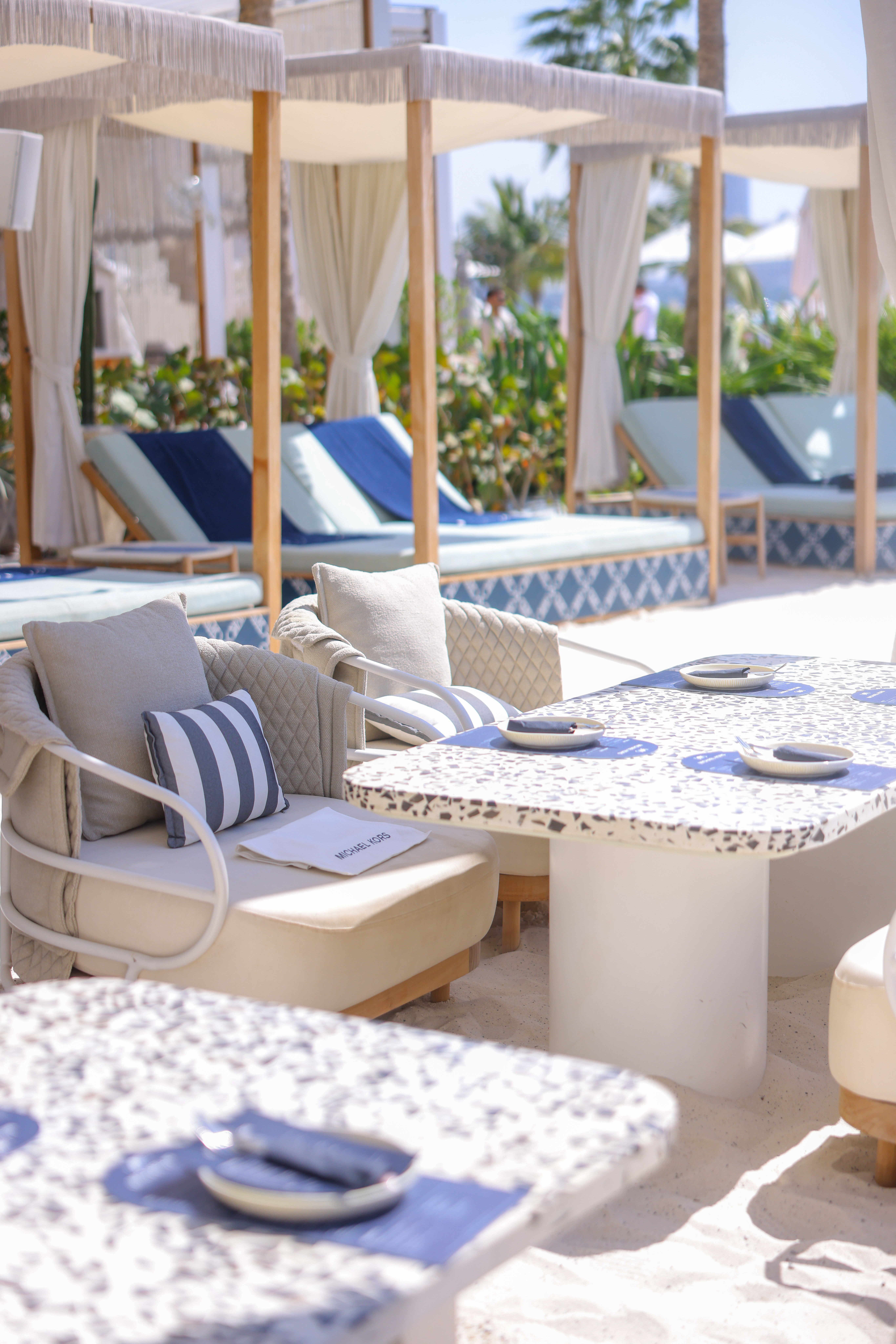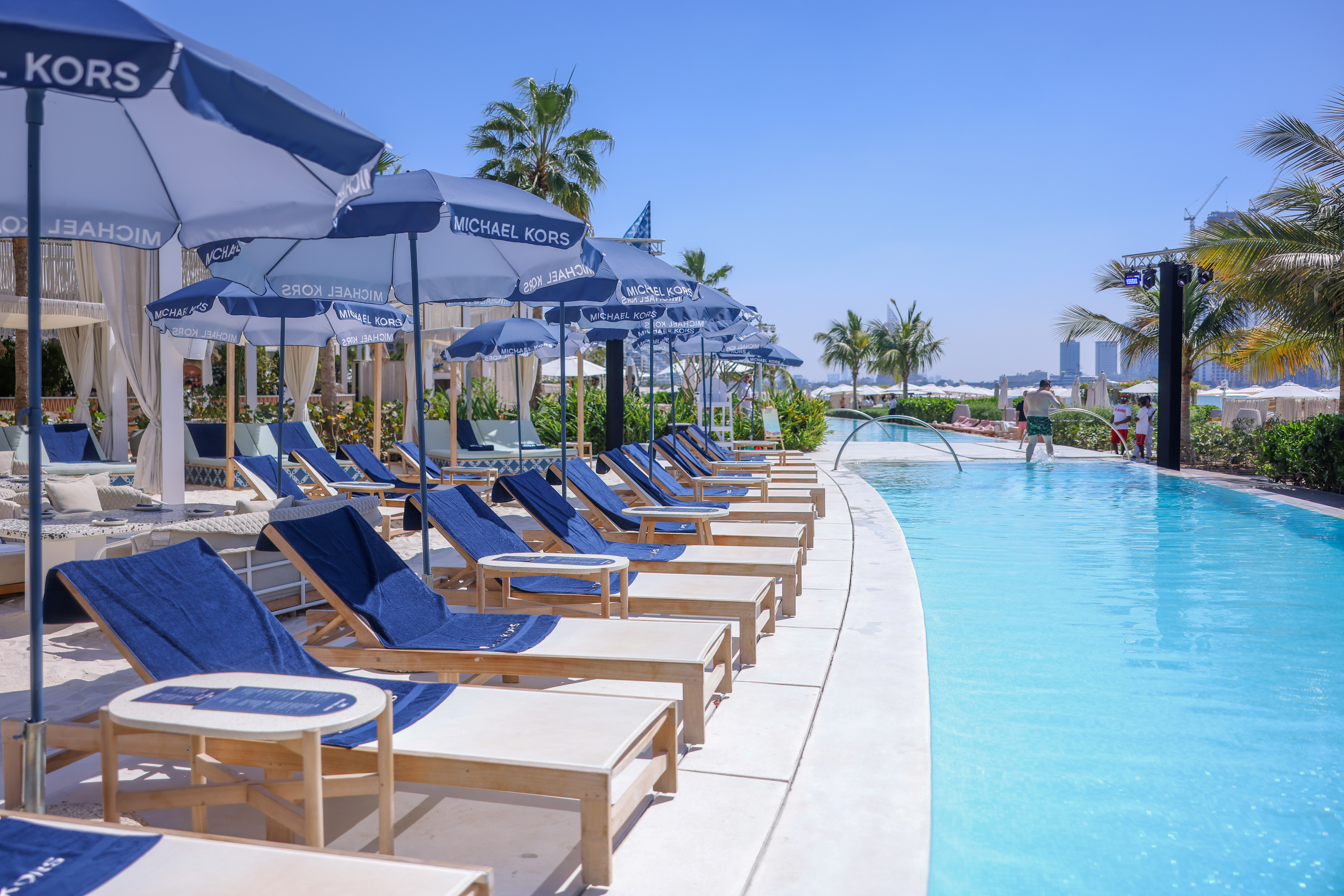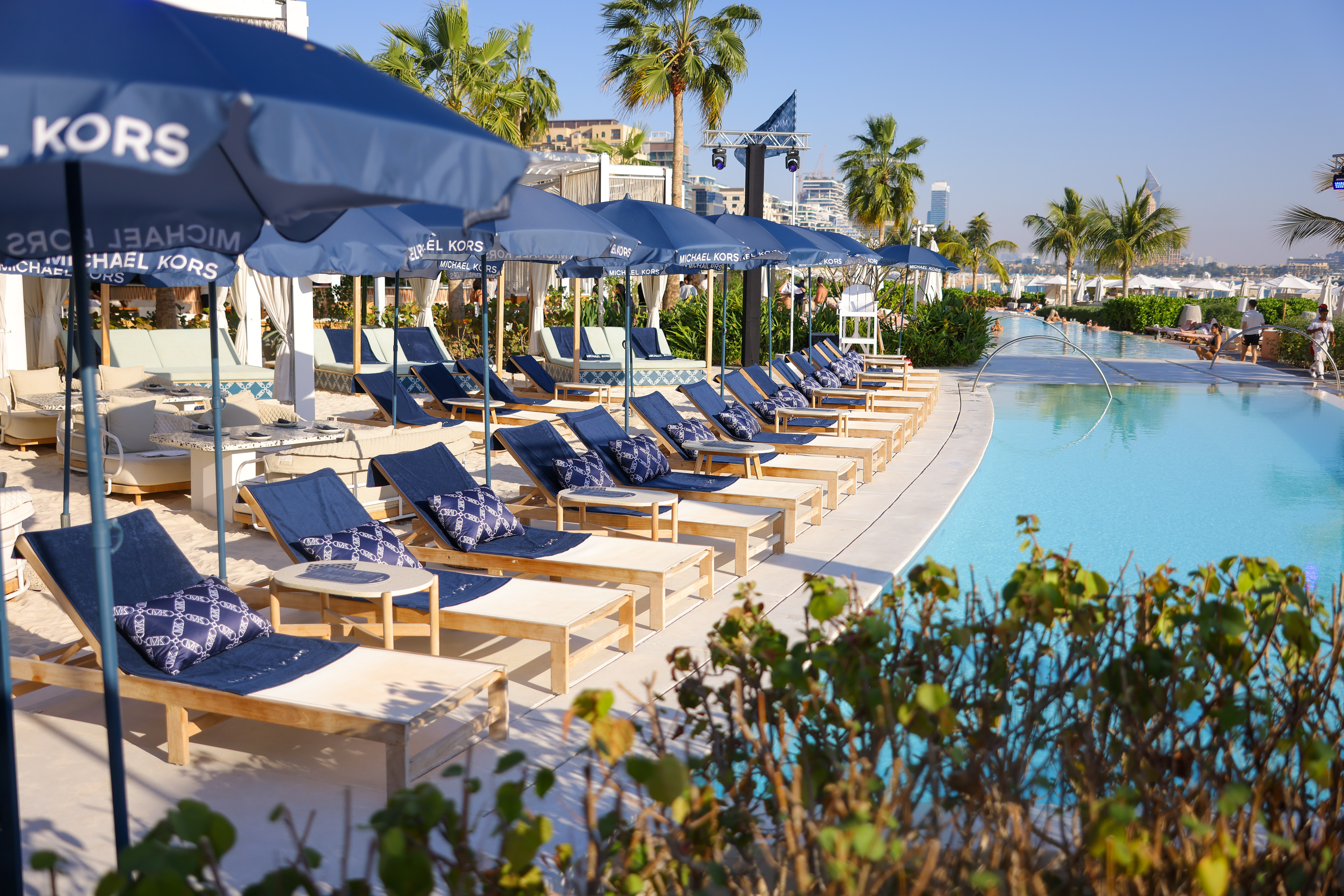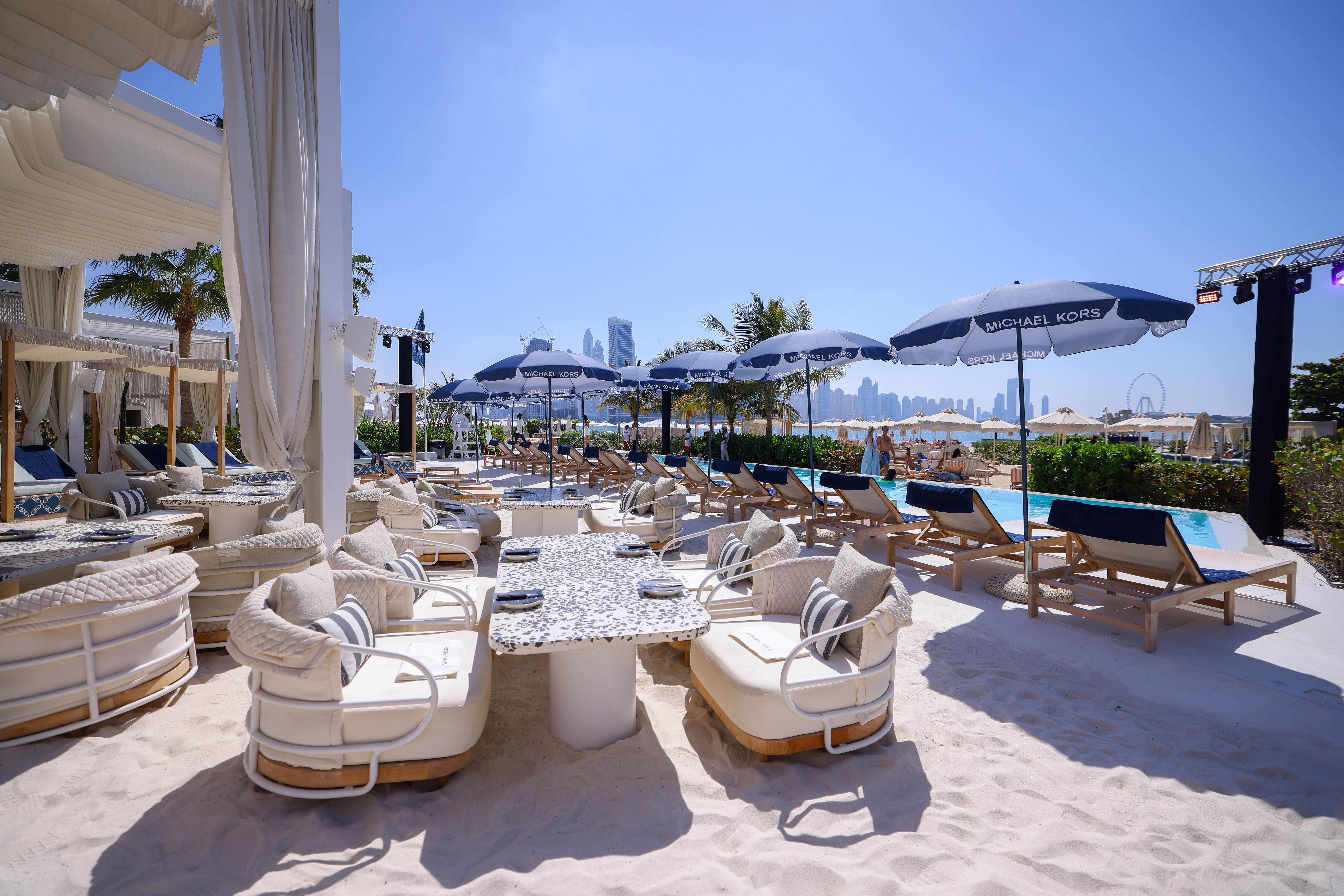 Michael Kors' "Club Kors" beach club event in Dubai was a quintessential blend of high fashion and tropical fun. The event featured a vibrant beachside setting where guests enjoyed the luxe atmosphere, complete with Michael Kors' signature Empire Jacquard Print prominently displayed throughout the space. A lively DJ set the mood with energetic beats, while attendees had the exclusive opportunity to shop the latest collection in a chic, relaxed environment. The combination of sun-soaked beach vibes and stylish shopping made for an unforgettable, fashion-forward experience.