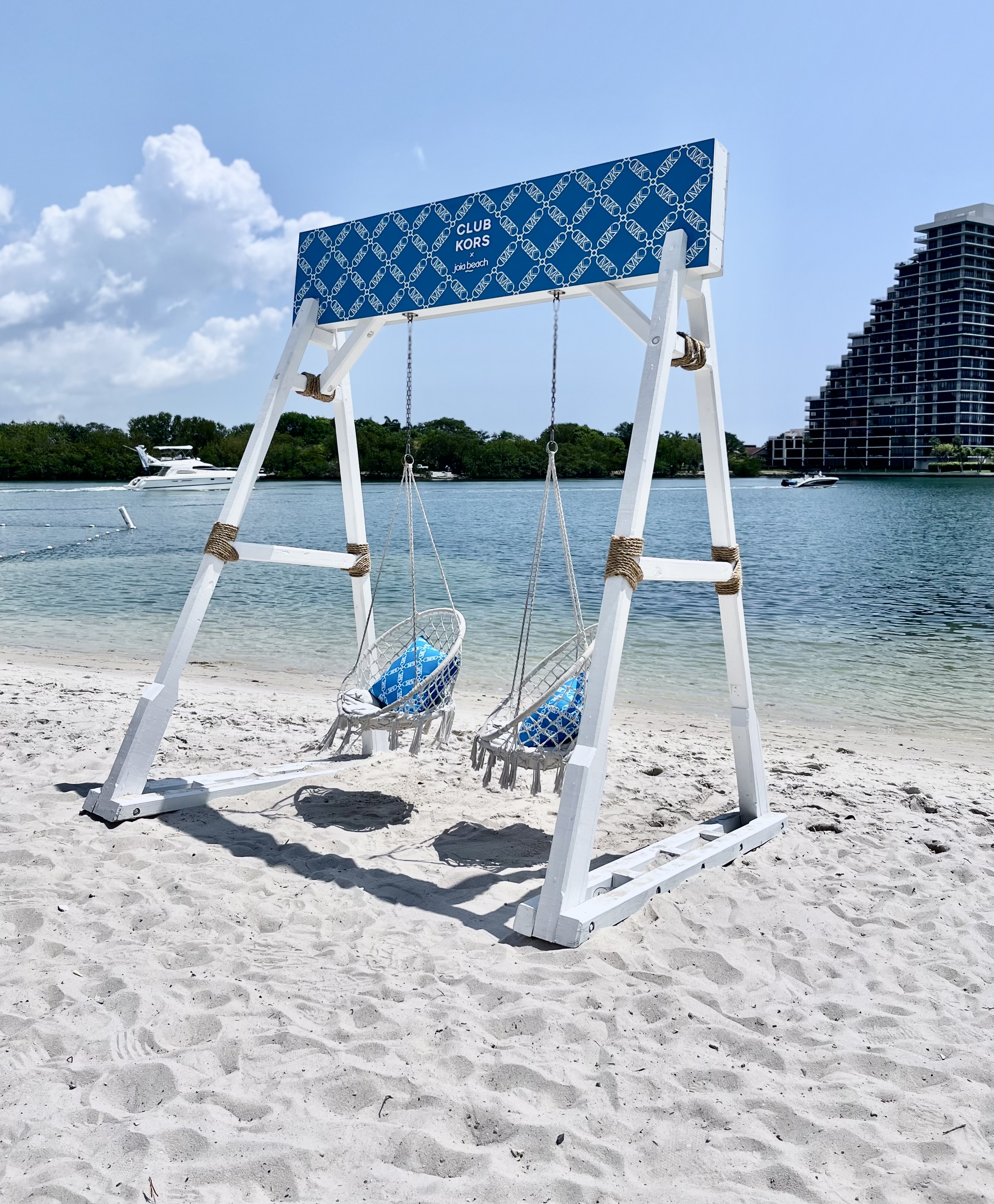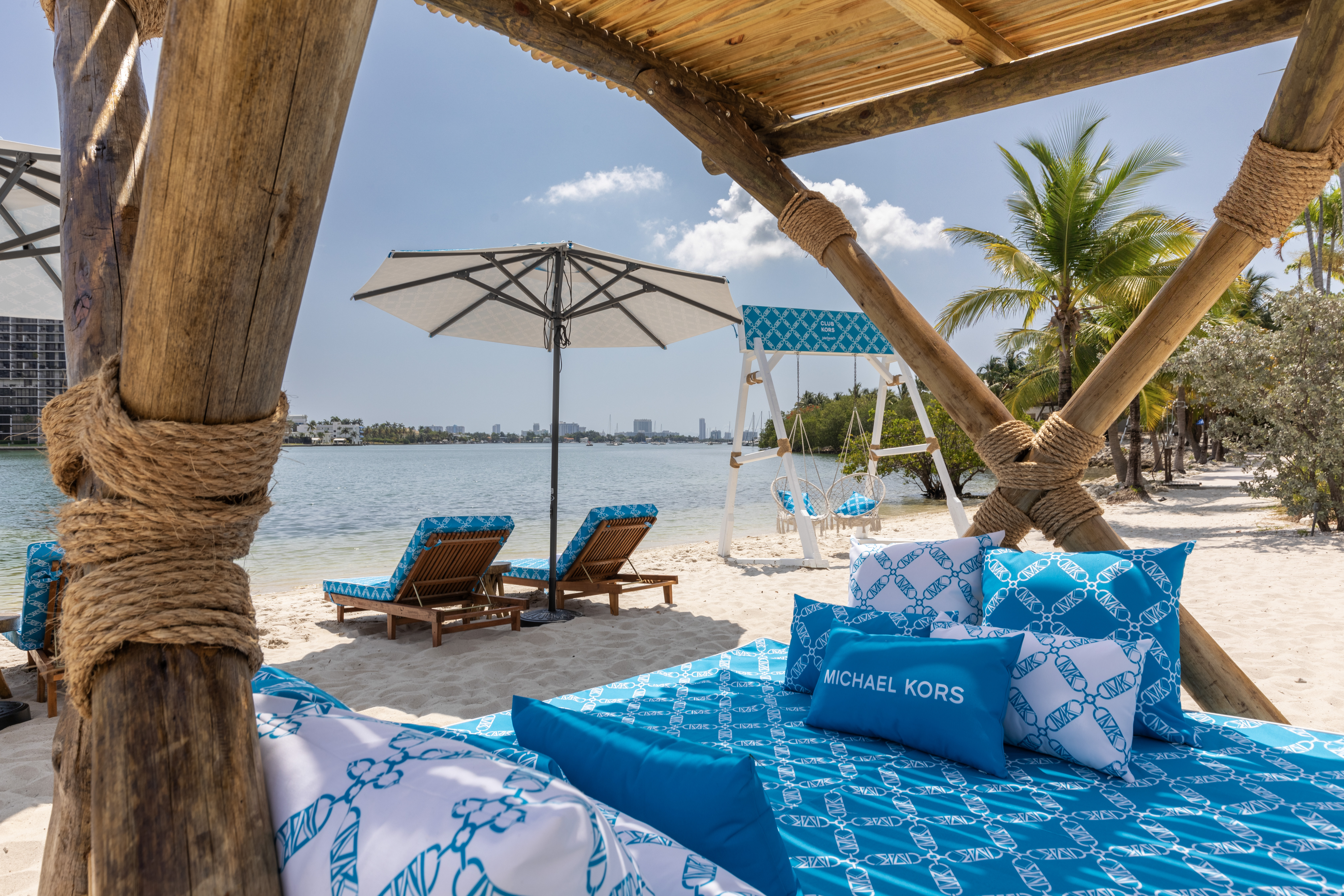 Michael Kors' "Club Kors" beach club event in Miami was a quintessential blend of high fashion and tropical fun. The event featured a vibrant beachside setting where guests enjoyed the luxe atmosphere, complete with Michael Kors' signature Empire Jacquard Print prominently displayed throughout the space. A lively DJ set the mood with energetic beats, while attendees had the exclusive opportunity to shop the latest collection in a chic, relaxed environment. The combination of sun-soaked beach vibes and stylish shopping made for an unforgettable, fashion-forward experience.