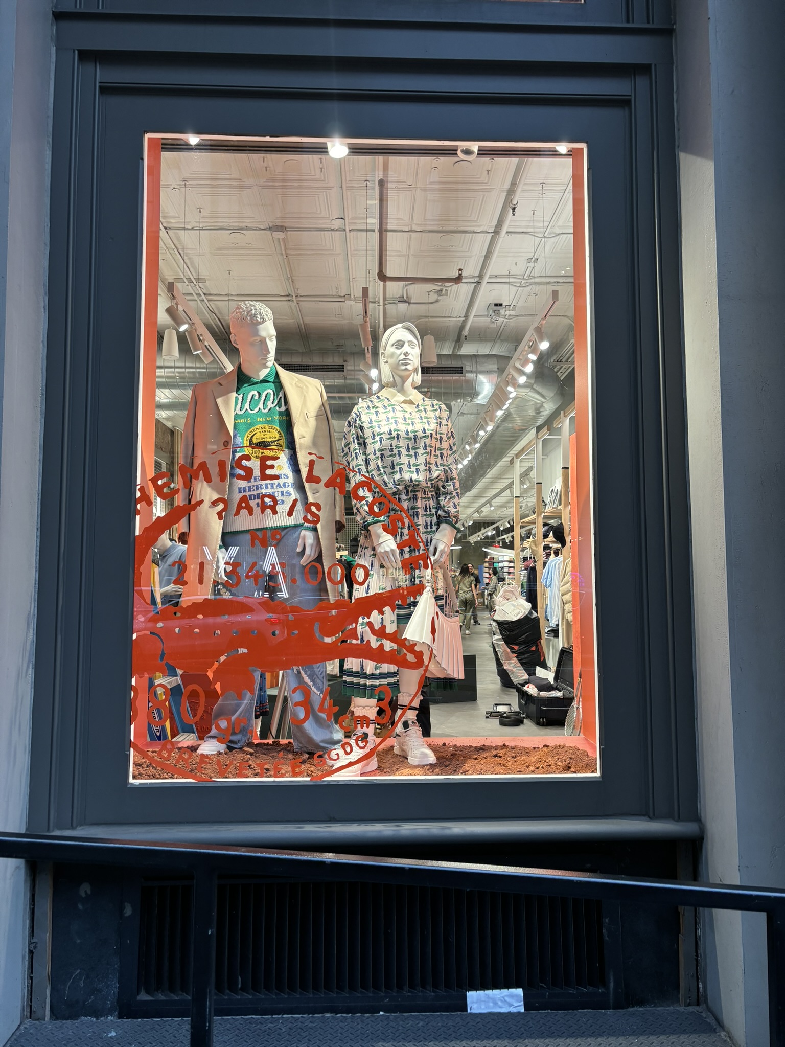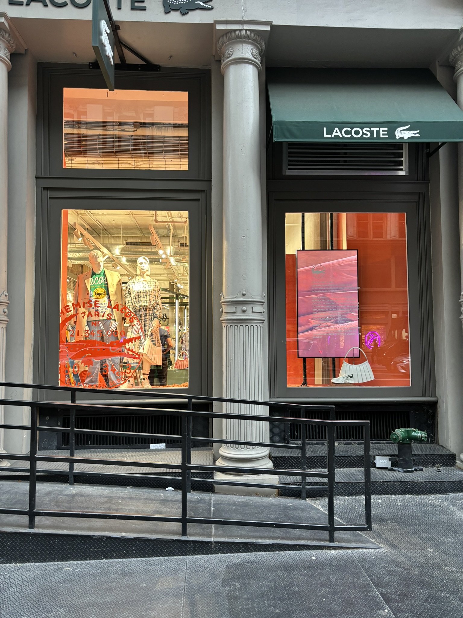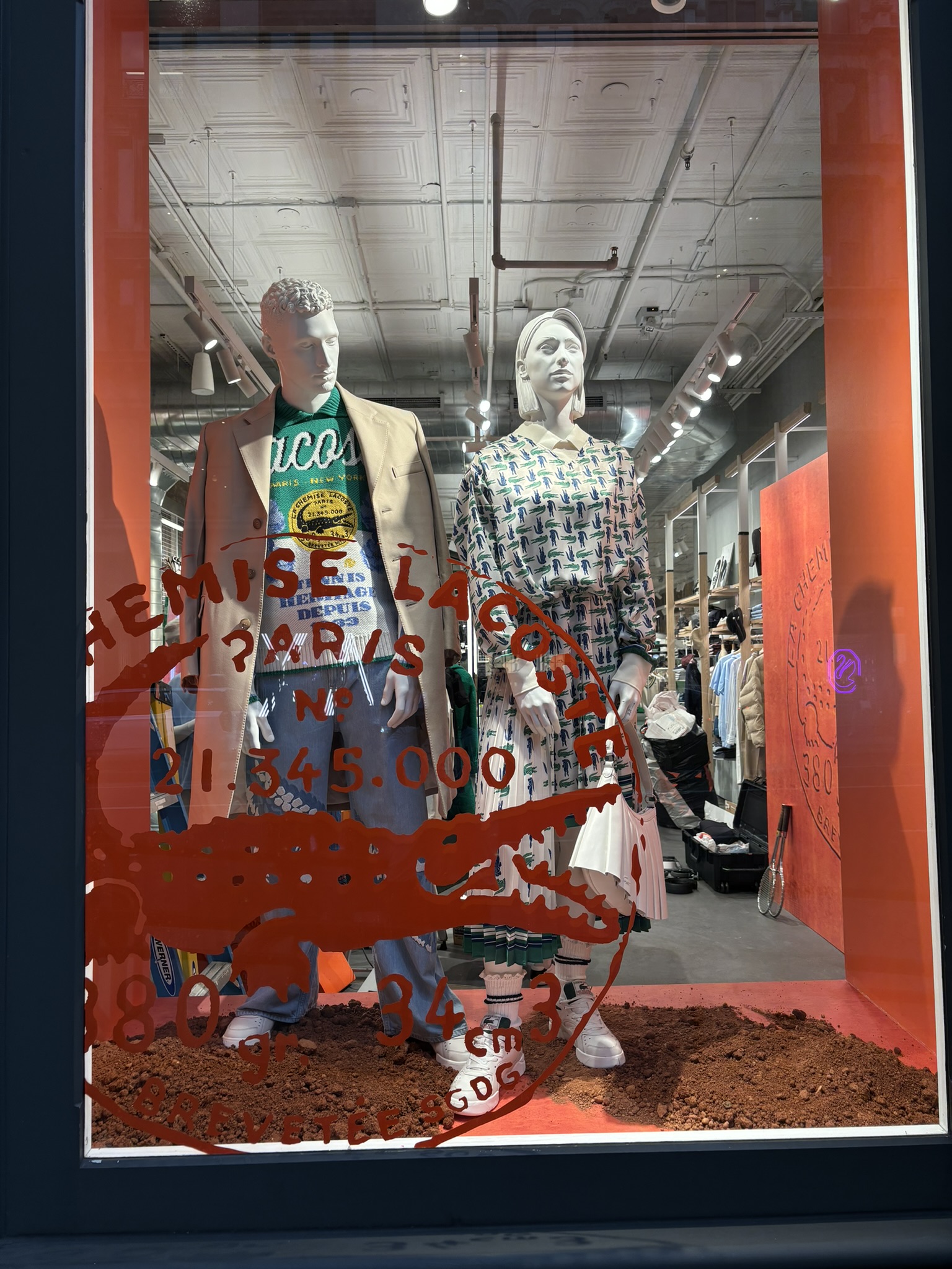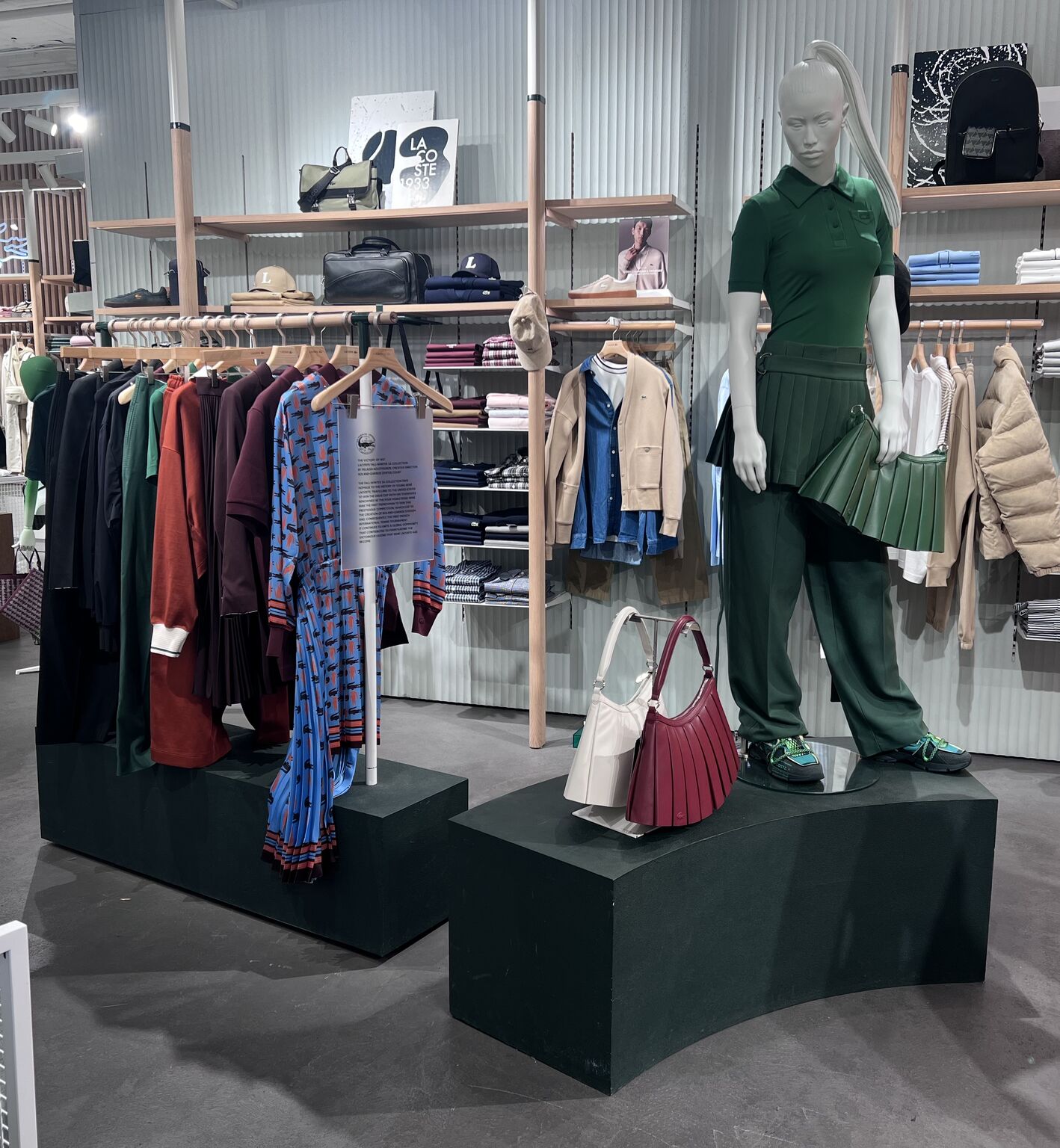 For the window displays, we created visually captivating arrangements that featured the latest Lacoste collections, ensuring that the displays drew attention and set the tone for the event. These displays were designed to be bold yet aligned with the minimalist and athletic luxury style Lacoste is known for.