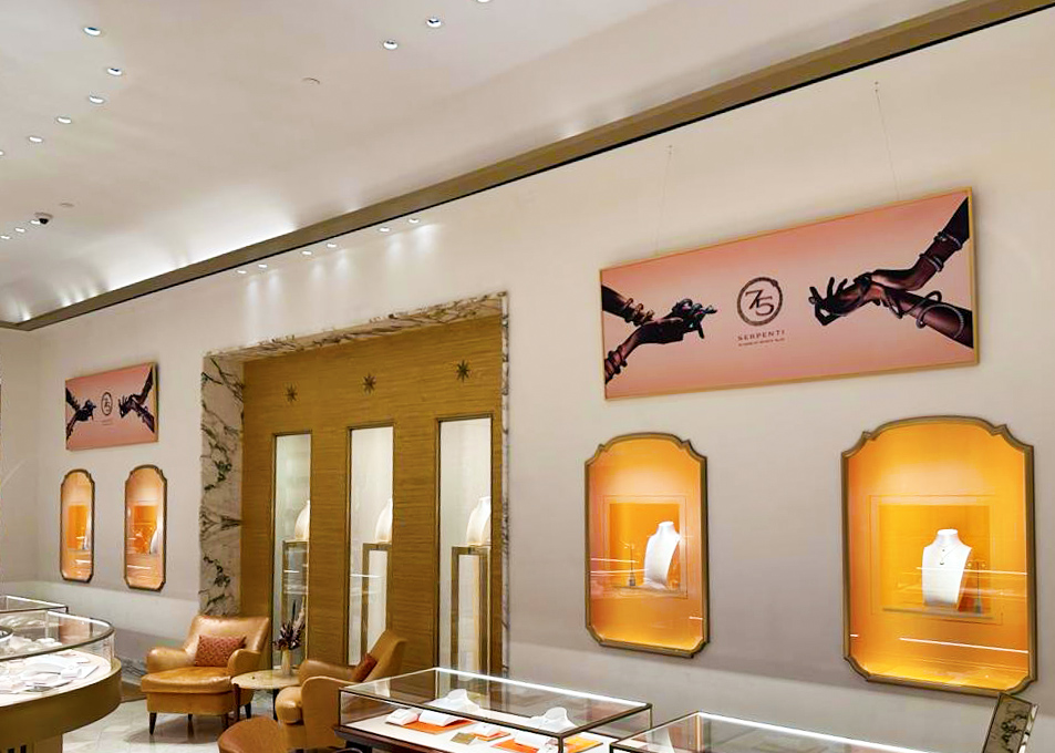 Vista Visual Group was instrumental in Bulgari's nationwide quest to enhance their retail interiors. By expertly fabricating, printing, producing, and installing high-quality displays, we transformed their store environments into luxurious and inviting spaces. Our attention to detail and commitment to excellence ensured a seamless execution across all locations, resulting in a highly successful project that elevated Bulgari’s brand presence and customer experience. The collaboration not only enhanced their interiors but also solidified our reputation as a leader in creative fabrication.