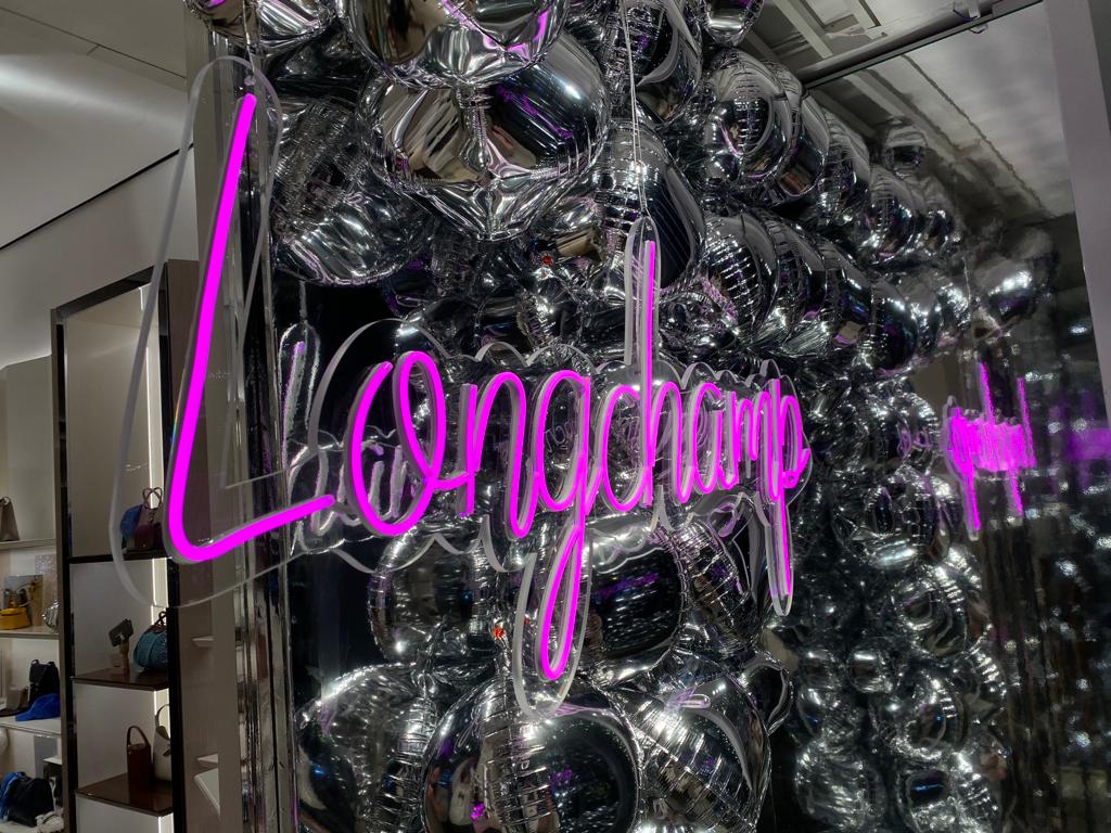 Vista Visual Group was entrusted with creating an extraordinary window display for Longchamp, blending innovative design with cutting-edge technology. The display featured glossy silver inflated balloons, capturing the essence of luxury and sophistication. We incorporated dynamic LED product displays, ensuring the products took center stage with an illuminated glow. The striking lettering and digital graphics enhanced the visual impact, while expertly crafted millwork and in-store elements added an elegant, refined touch. Our team not only designed but also produced and installed this display nationwide, ensuring consistency and perfection across all locations. The result was a stunning showcase that elevated the Longchamp brand, drawing attention and captivating customers with its bold yet refined aesthetic.