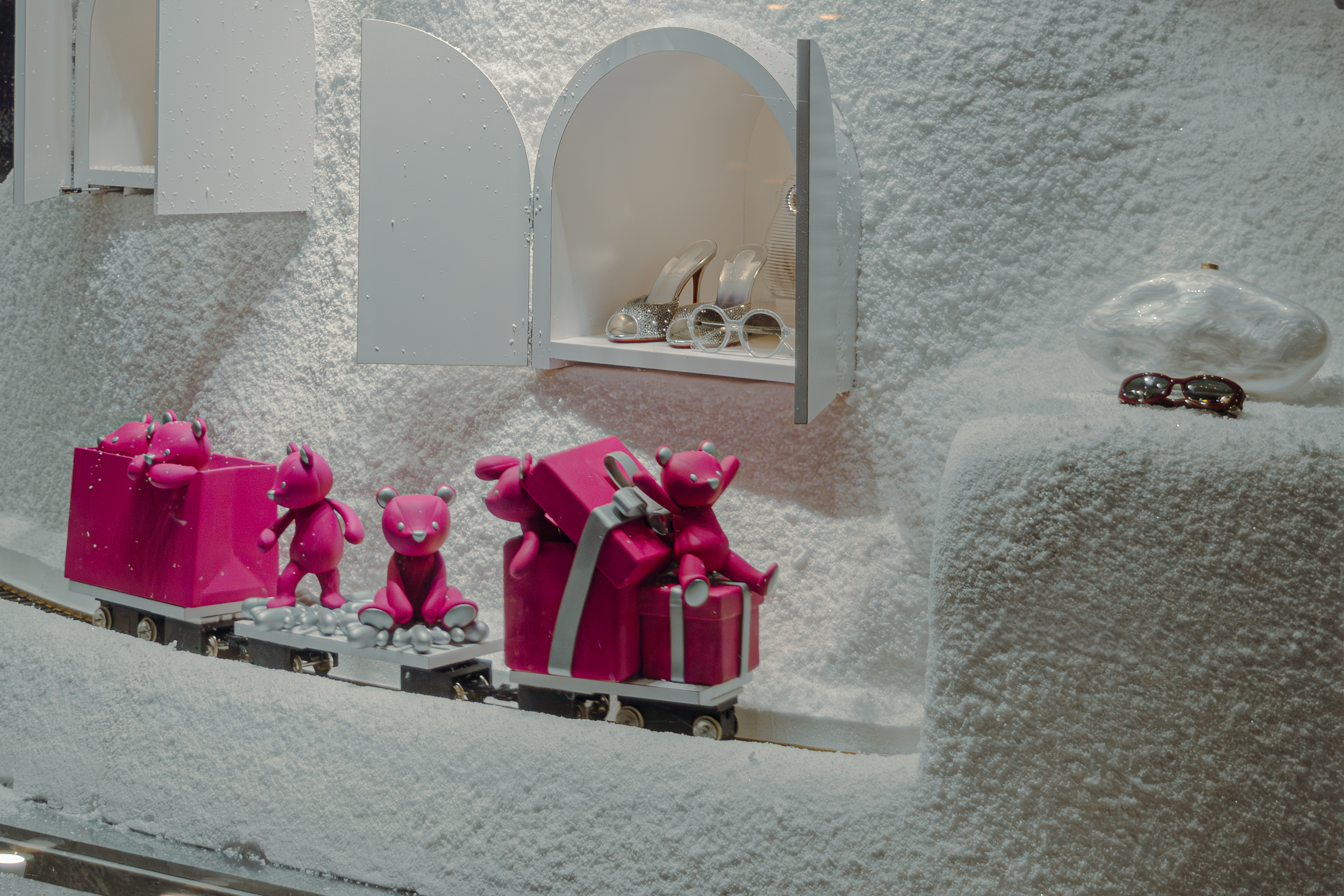 We are thrilled to be involved in an amazing project for Holt Renfrew throughout North America. In collaboration with our partners Impact Agency, we created a winter-themed set featuring enchanting pink bears and boxes for the magical train display