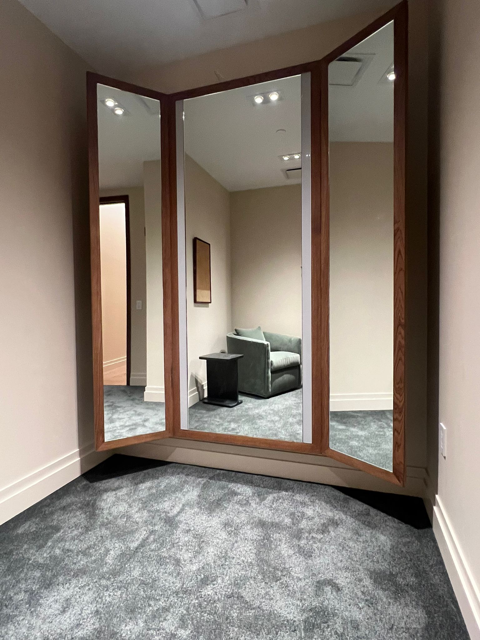 To ensure durability and style, we utilized a diverse range of materials, including plywood for strength and compressed wood for superior paint finishes. Our commitment to quality extended to every fixture, considering factors such as weight capacity, stain resistance, and lumber integrity. Additionally, we prioritize sustainability by using lead-free materials, reflecting our dedication to creating safe and eco-friendly environments for Frère’s clientele.