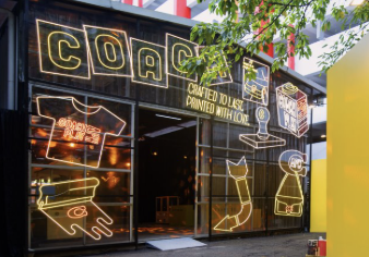 Spotlighting the rich cultural history of A Place Where (APW), a prominent printing factory turned contemporary lifestyle campus, Coach Play APW blends historic charm and the house’s spirit of playfulness and self-expression to create an immersive retail destination celebrating a shared legacy of craftsmanship. Conceptualized as a space with various experiential areas throughout, it draws inspiration from the iconic visual language of Coach, including a warm color palette that evokes golden hour in New York City, vintage Coach ads, and touches of leathercraft detailing that nod to the house’s heritage. Classic house codes including hangtag and beloved Coach mascot, Rexy, are additionally featured as signature design motifs.