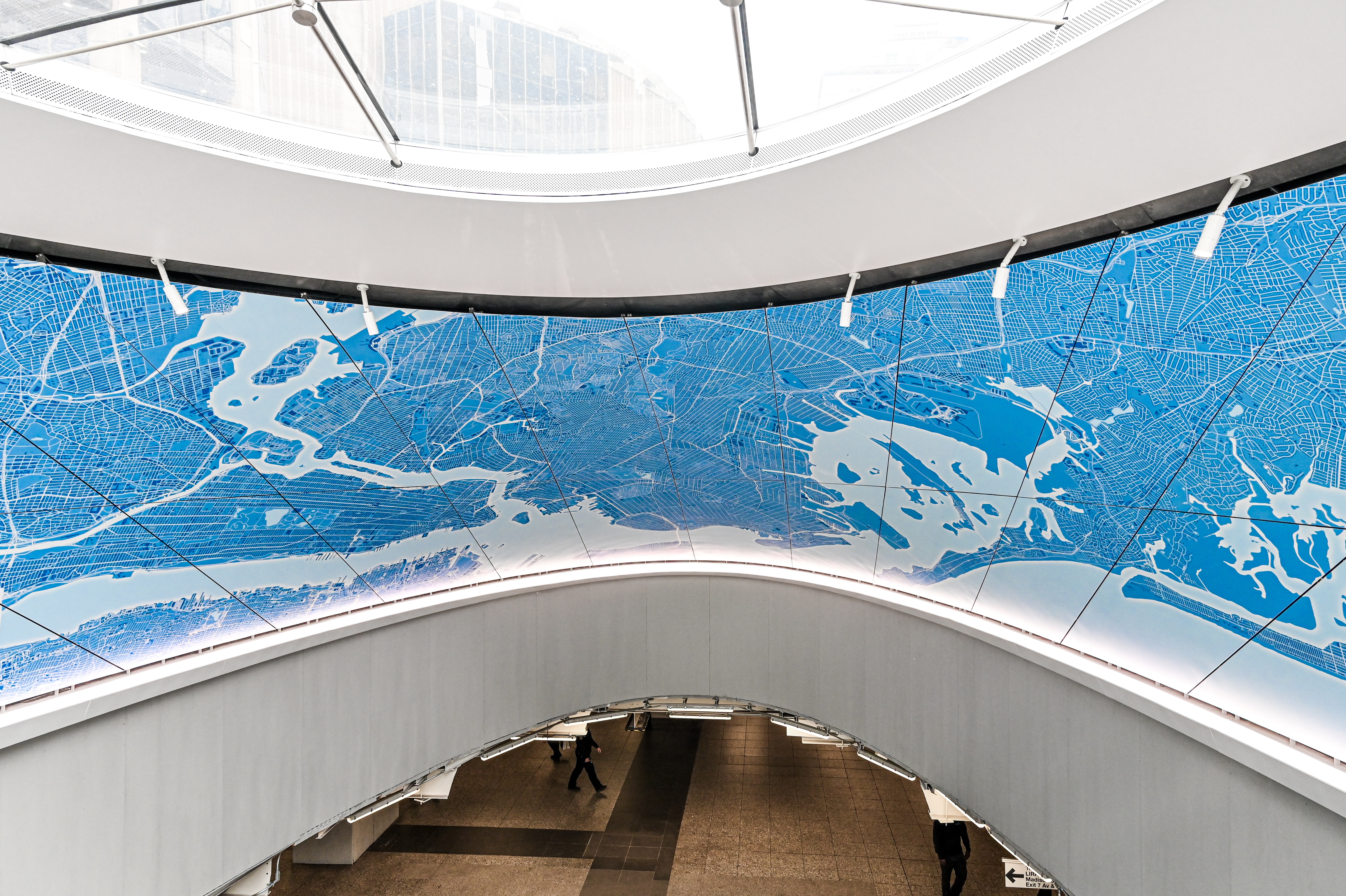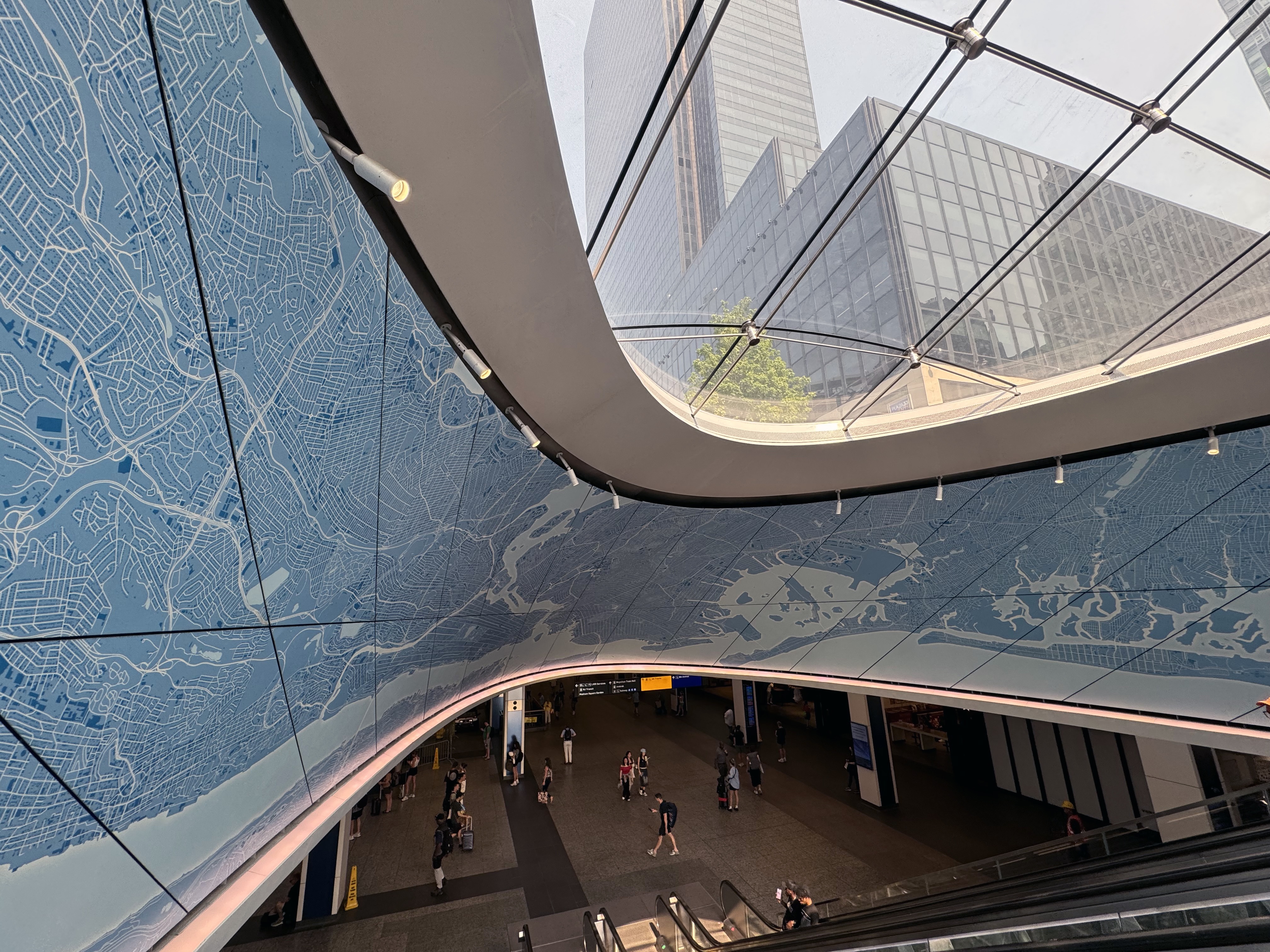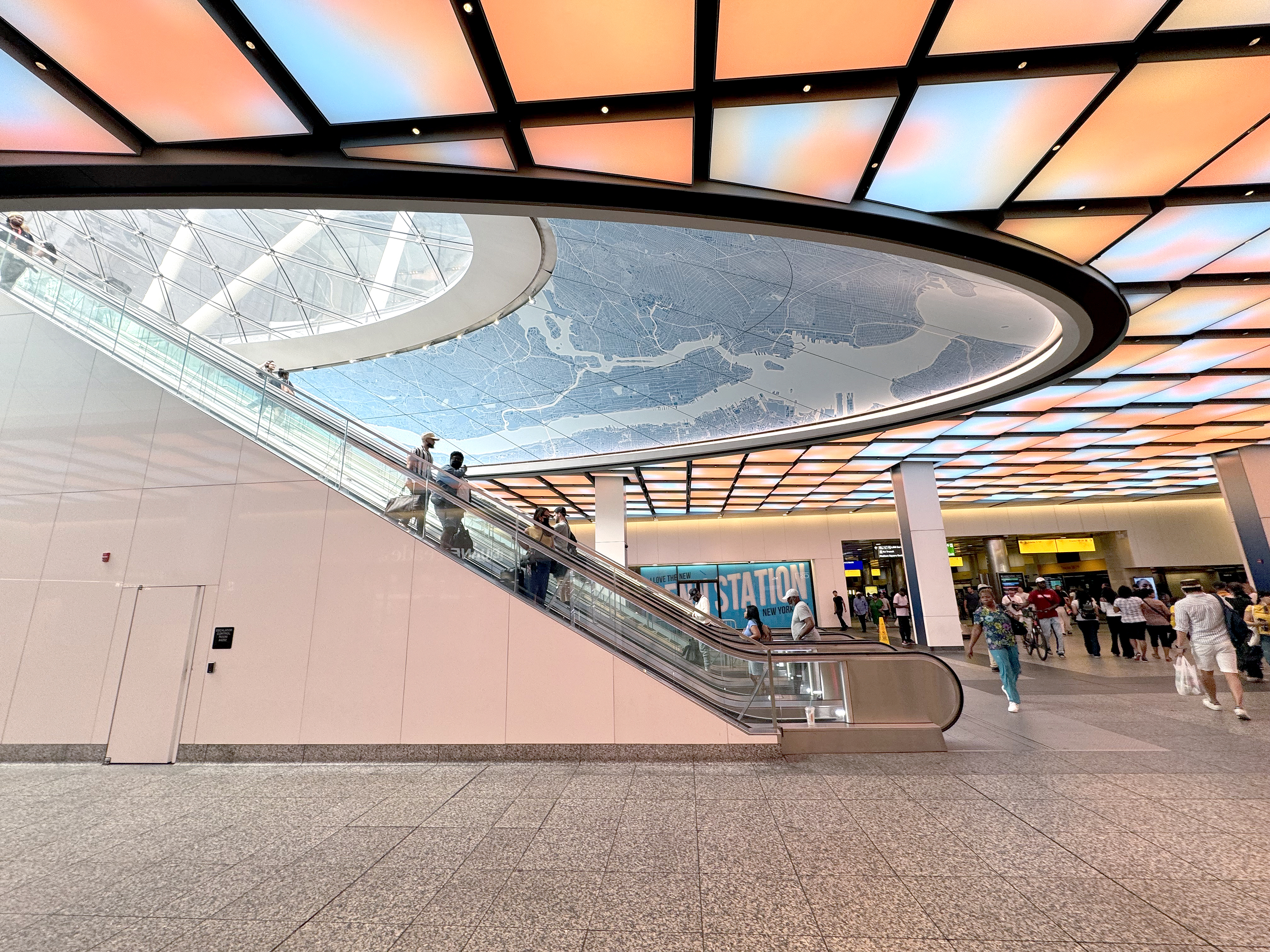 Duggal Visual Solutions had the honor of bringing Penn Station’s history to life with these stunning spandrel graphics! One of the key challenges of this project was accommodating the double compound curve of the ceiling area, ensuring the map included as much of the New York region as possible without distortion. Despite these challenges, our team pushed through to deliver a seamless, awe-inspiring display that captivates commuters every day. Collaborators: Proptogroup & Skanska Realty Trust