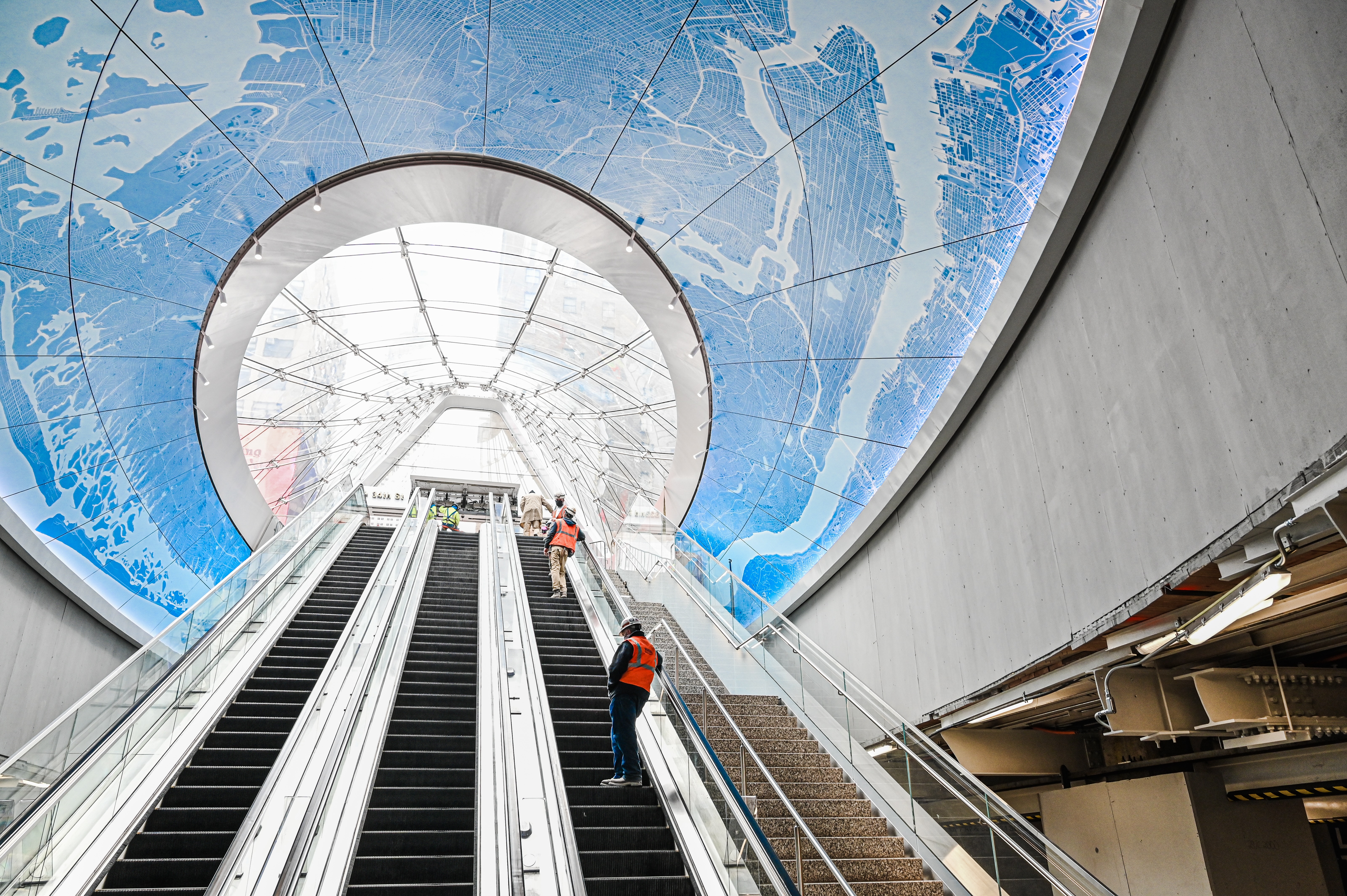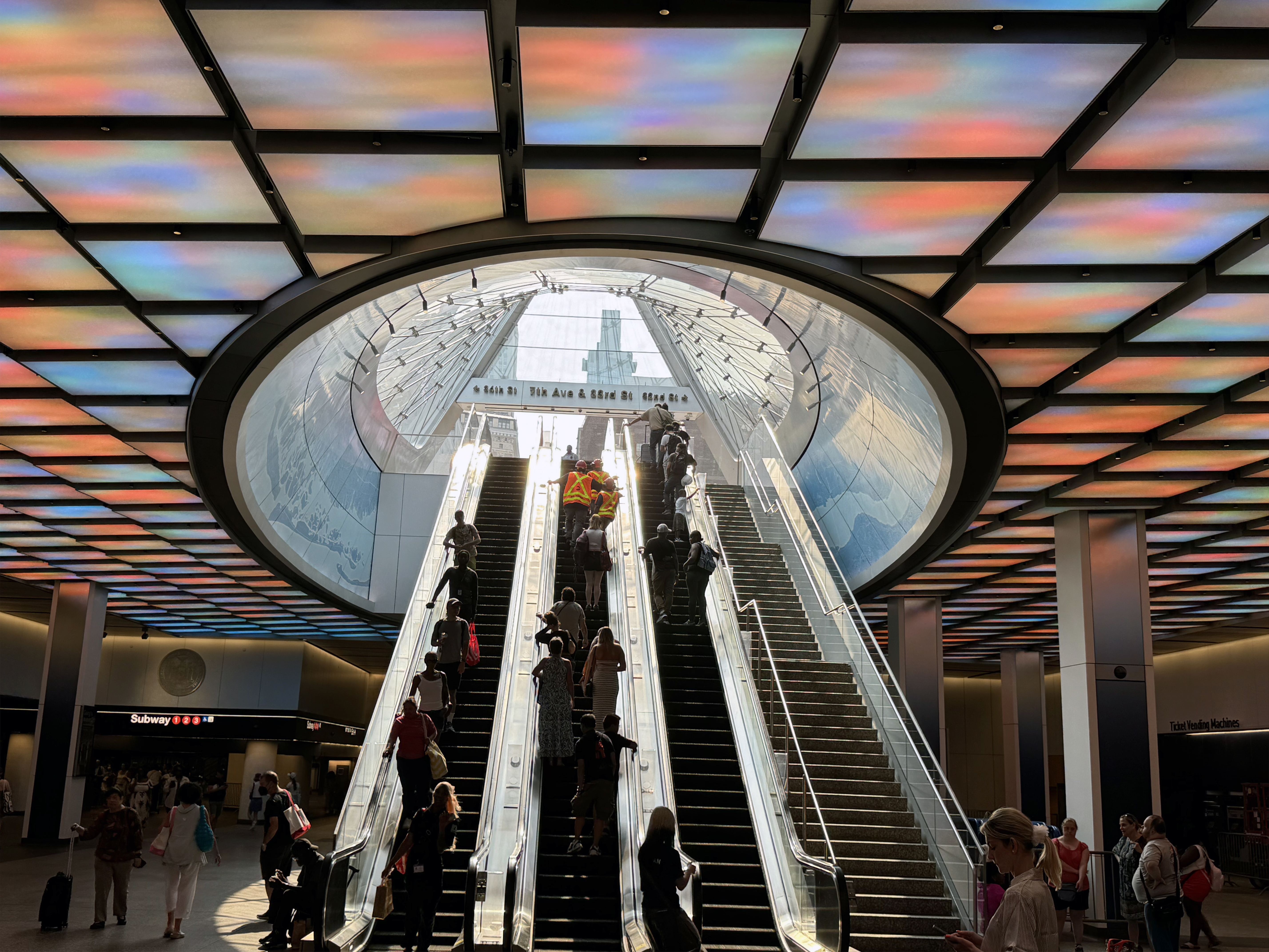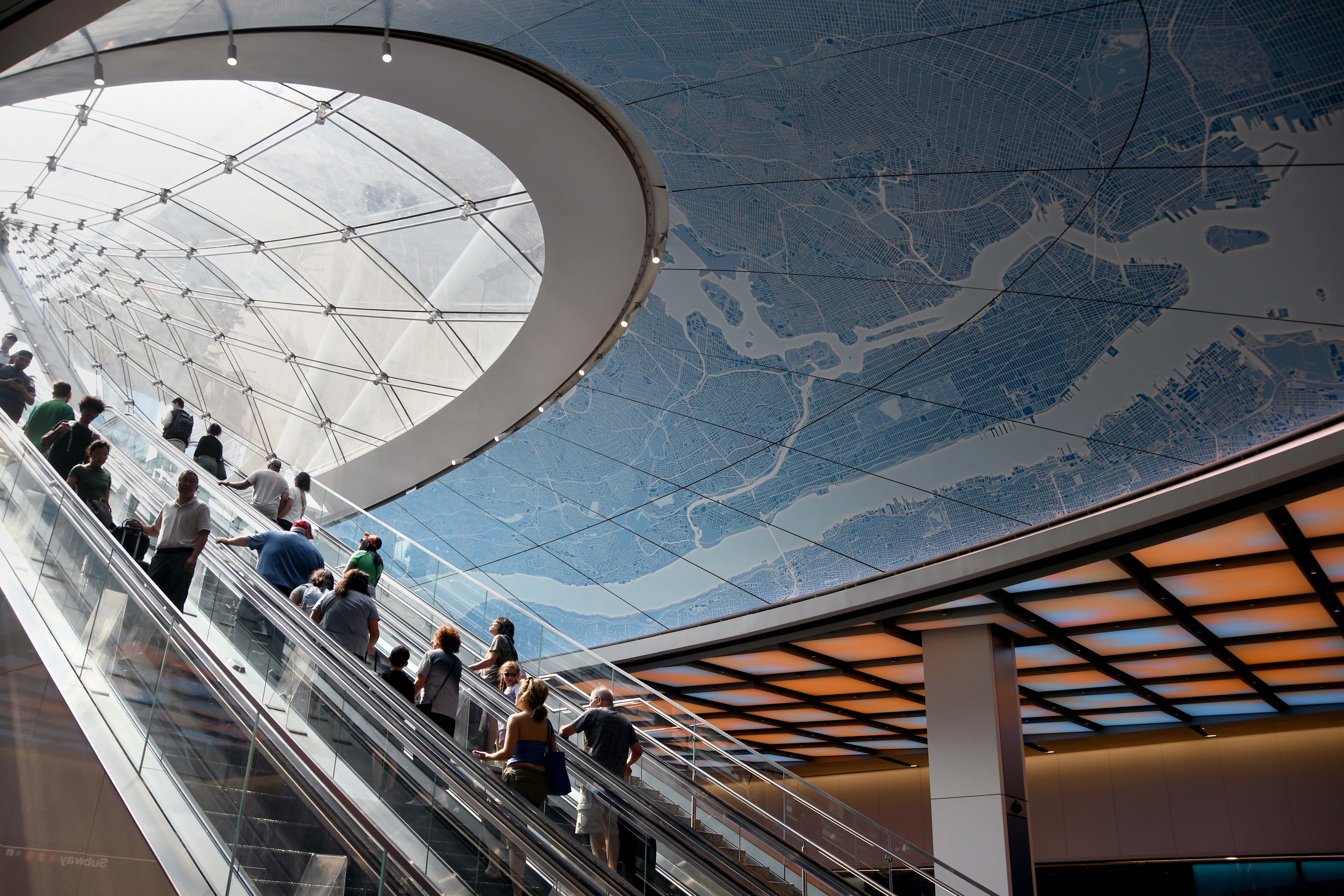Duggal Visual Solutions had the honor of bringing Penn Station’s history to life with these stunning spandrel graphics! One of the key challenges of this project was accommodating the double compound curve of the ceiling area, ensuring the map included as much of the New York region as possible without distortion. Despite these challenges, our team pushed through to deliver a seamless, awe-inspiring display that captivates commuters every day. Collaborators: Proptogroup & Skanska Realty Trust
