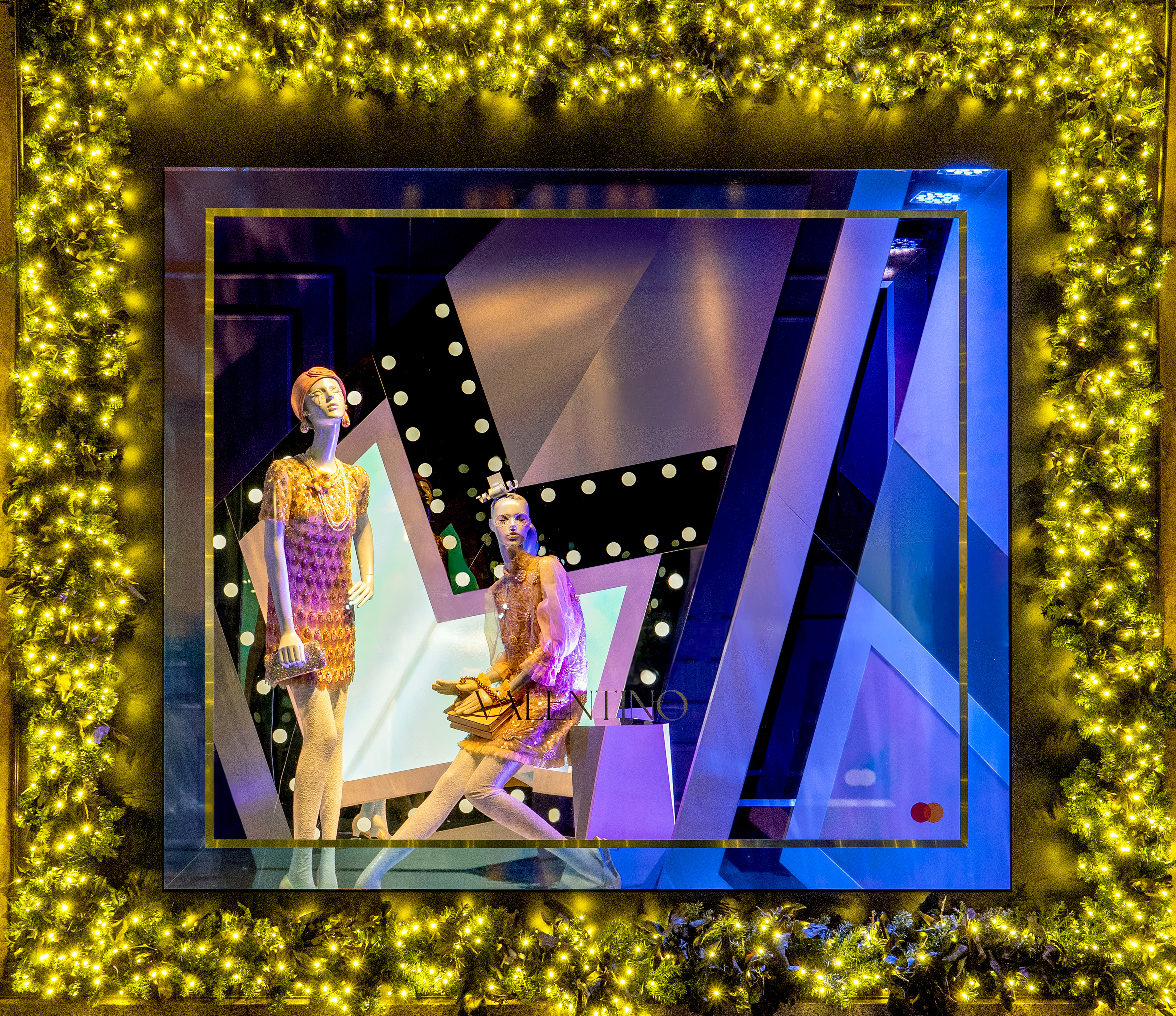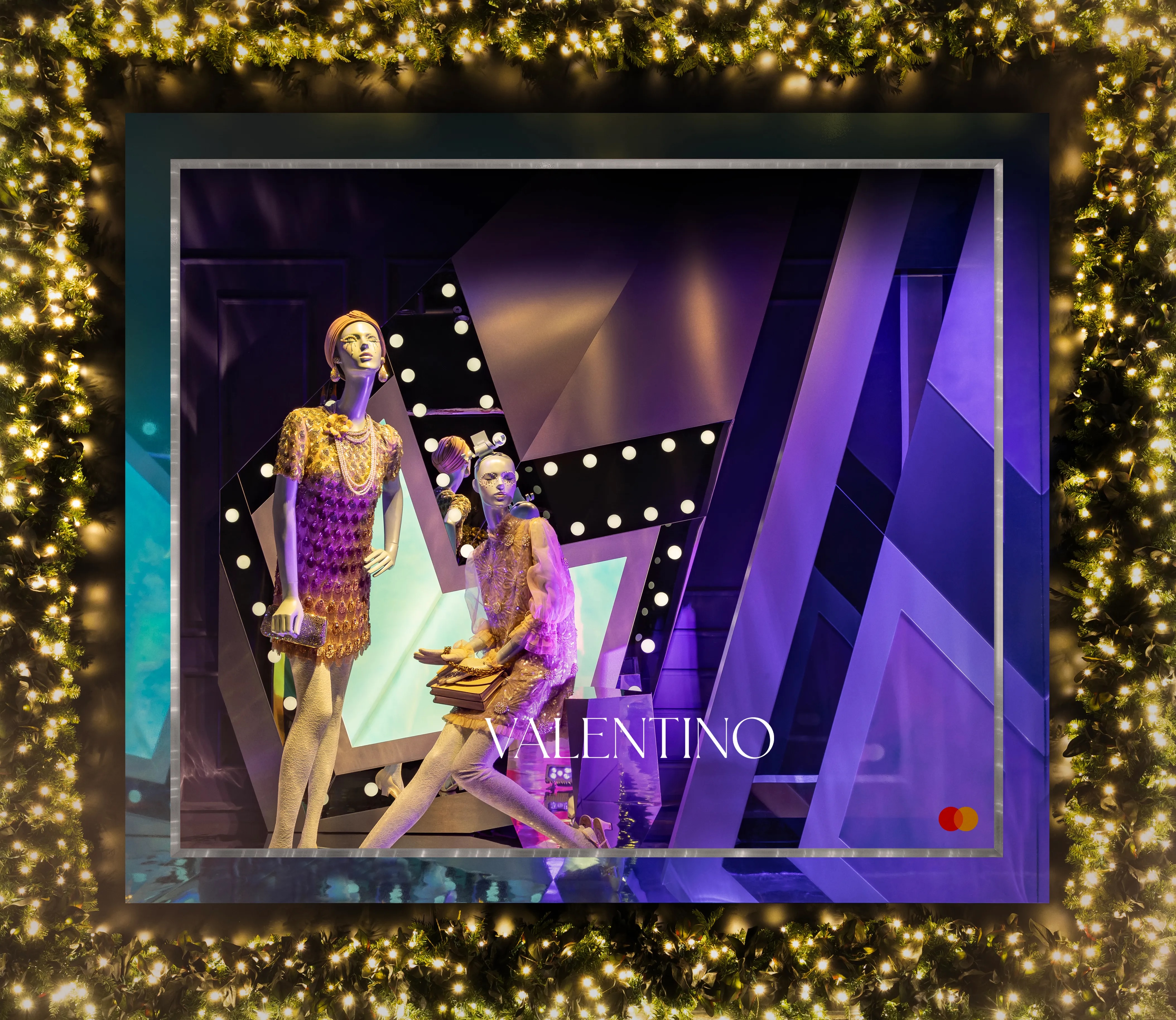 Duggal proudly partnered with Saks for their dazzling 2024 Holiday Windows, "Gifts of Delight," bringing project management, design, fabrication, vinyl window borders, mirror floors, and more to life. Saks unveiled their stunning annual holiday windows, celebrating the flagship store’s 100th anniversary in style. The twelve Fifth Avenue windows were a visual feast, featuring mannequins styled by iconic brands like Prada and Valentino, all set against a vibrant winter wonderland-meets-disco backdrop. The building was beautifully framed by a golden curtain of lights, showcasing its rich history and solidifying its place as a beloved New York City holiday tradition!