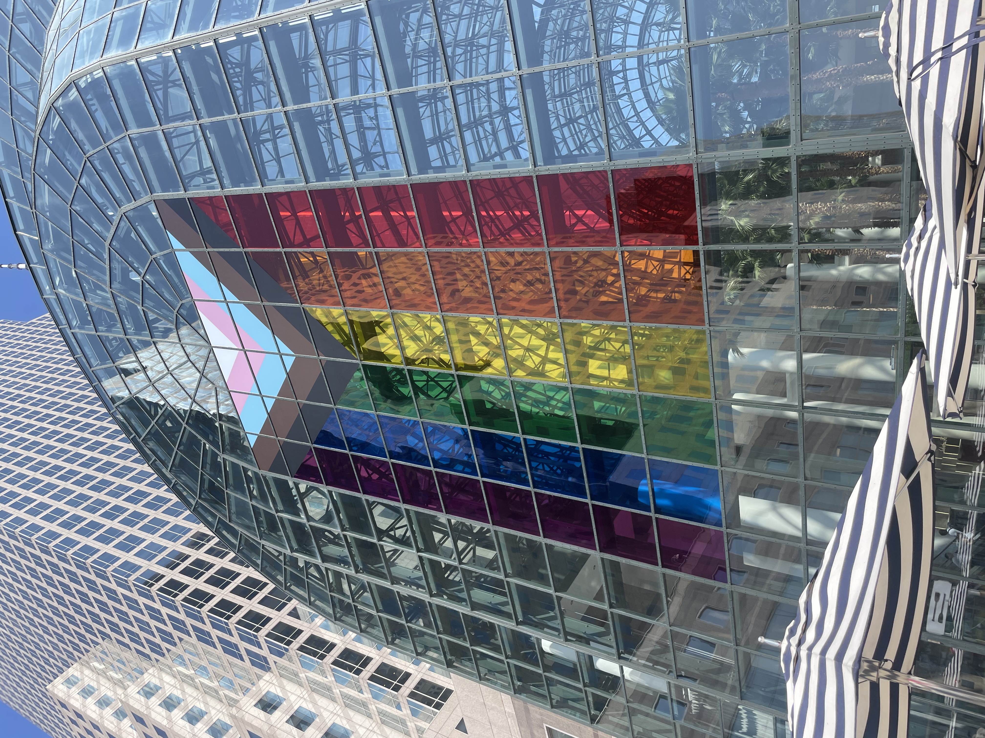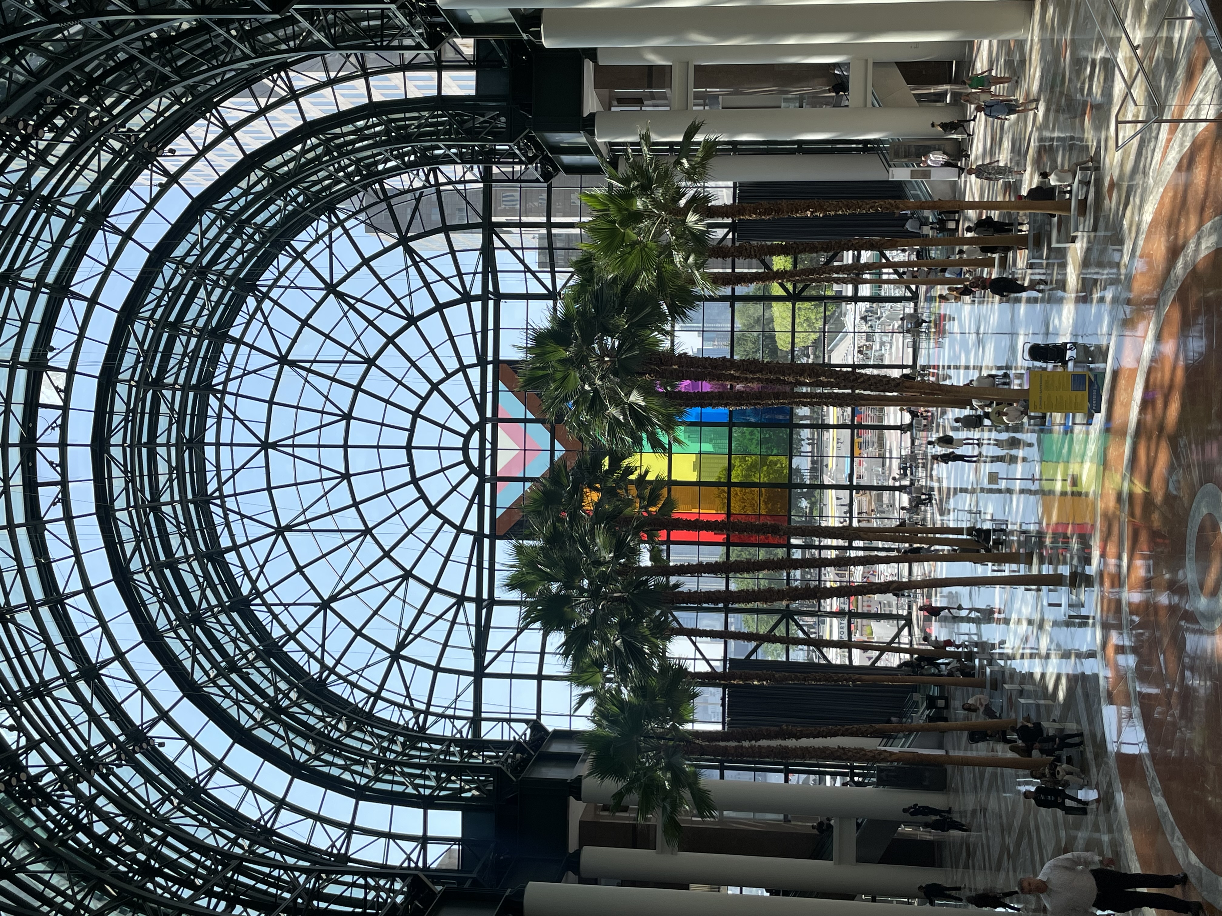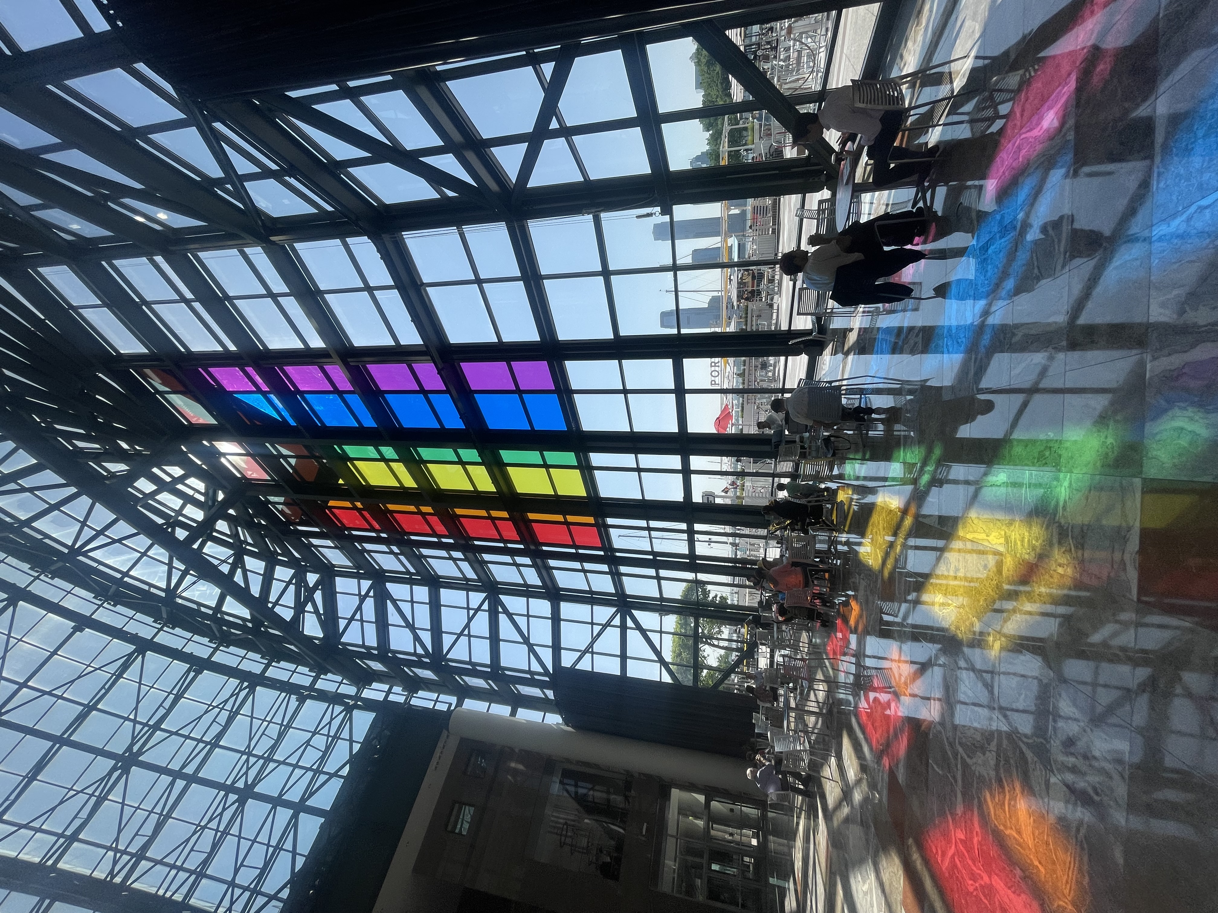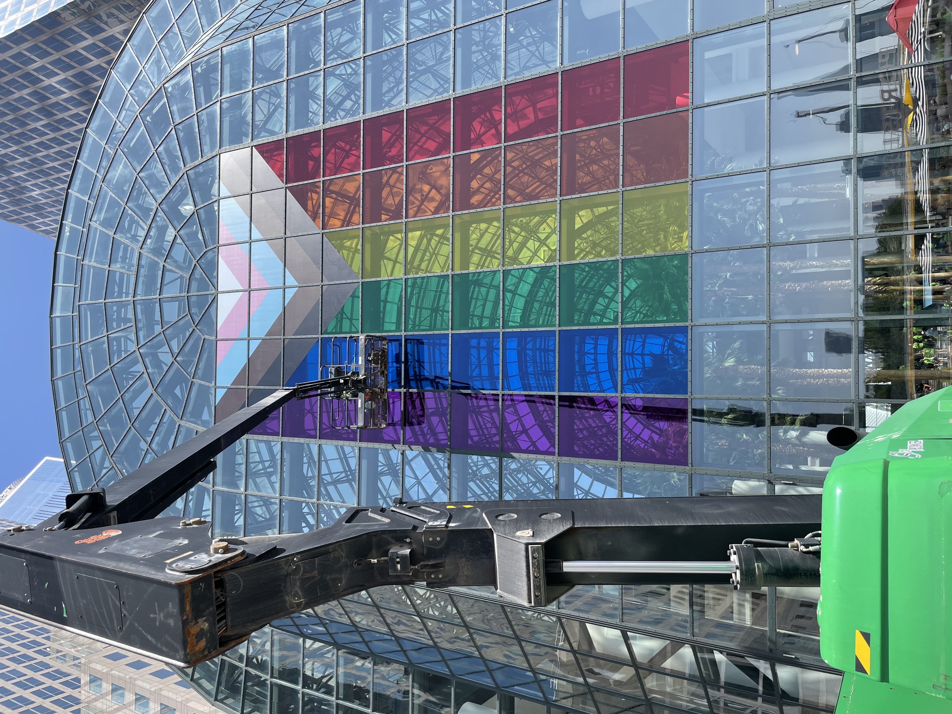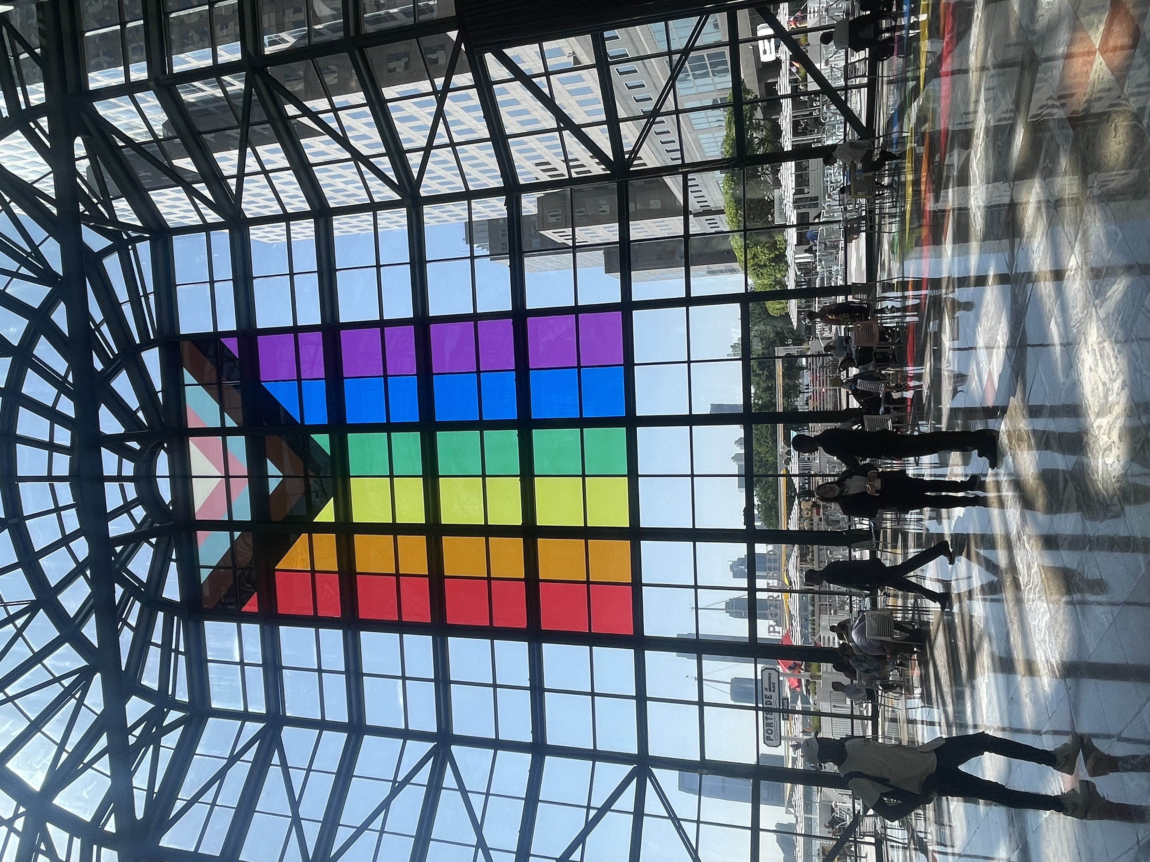 "Duggal Visual Solutions partnered with Brookfield Properties to create a stunning Pride Month display featuring a 30' x 50' Pride flag. Installed on a glass window at Brookfield Place’s Winter Garden, the flag creates a radiant stained-glass effect, showcasing both innovation and expertise. Visitors are invited to capture photos of the vibrant installation and share what gives them pride with @bfpny."
