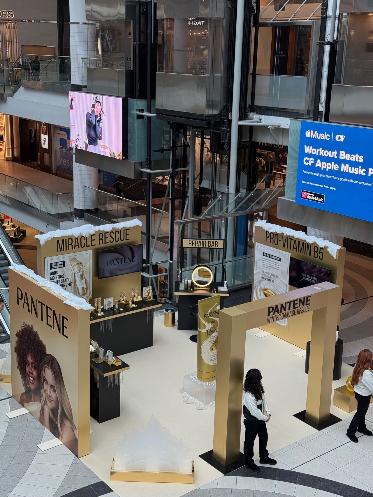 Activation for Pantene Pro-V in Eaton Centre Canadian Mall. Special for this activation we created life size bottle and ice mountain. the client: Roxanne Hodson