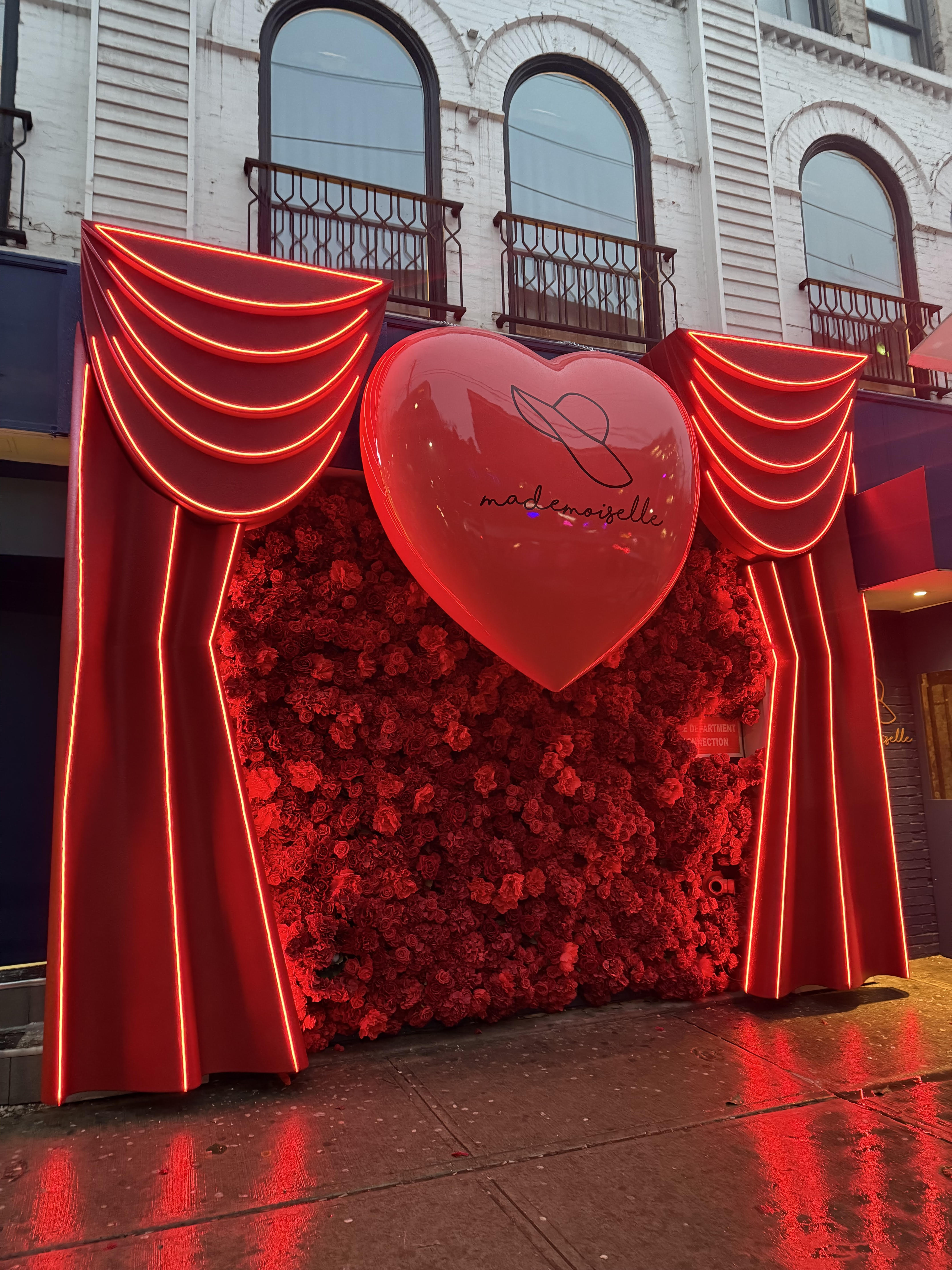 Engineered Arts and Stems Flower company designed and created incredible out door installation for Valentin's Day at Mademoiselle Restaurant in Toronto