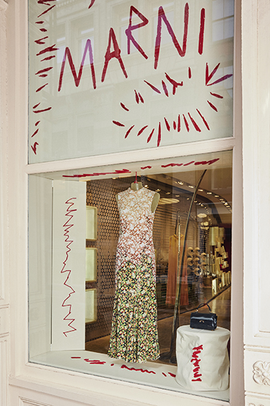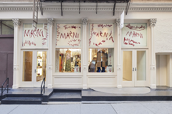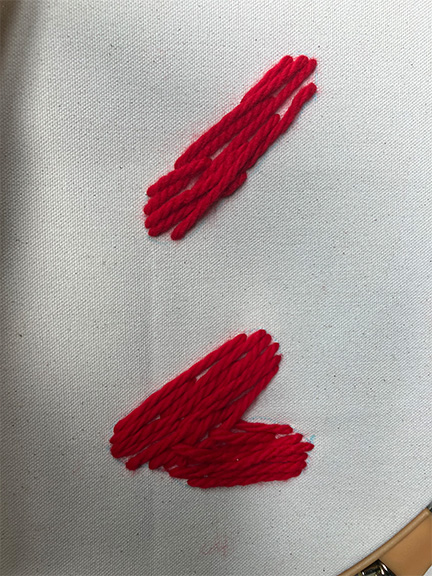 MARNI MENDING PROJECT Hand-embroidered canvas panels for MARNI Soho Fashion Week windows by Aaron Sciandra. Upper panels are roughly 70 inches square