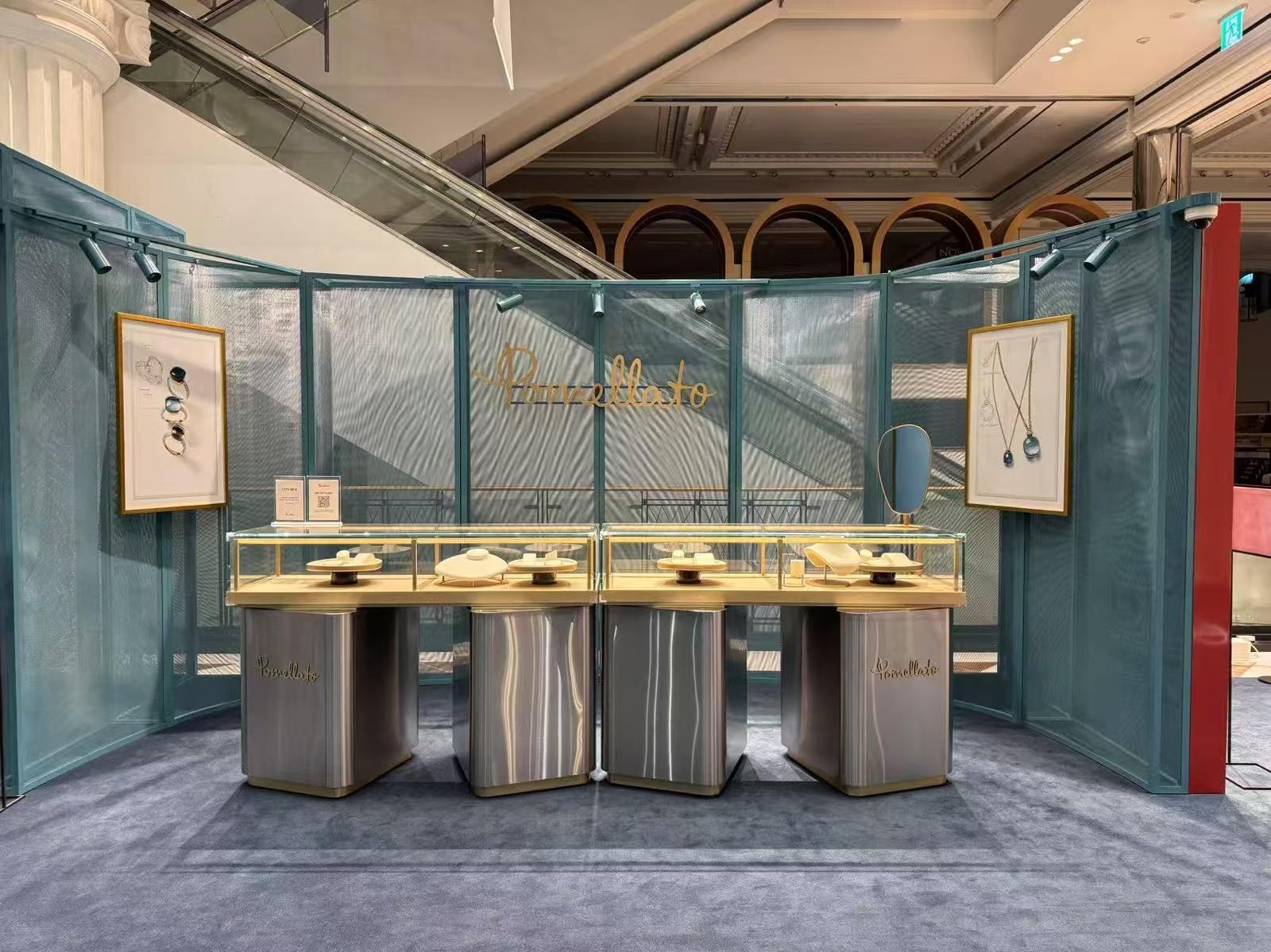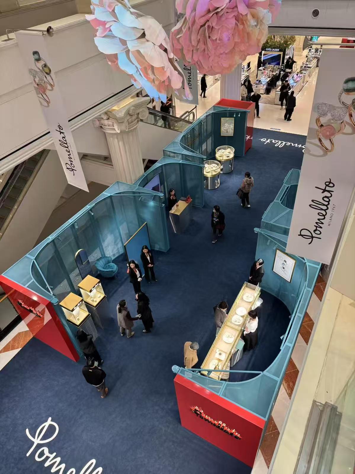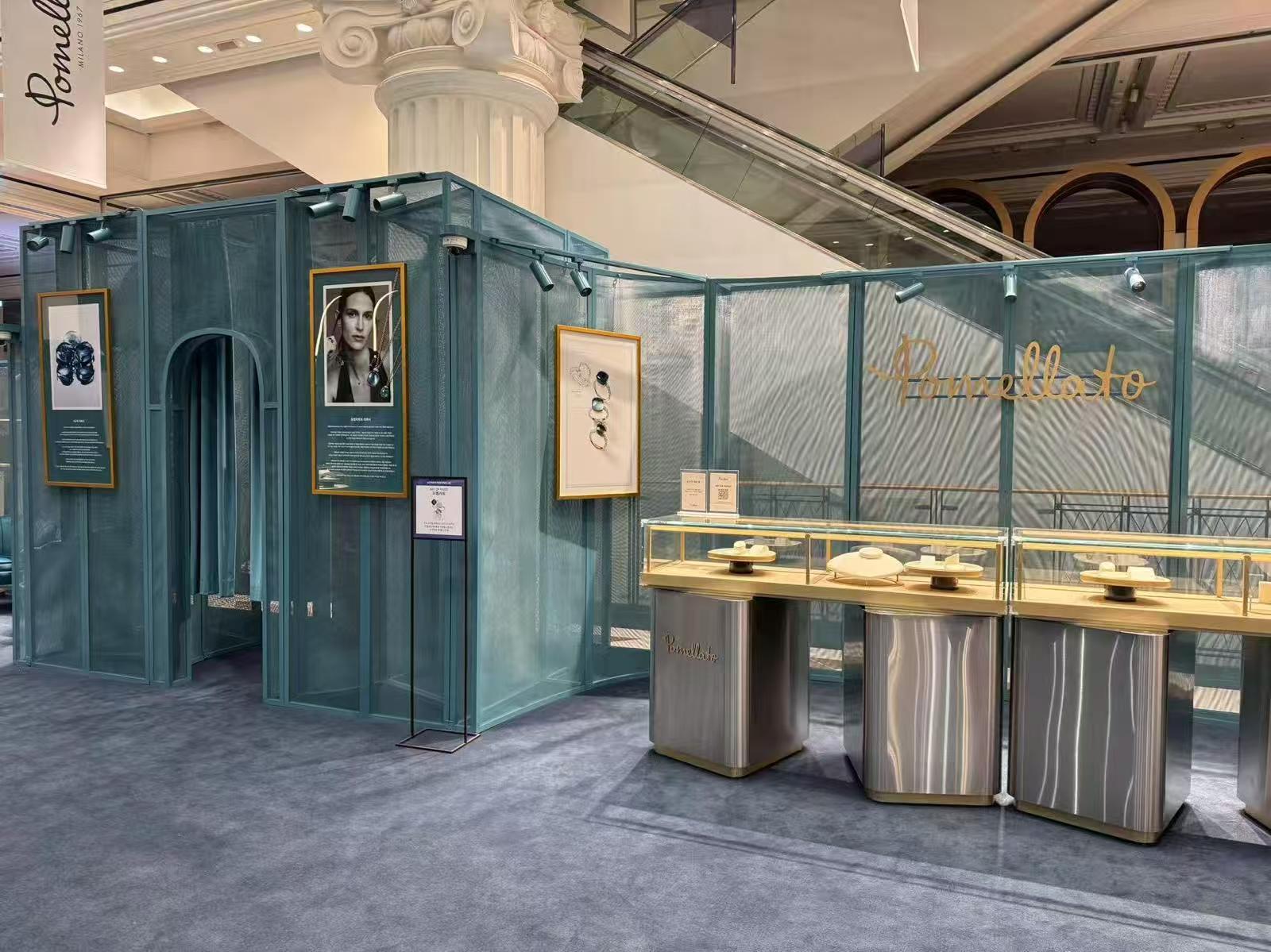 The pop-up for Pomellato at Gangnam Mall in Seoul transforms the space into an exclusive experience where elegance and contemporary style seamlessly come together. The setup is designed to highlight the brand’s distinctive design, with every detail carefully curated to reflect the sophistication and innovation that define Pomellato. A unique environment blending beauty and functionality, it welcomes visitors into a timeless atmosphere of luxury.