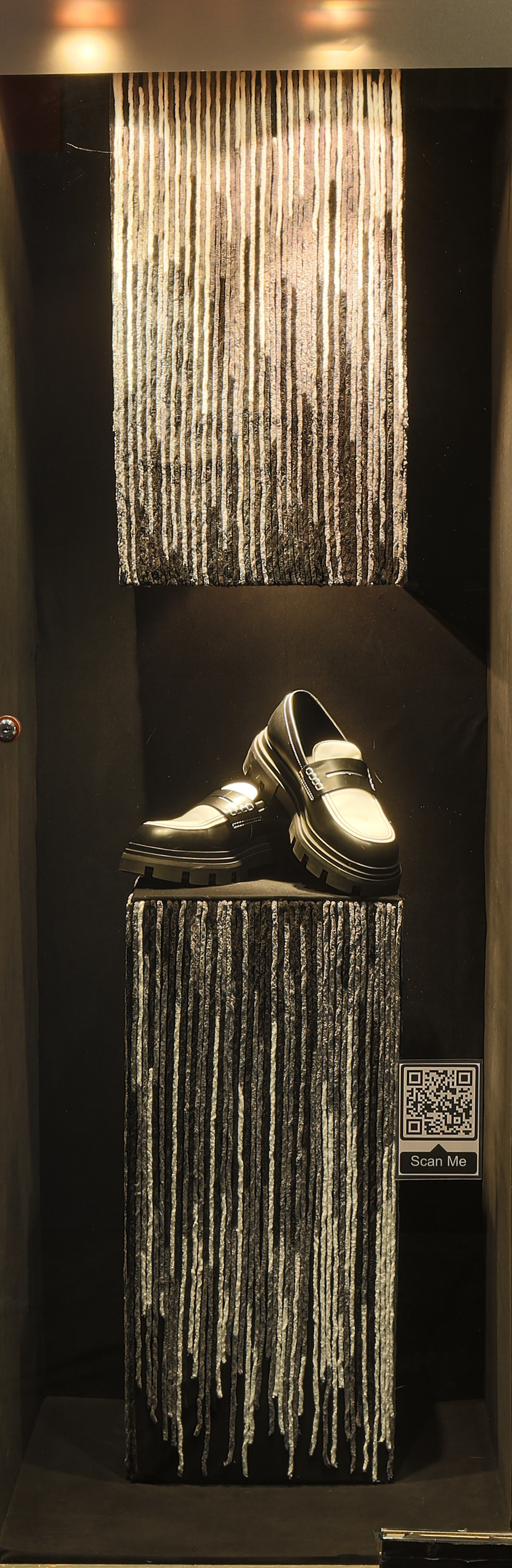 The display highlights texture and pattern in both the product and the props, creating a cohesive and visually impactful presentation.