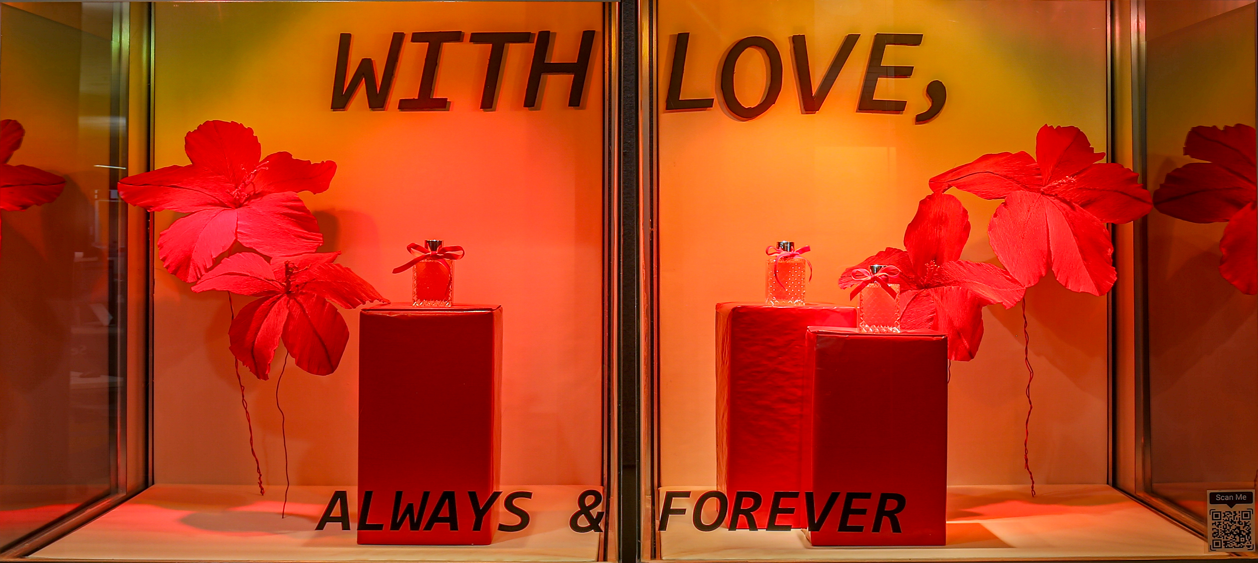 The display evokes luxury, elegance, and allure, emphasizing the unique qualities of the products