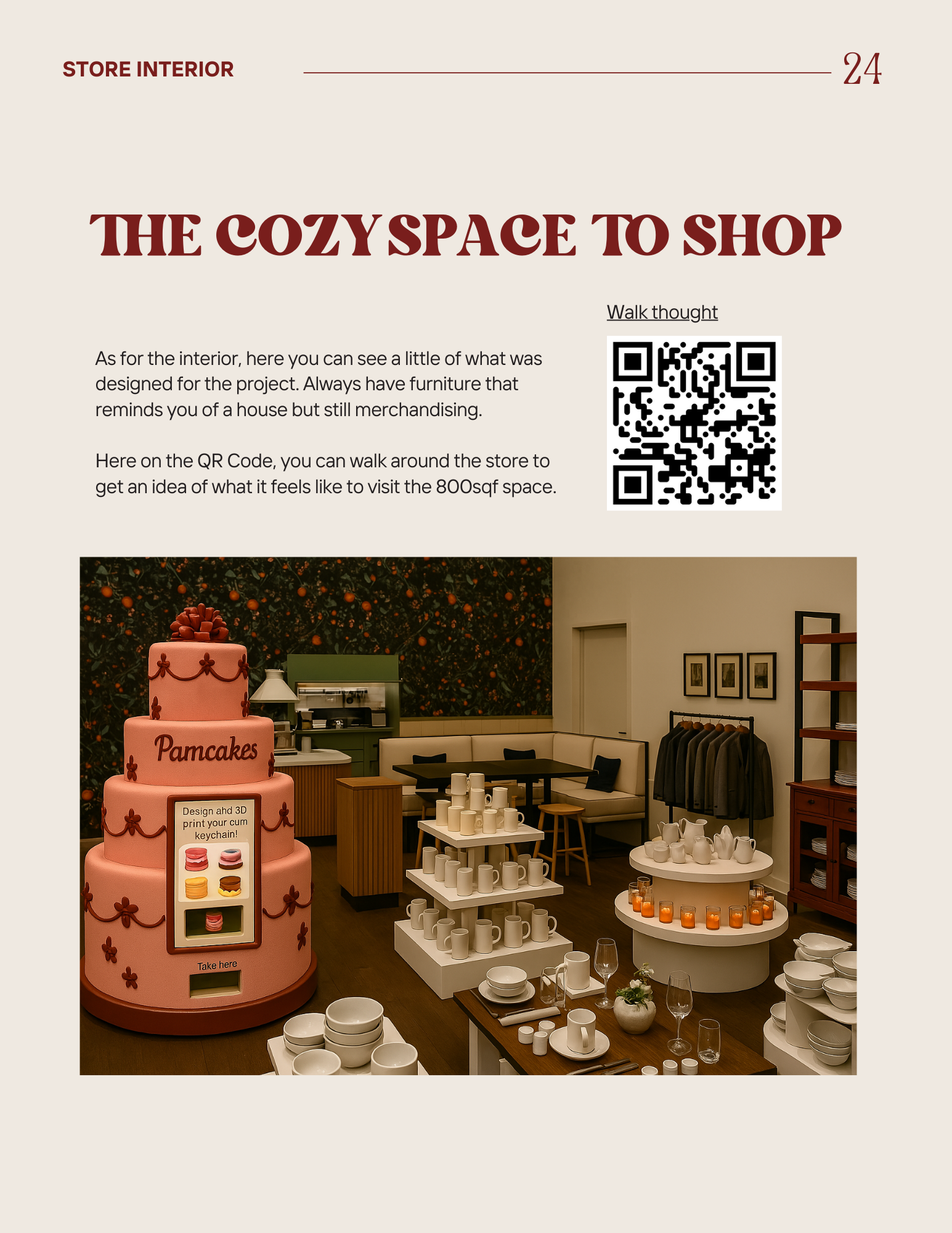 The interior of Pamcakes, my store for Capstone Project, was thoughtfully designed to feel like a warm hug for anyone who loves to bake, create, or simply enjoy a cozy slice of cake.