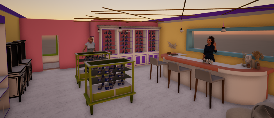 The space was modelled in SketchUp and rendered in twin motion, with attention to materials, flow, and an overall vibe that feels true to the slave identity.