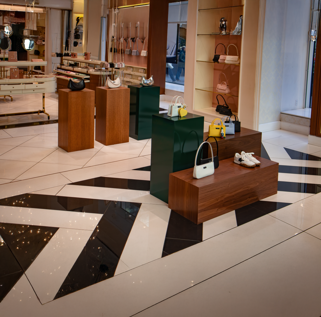 For Kate Spade’s Spring 2025 rollout, Visual Citi fabricated a series of refined in-store risers, pedestals, and platforms that balanced playful elegance with structured minimalism.