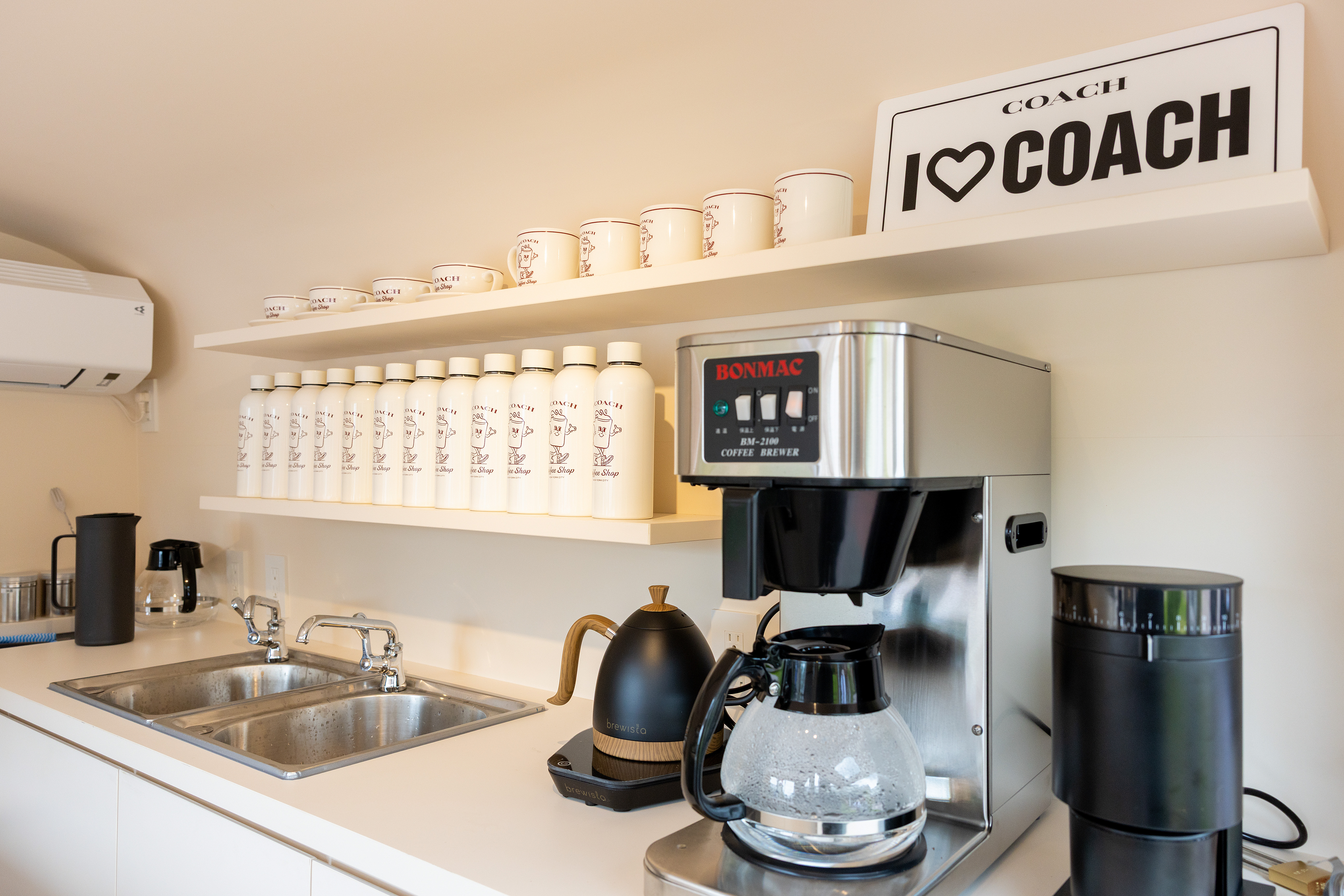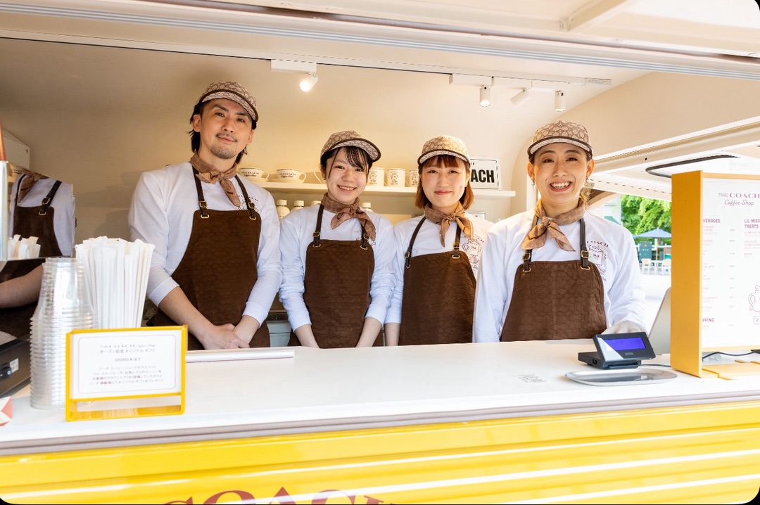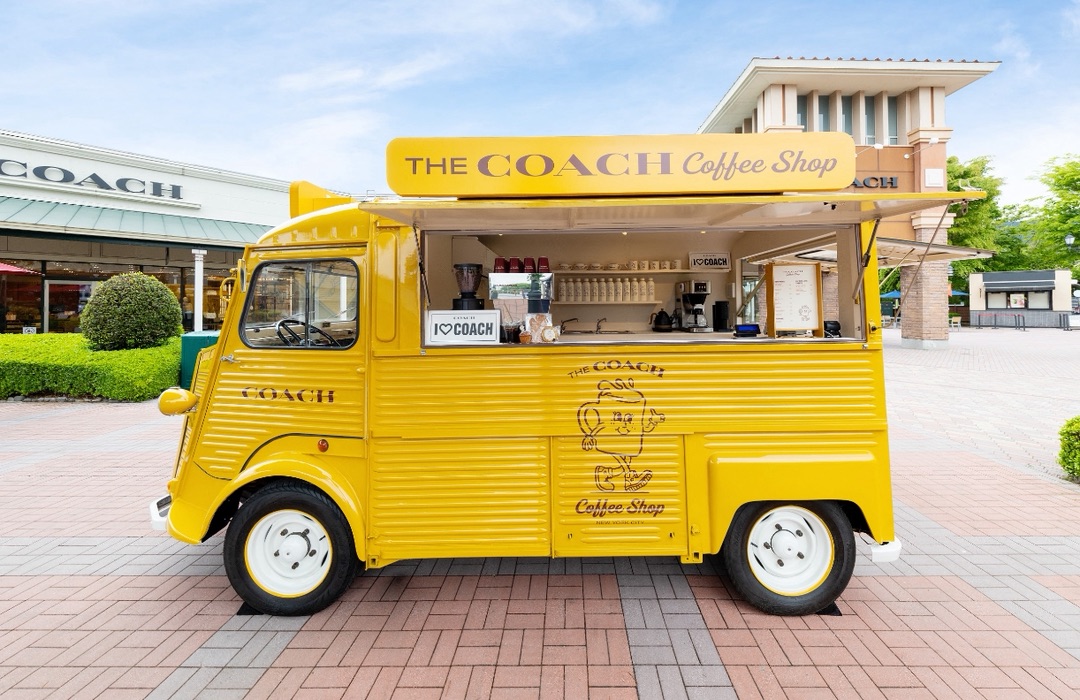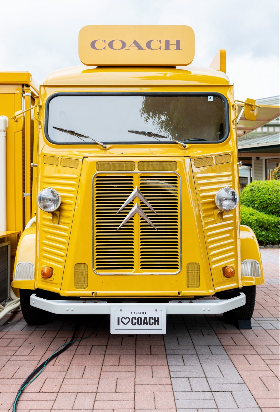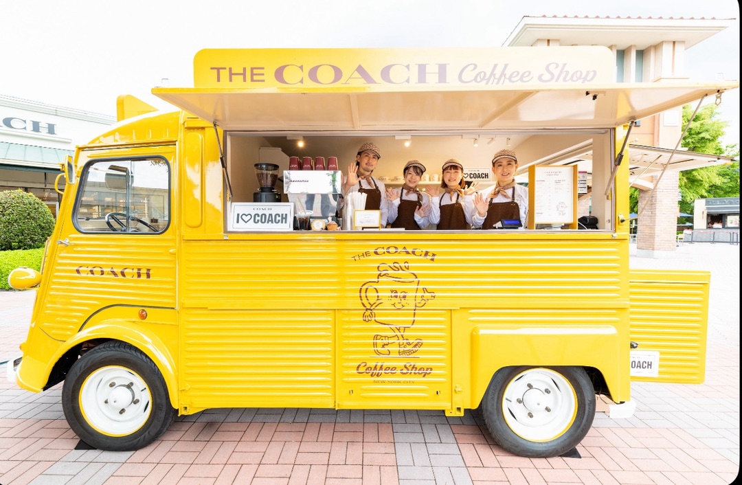 At Coach we are dedicated to create fully immersive experiences around the world to emotionally engage with our consumer. Today we launched our very first Coffee Truck in Gotemba (Japan). The installation welcomes customers into our store with a bespoke branded drinks & treats menu. Our staff was so happy today, check them out in our coffee shop uniforms.
