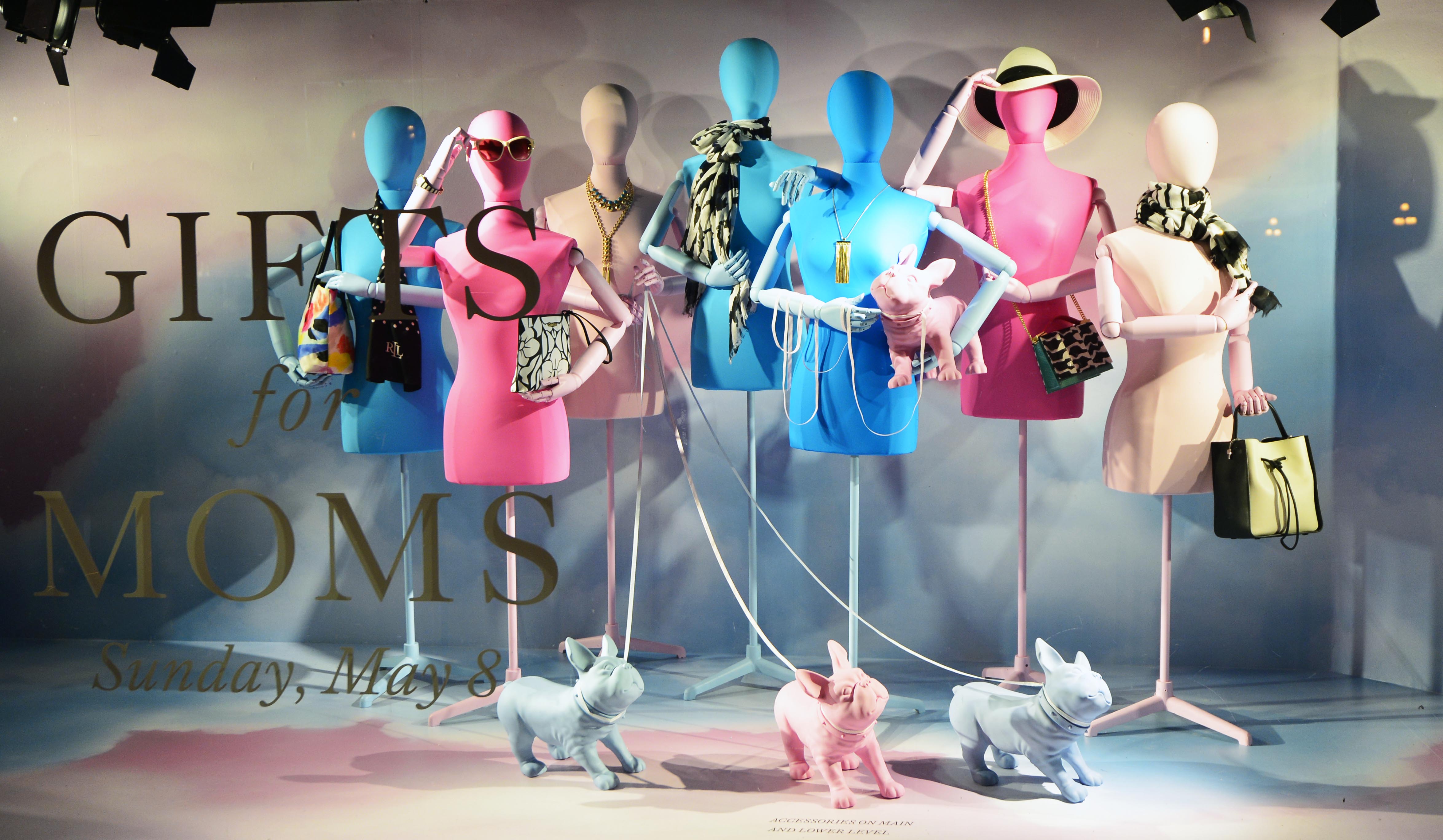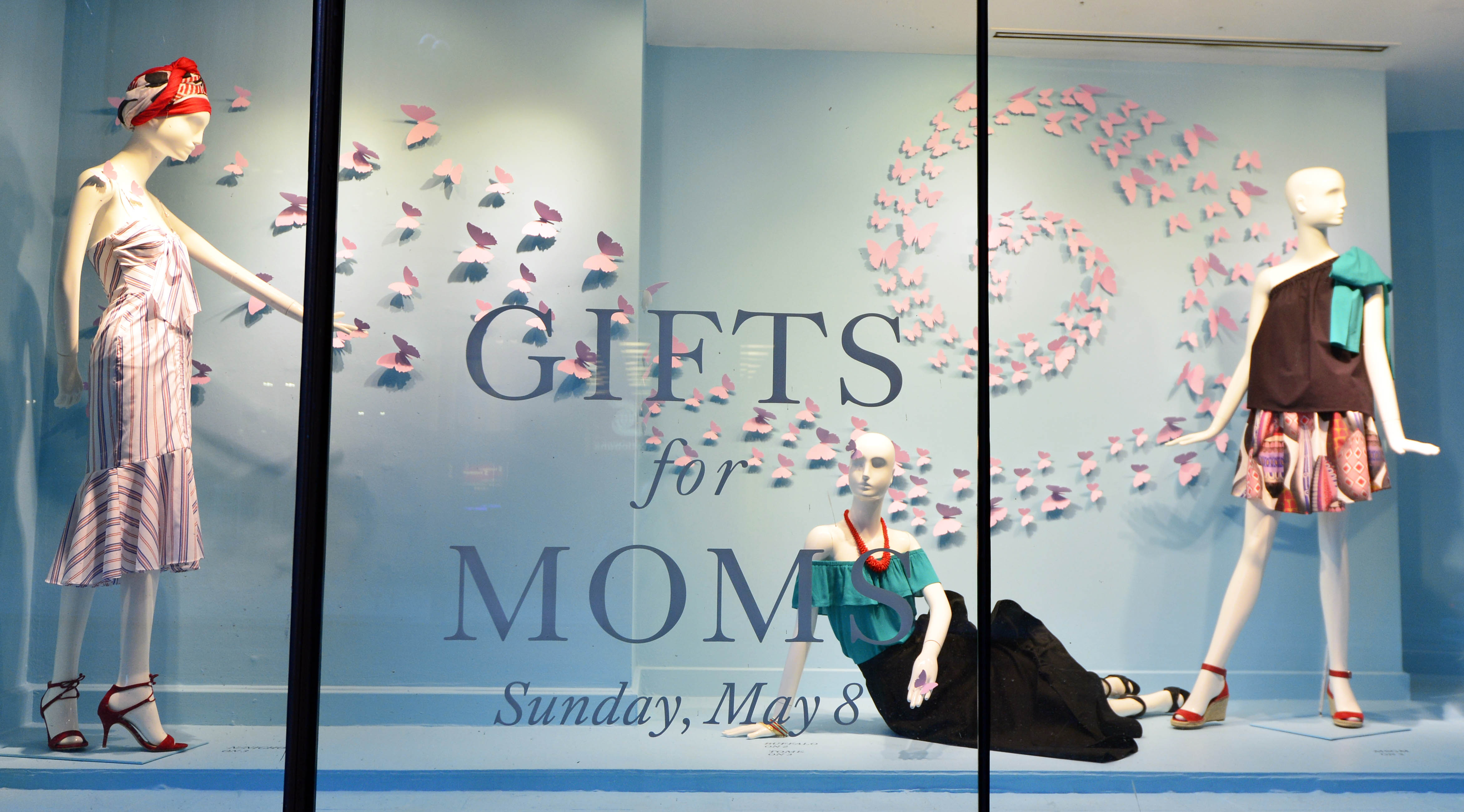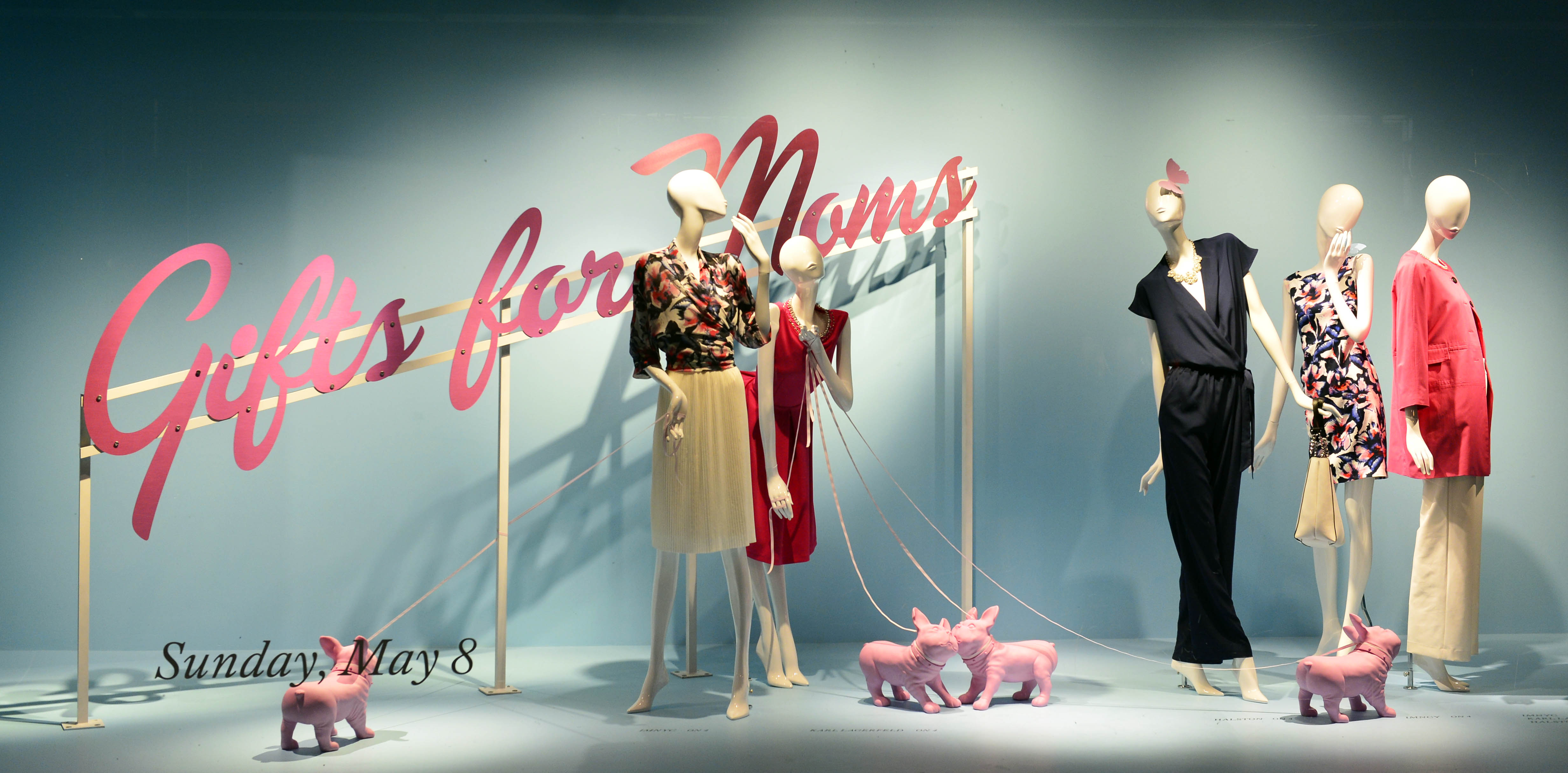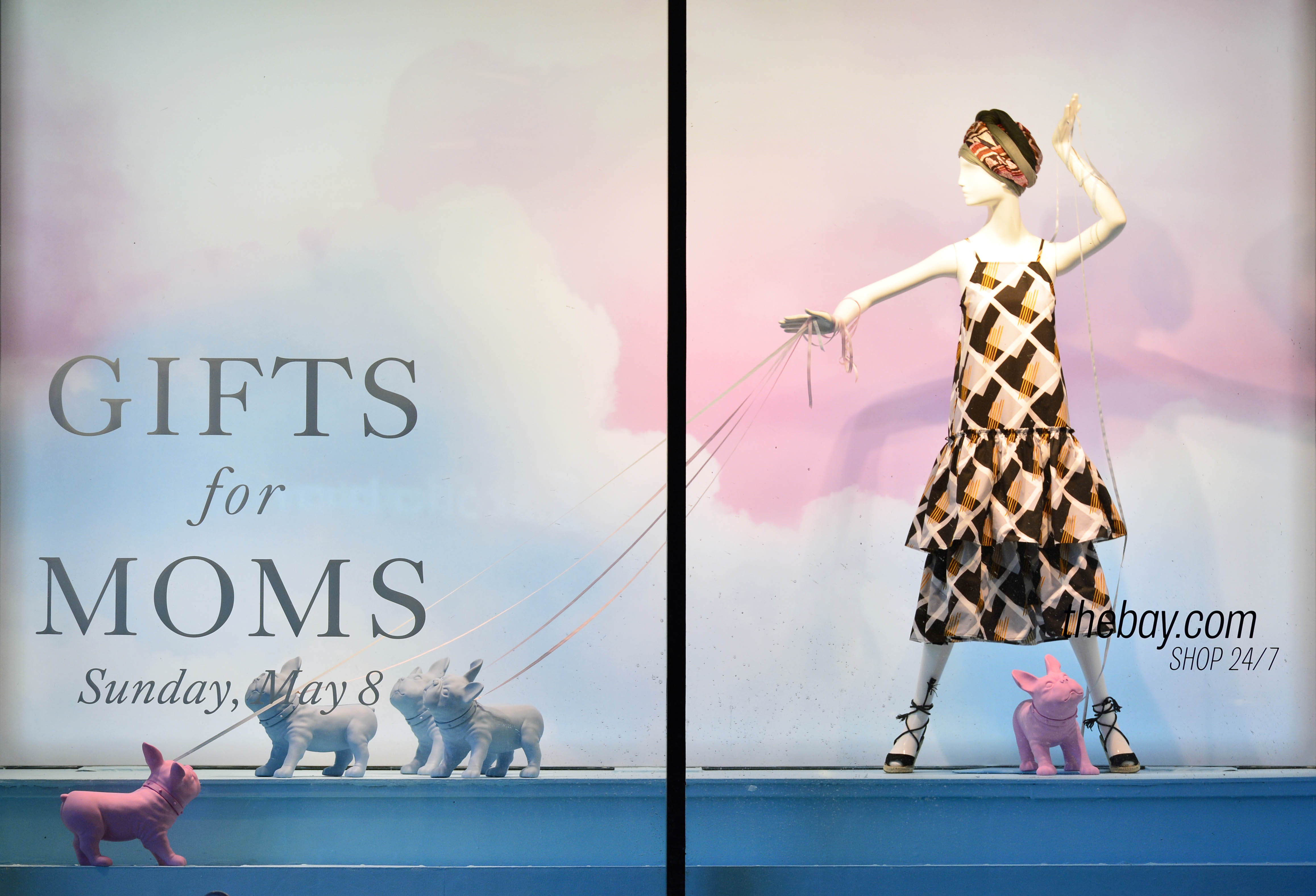 Inspired by the Pantone colours of the year Rose Quartz and Serenity, we took these colours and applied then to scenes that would allow us to both play off on these 2 different colors, yet create fun, whimsical scenes for our Mother’s Day inspired windows.