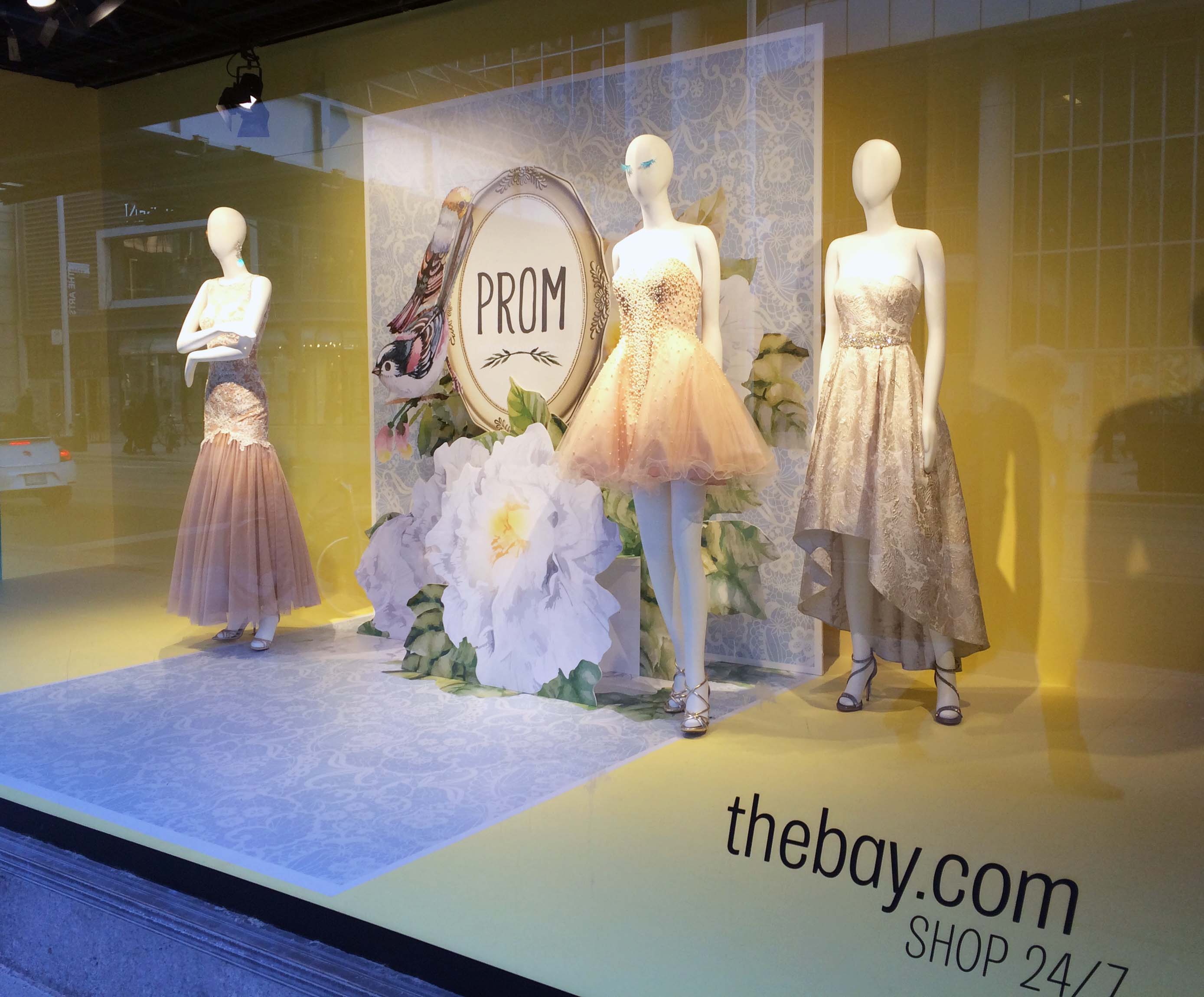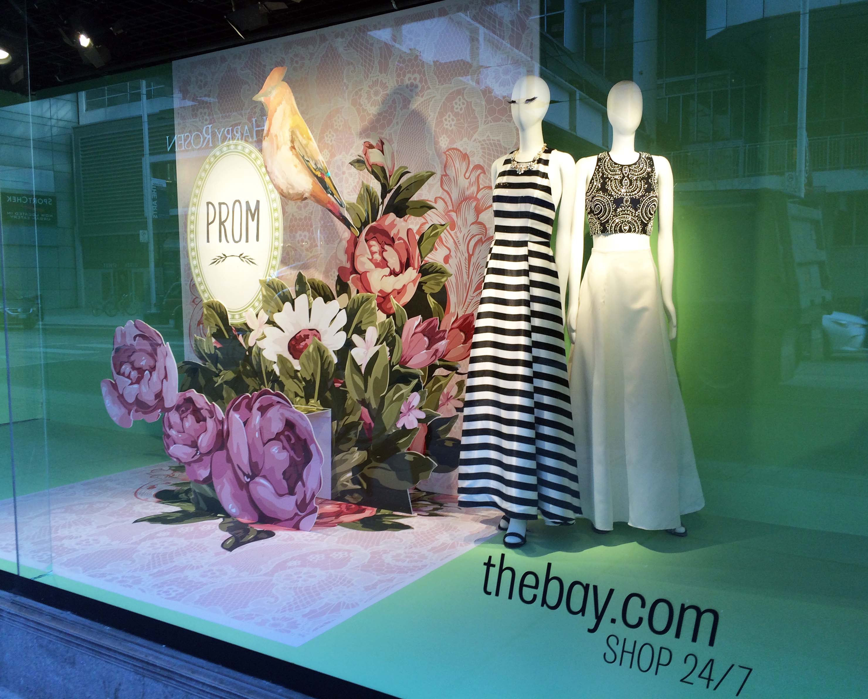 For Prom 2016 we were inspired by “pop-up” cards, and wanted to used them as a background to feature our Prom dress selections both instore and in our windows.