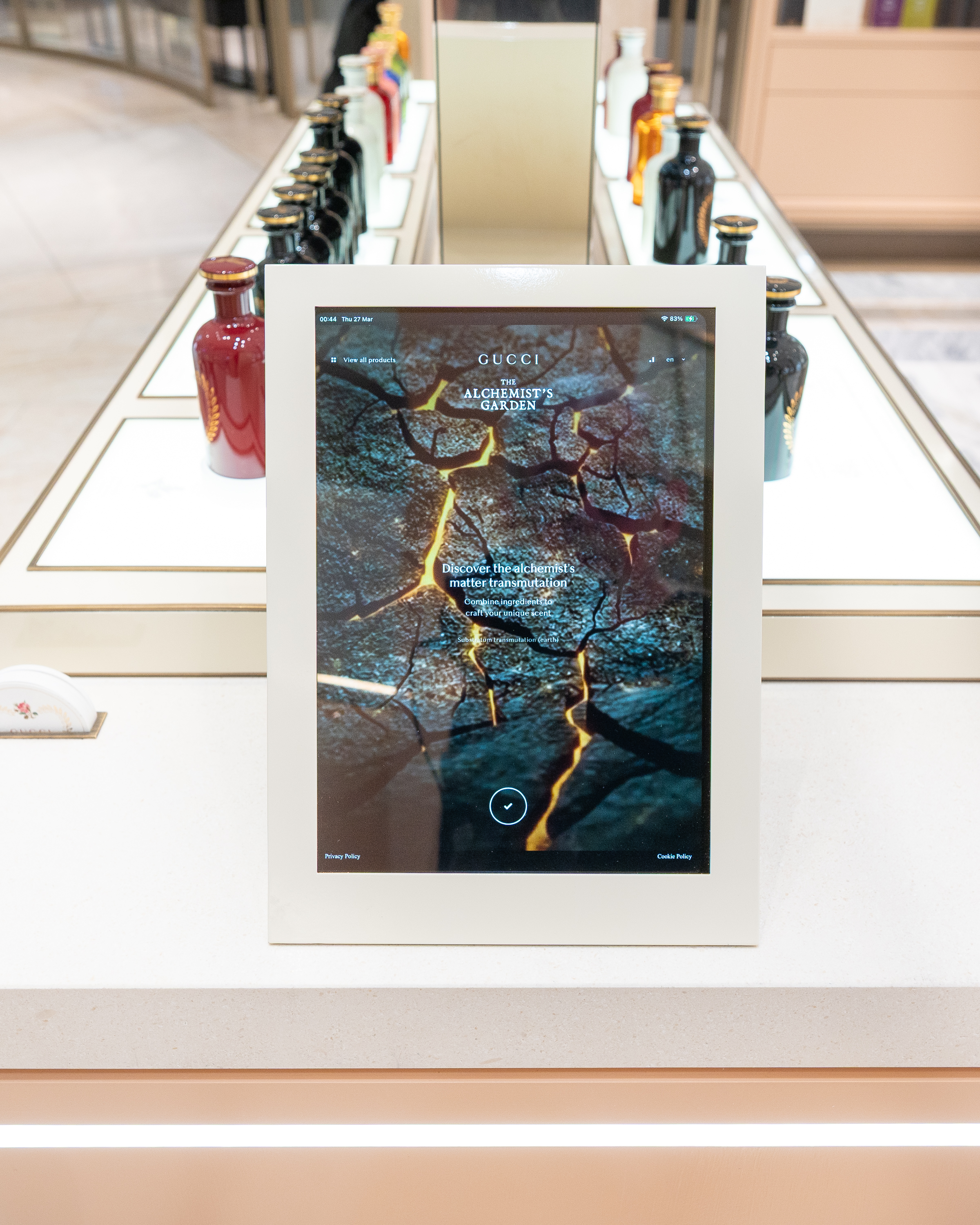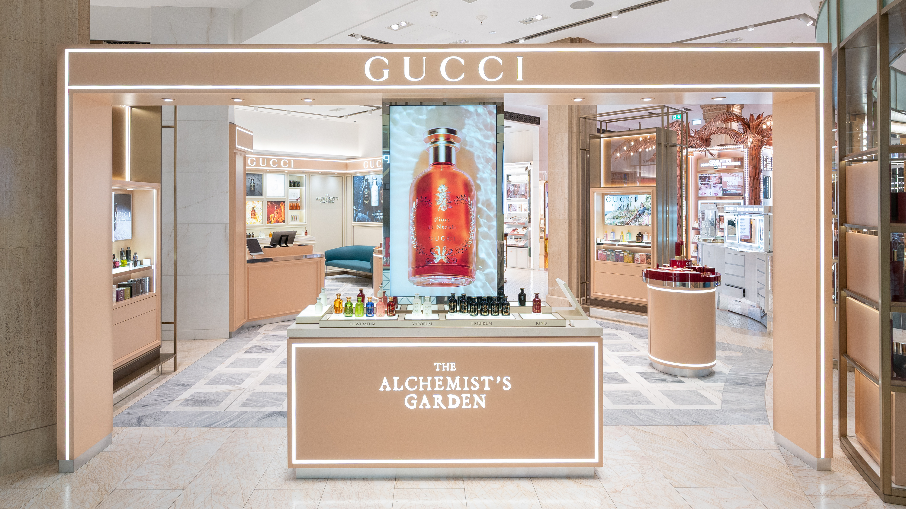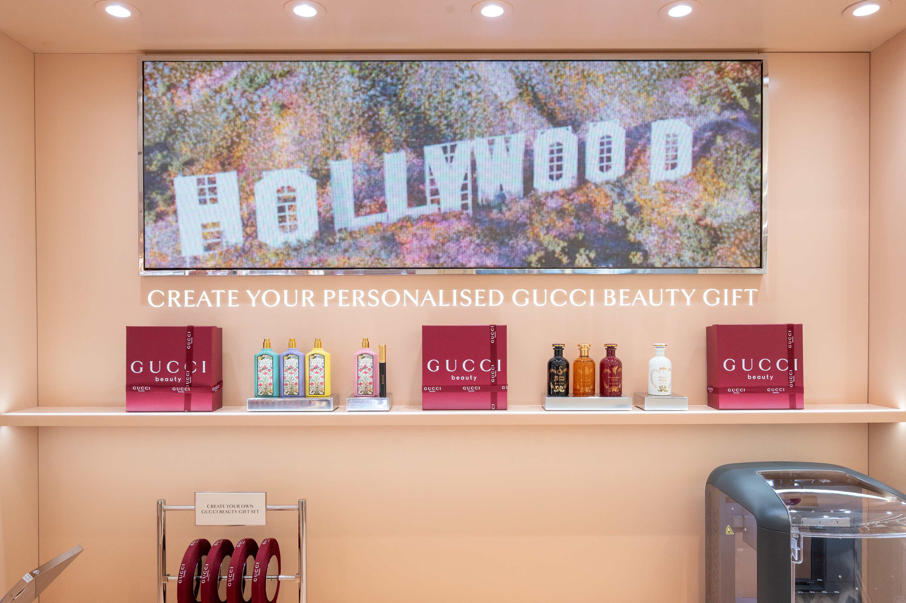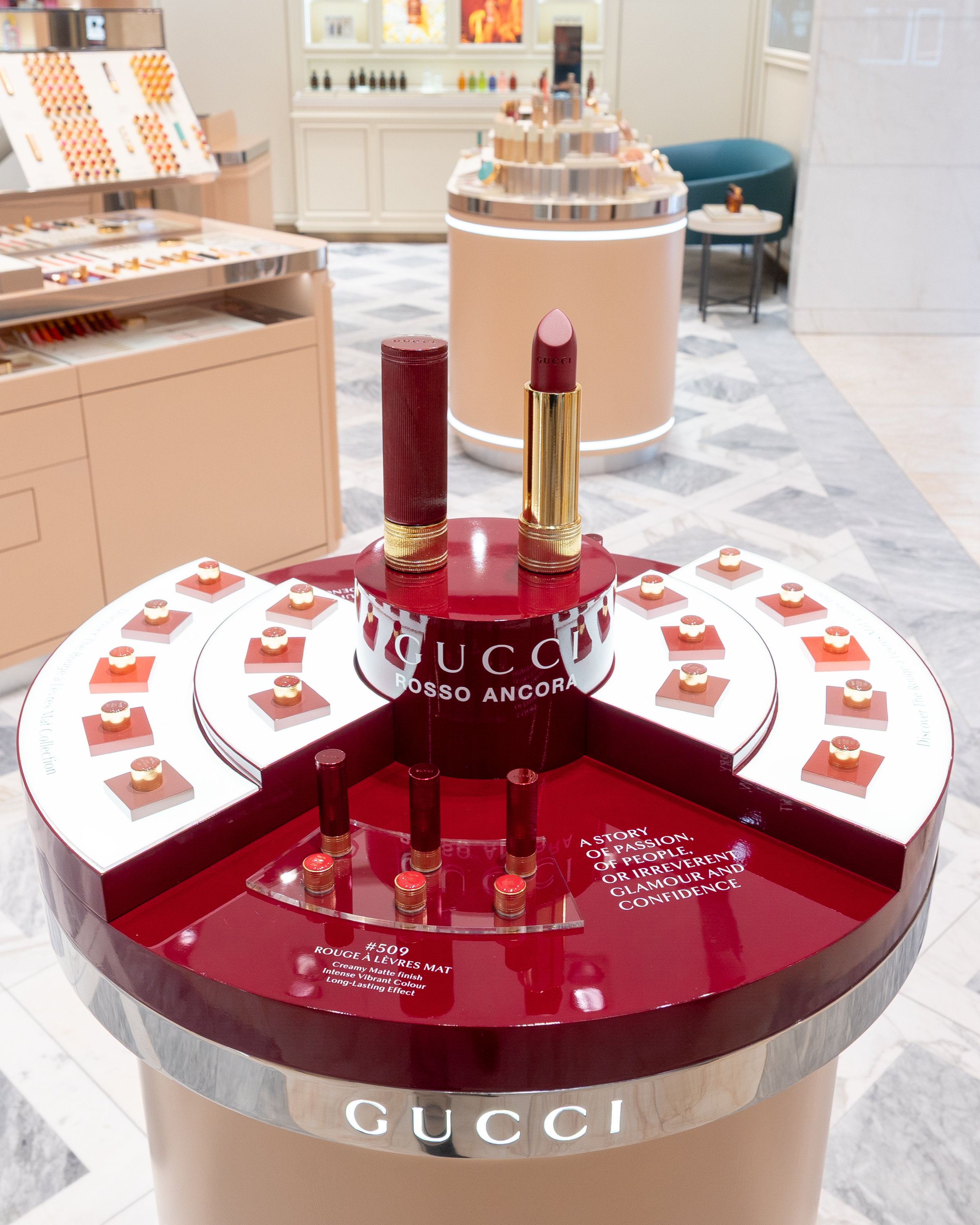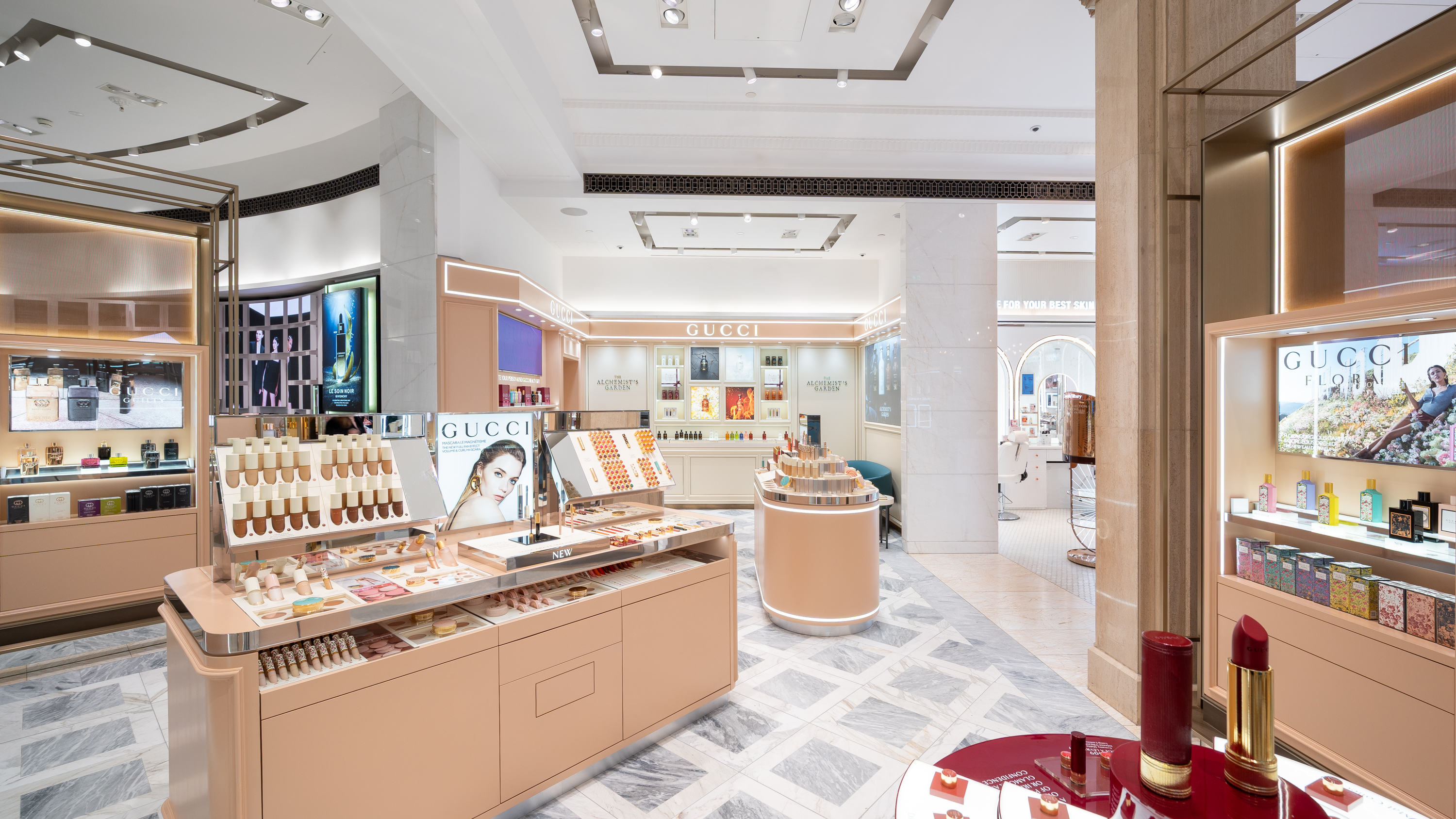 The boutique embodies Gucci Beauty’s new Store Design concept, created in avant-premiere for Harrods with exclusive elements like custom flooring in Italian Bardiglio Nubolato and Calacatta marbles, showcasing Gucci’s signature passion for striking graphic patterns.