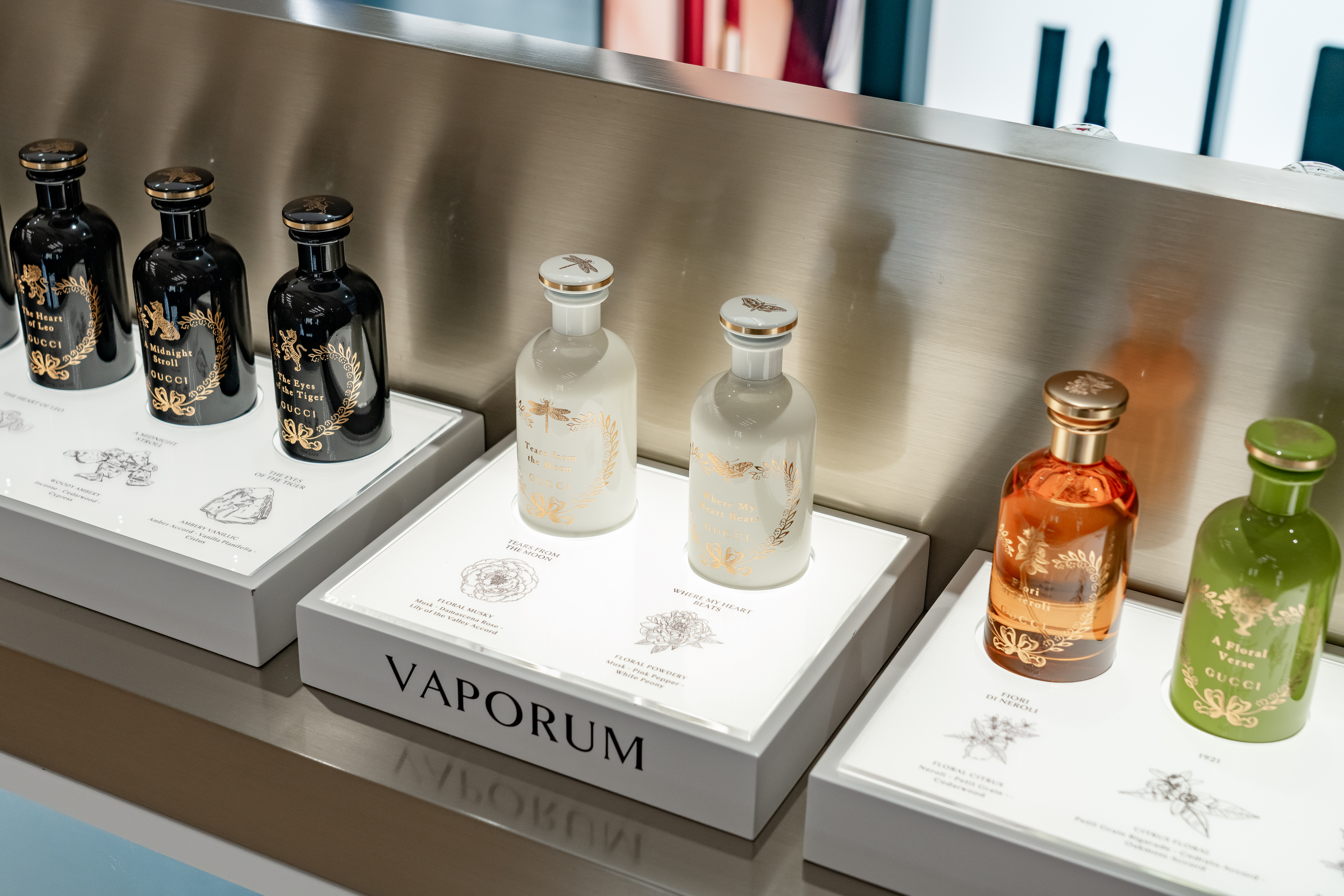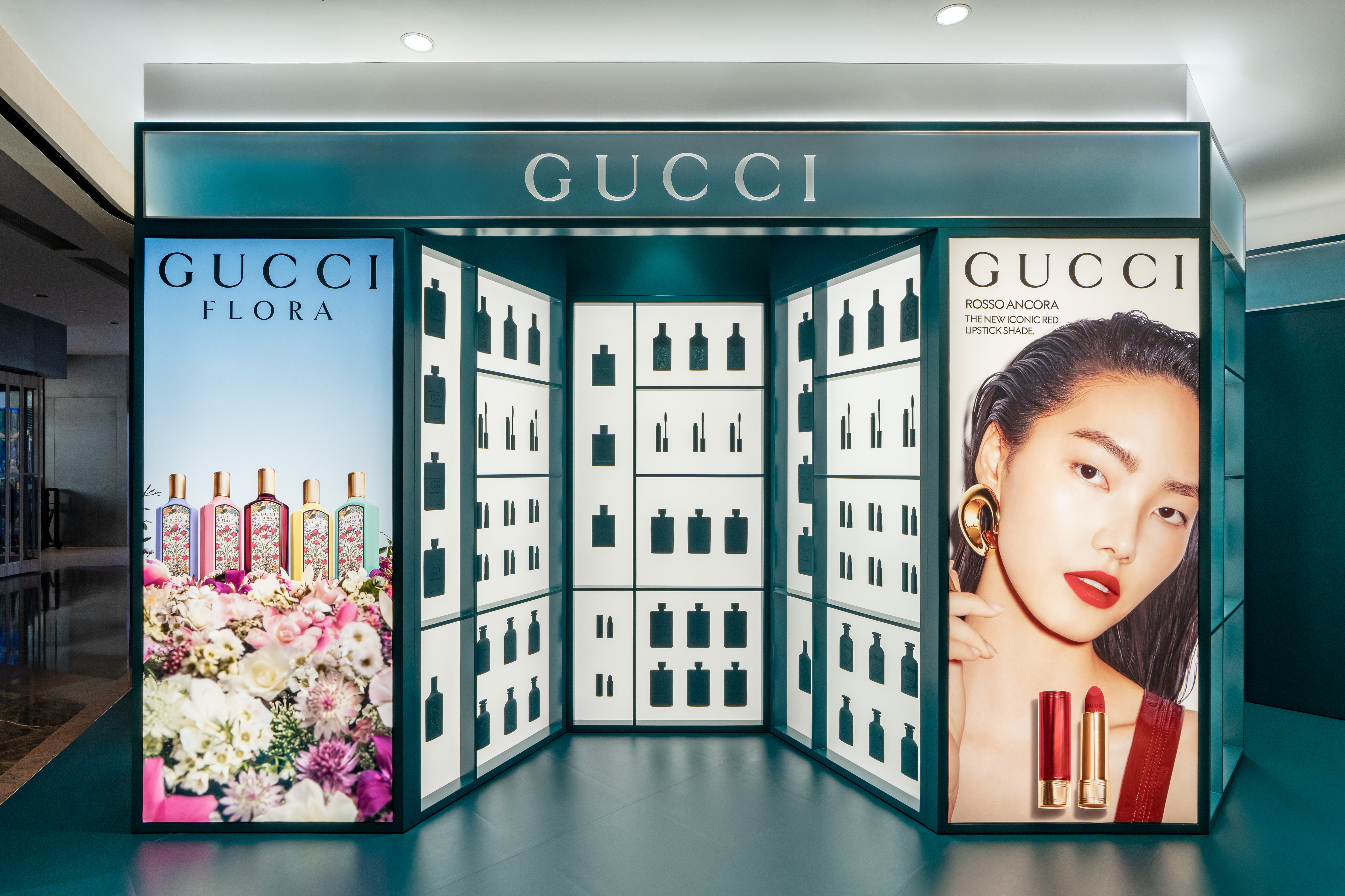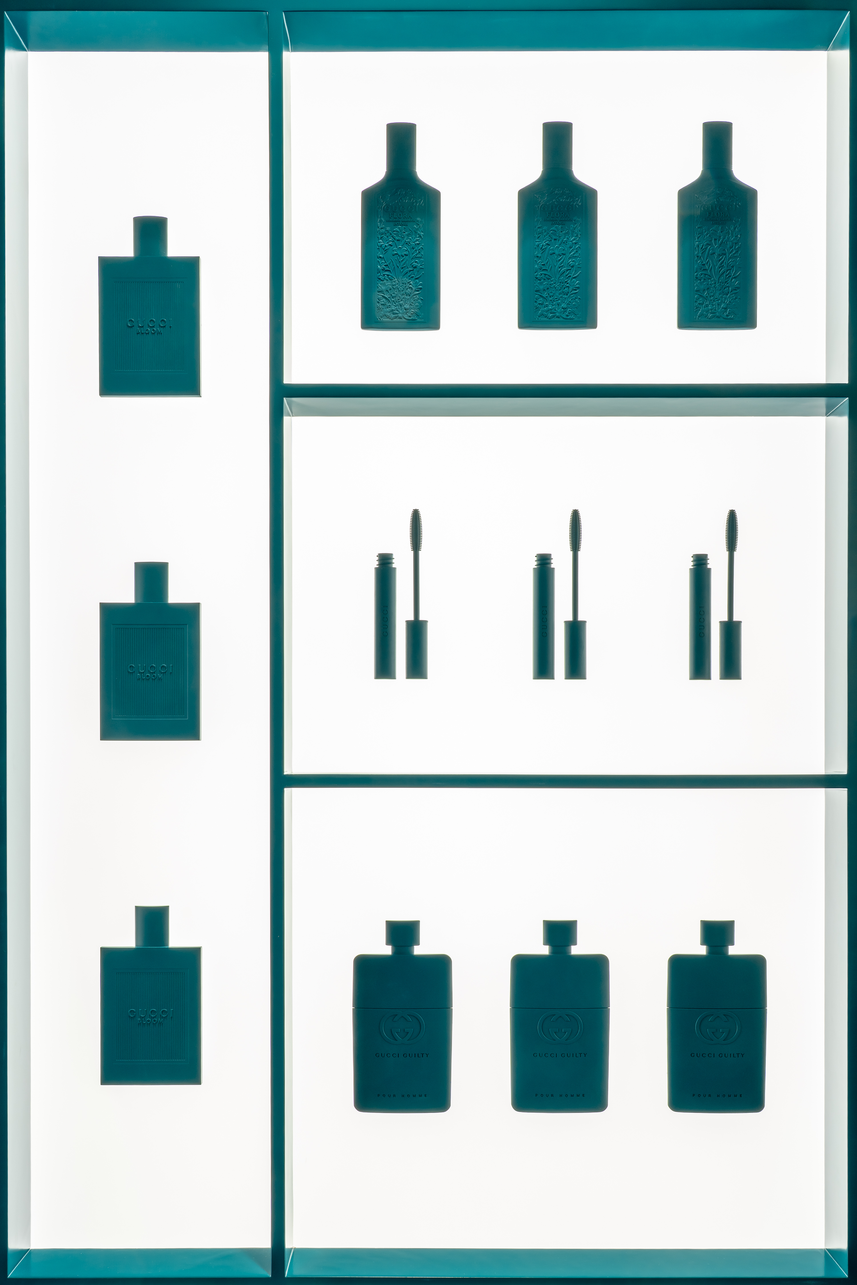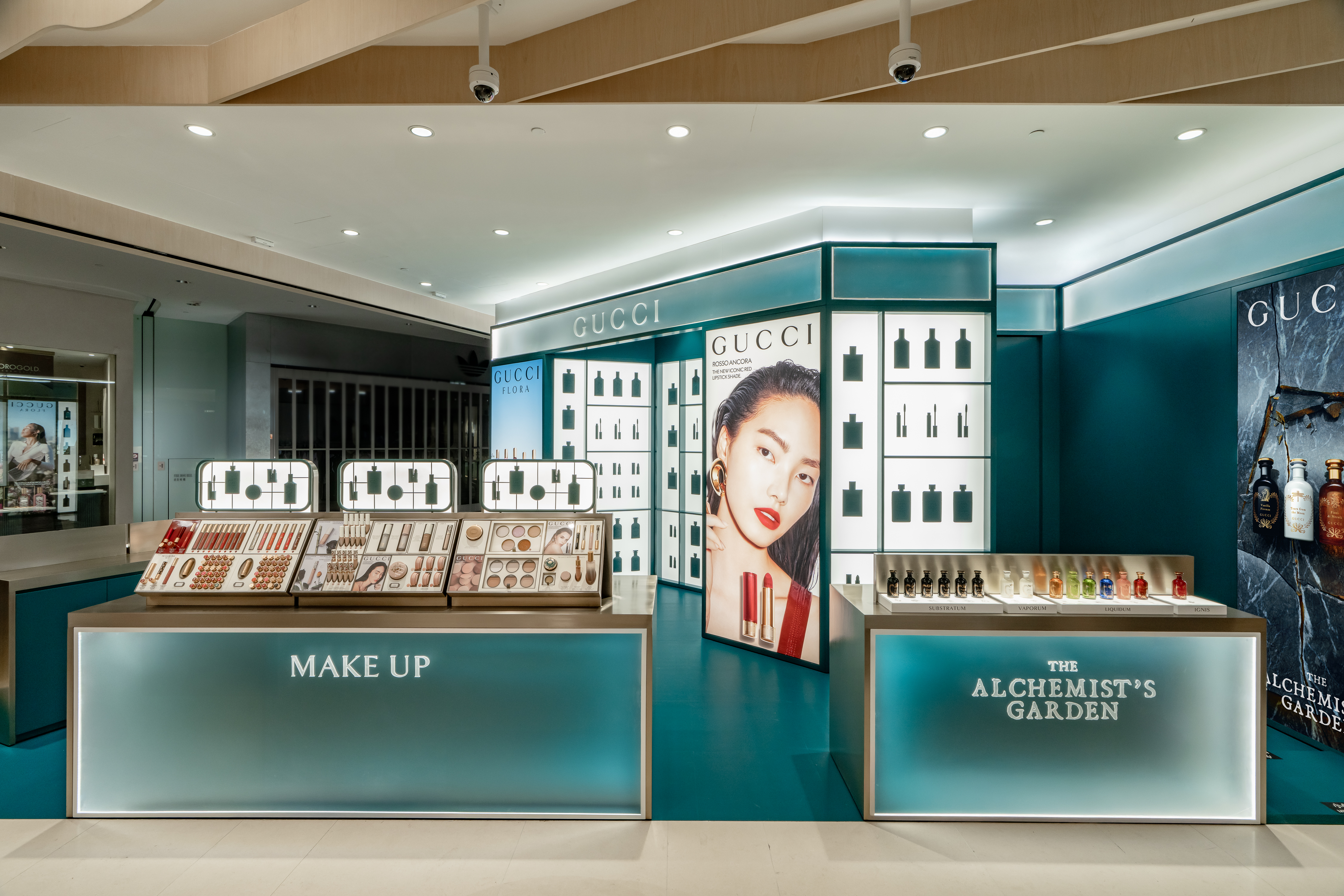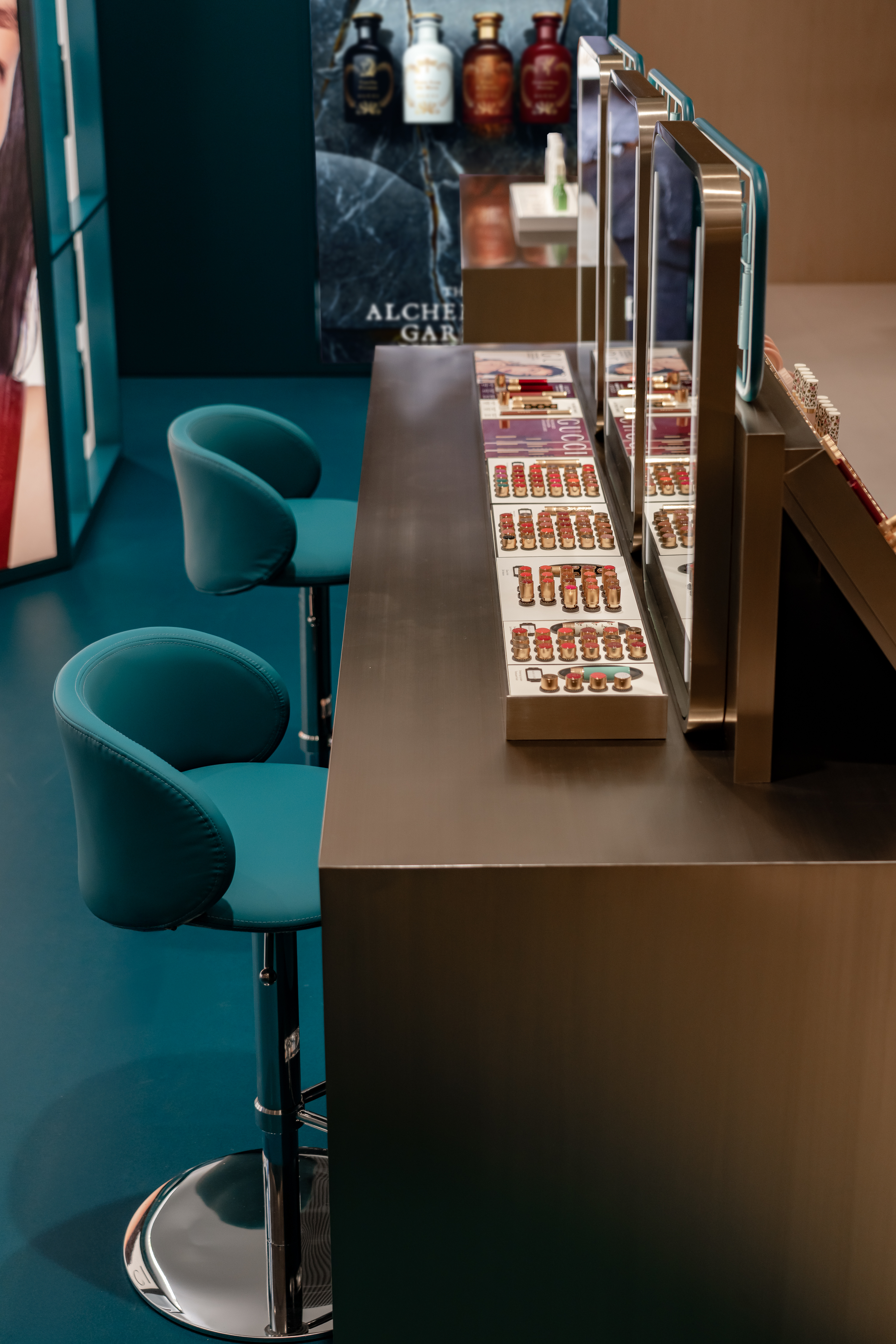 Inspired by the Endless Narrative window concept, the new Beauty Space pop-up transforms the shapes of Gucci’s iconic beauty products into patterned walls that invite exploration. It’s a kaleidoscope of forms where visitors can discover the latest fragrances and make-up. A subtle play of light and mirrors expands perspectives, drawing guests deeper into this sensorial universe. The pop-up also features service-led activations such as make-up testing and virtual try-on, alongside engaging experiences like a photobooth to boost brand interaction.