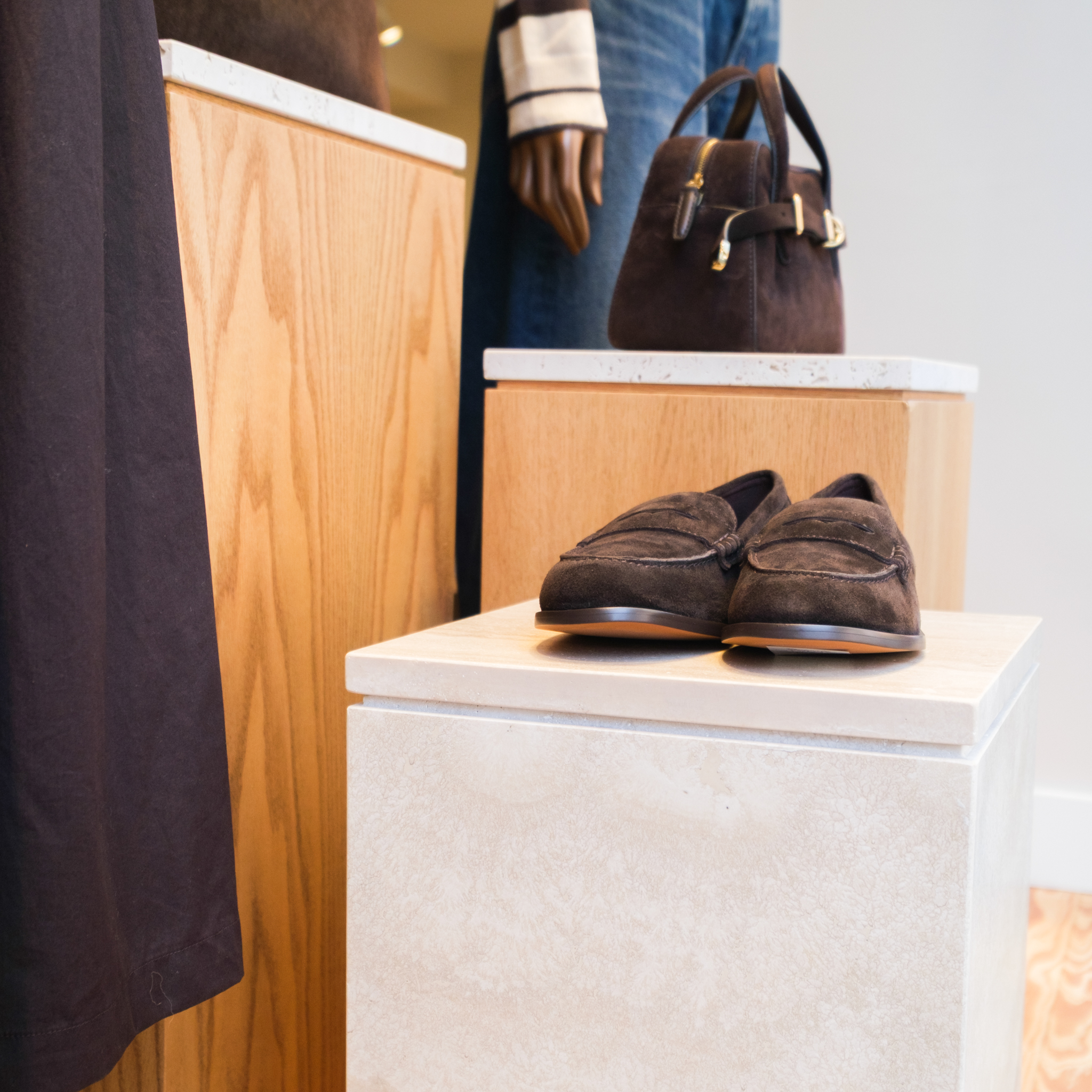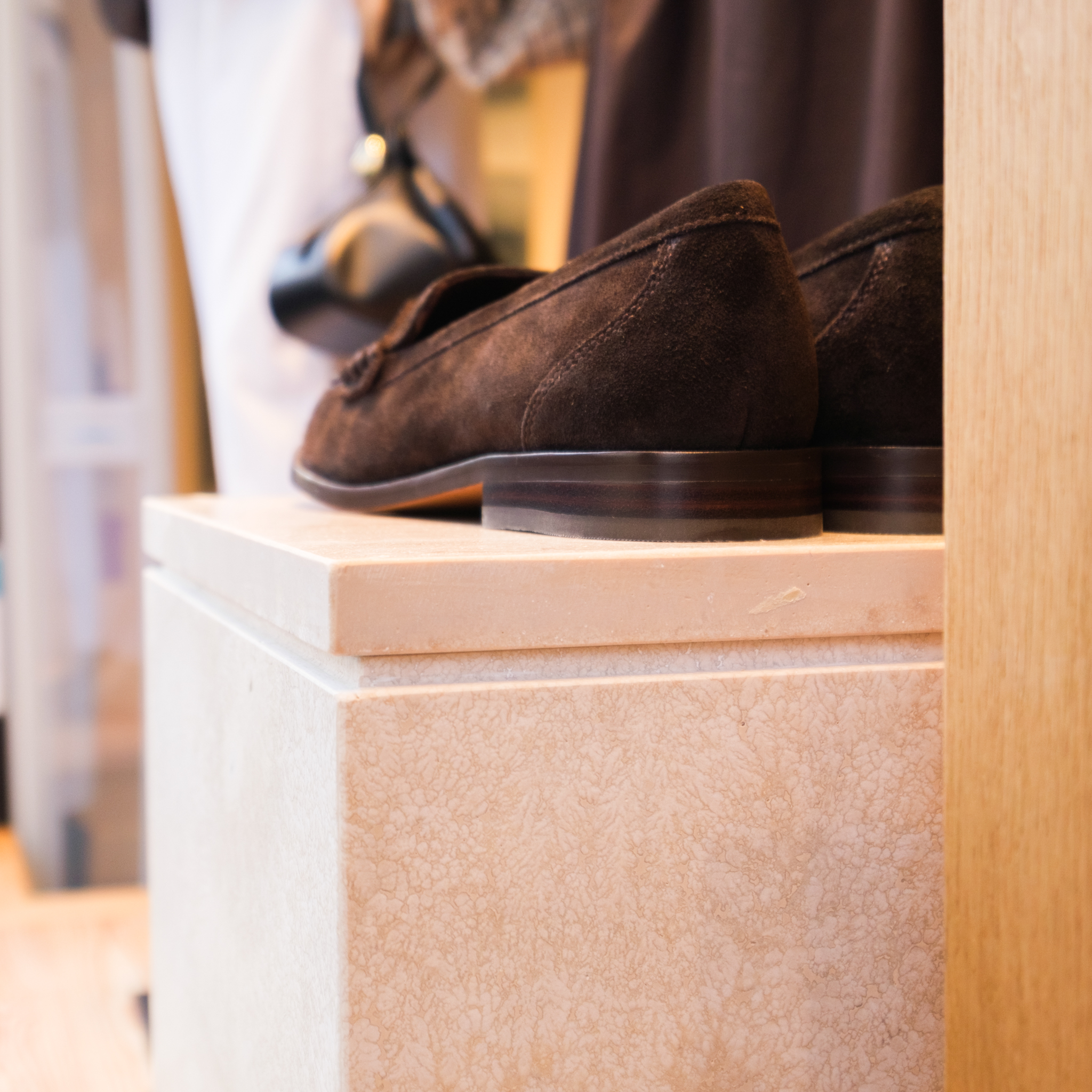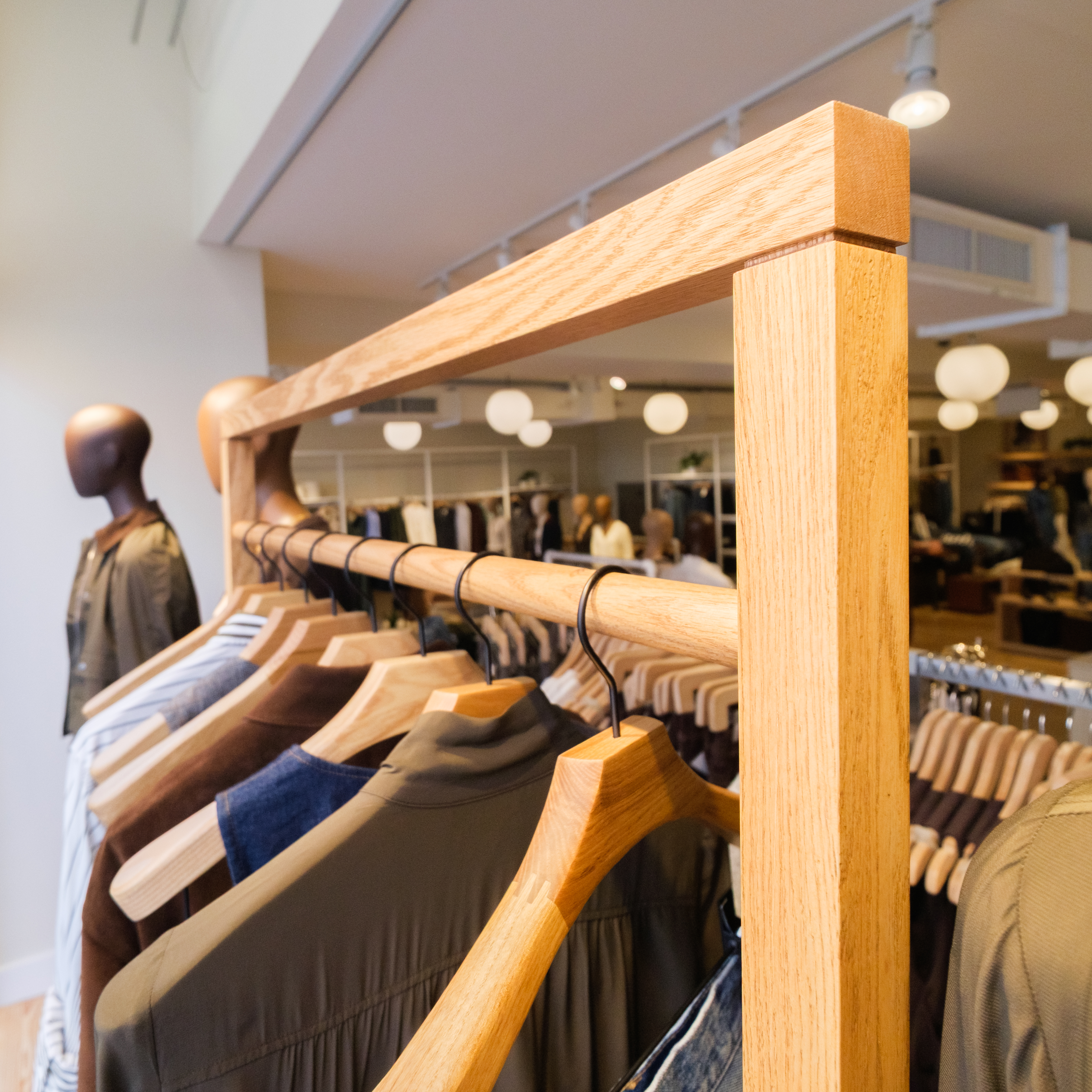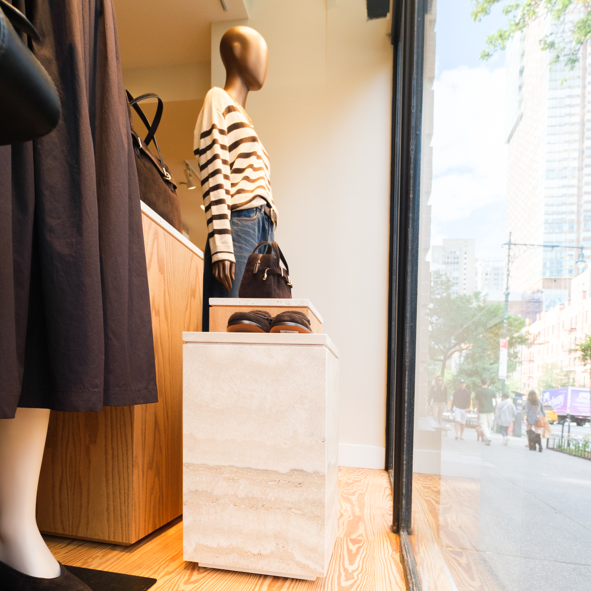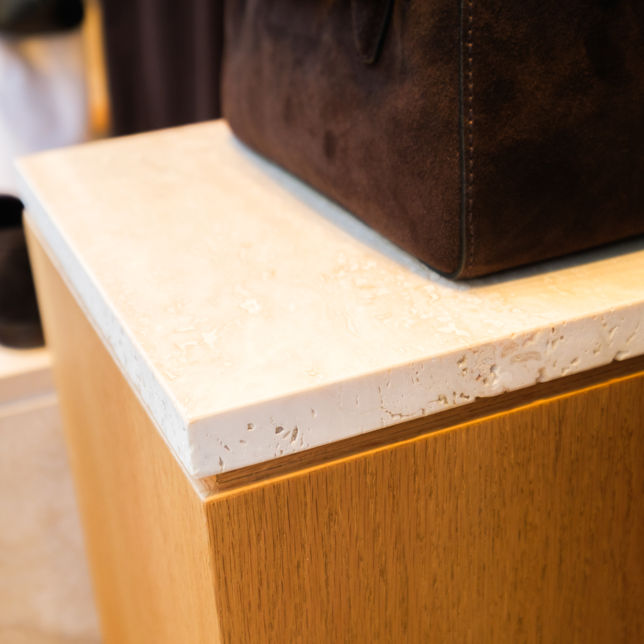 Rollin’ out to 80 stores nationwide with custom oak clothing racks, oak and travertine pedestals with bevel 1/4” reveal top and 2” toe kick. Planning that pack out be like, pack, test, pack and pack…oh so important.