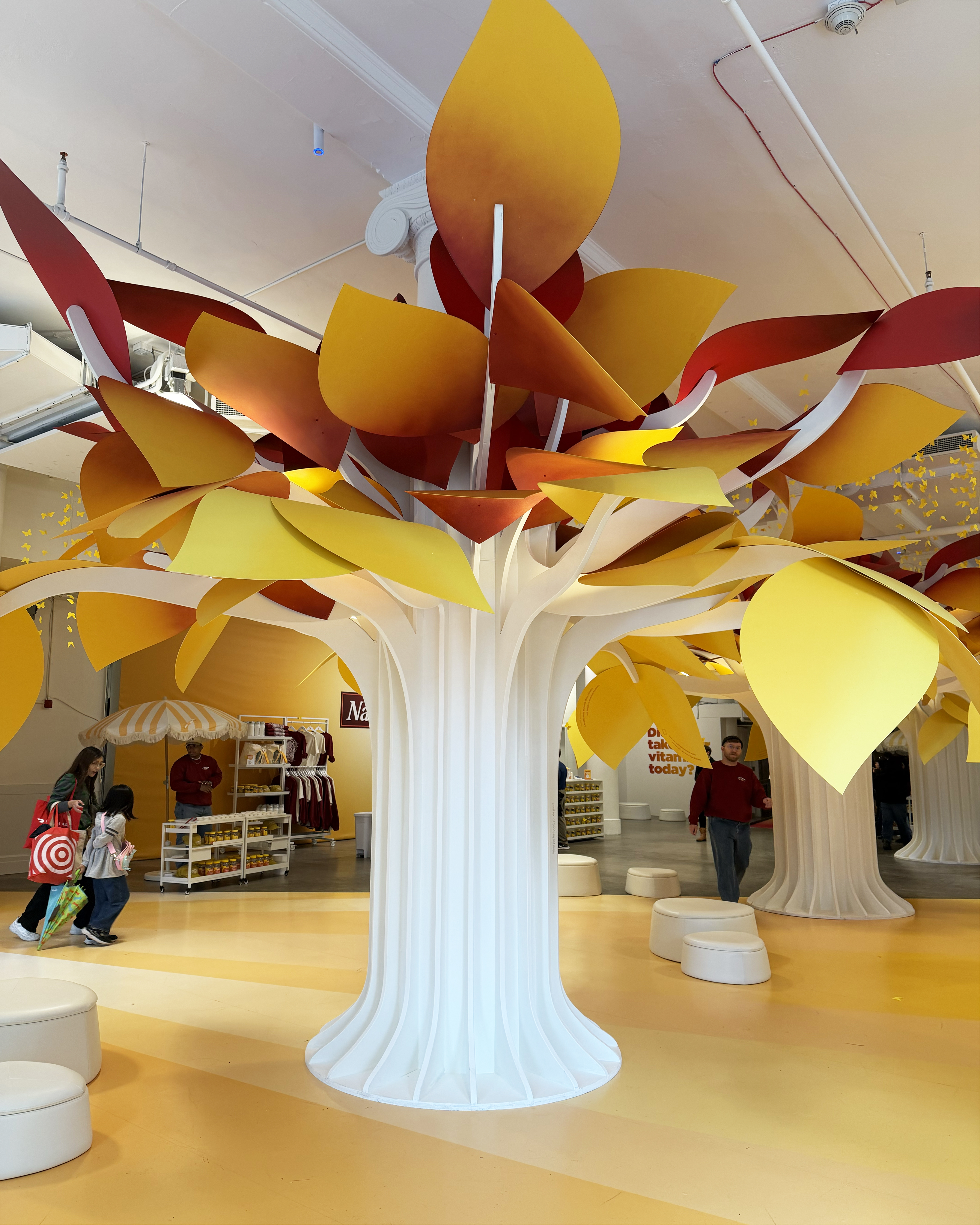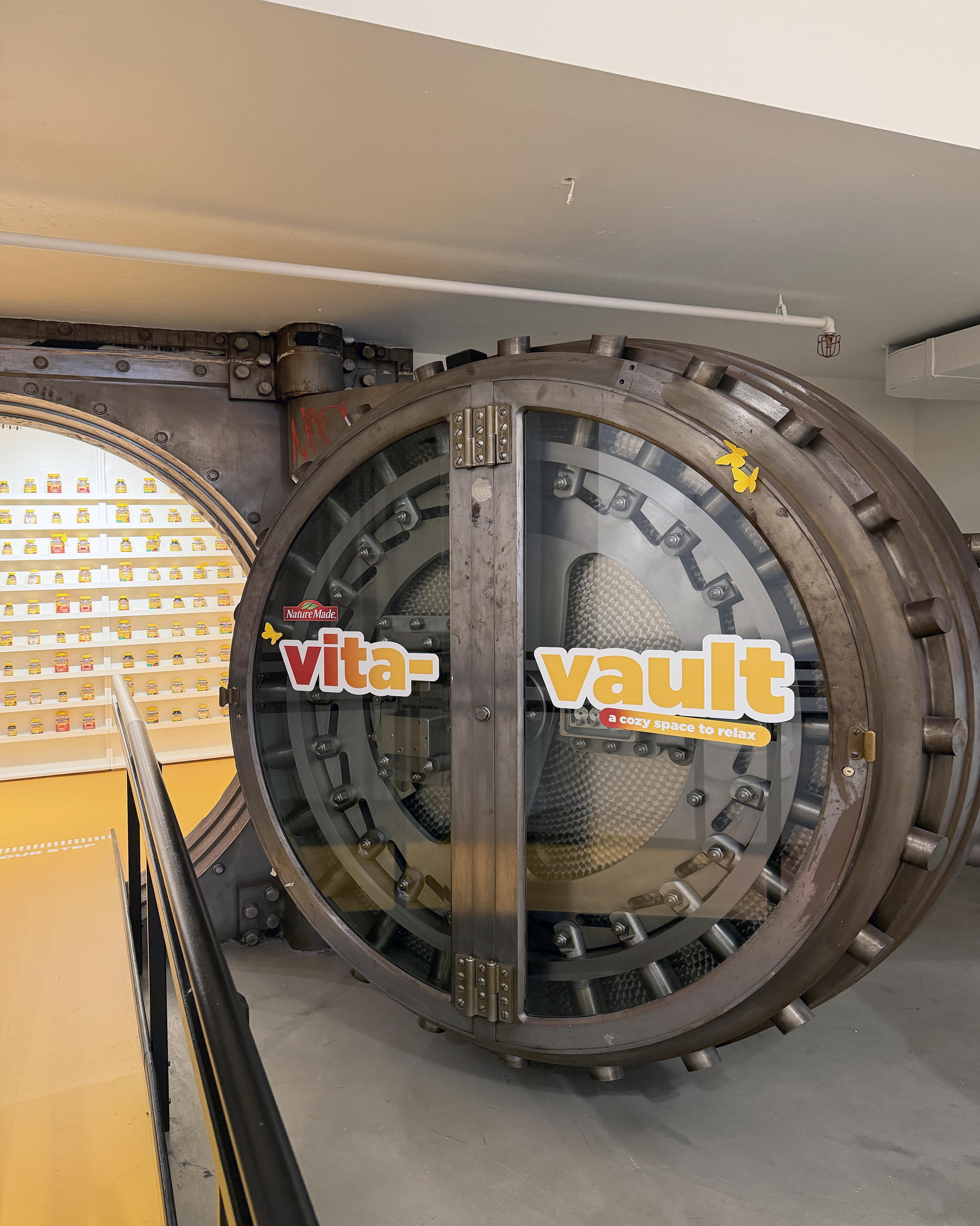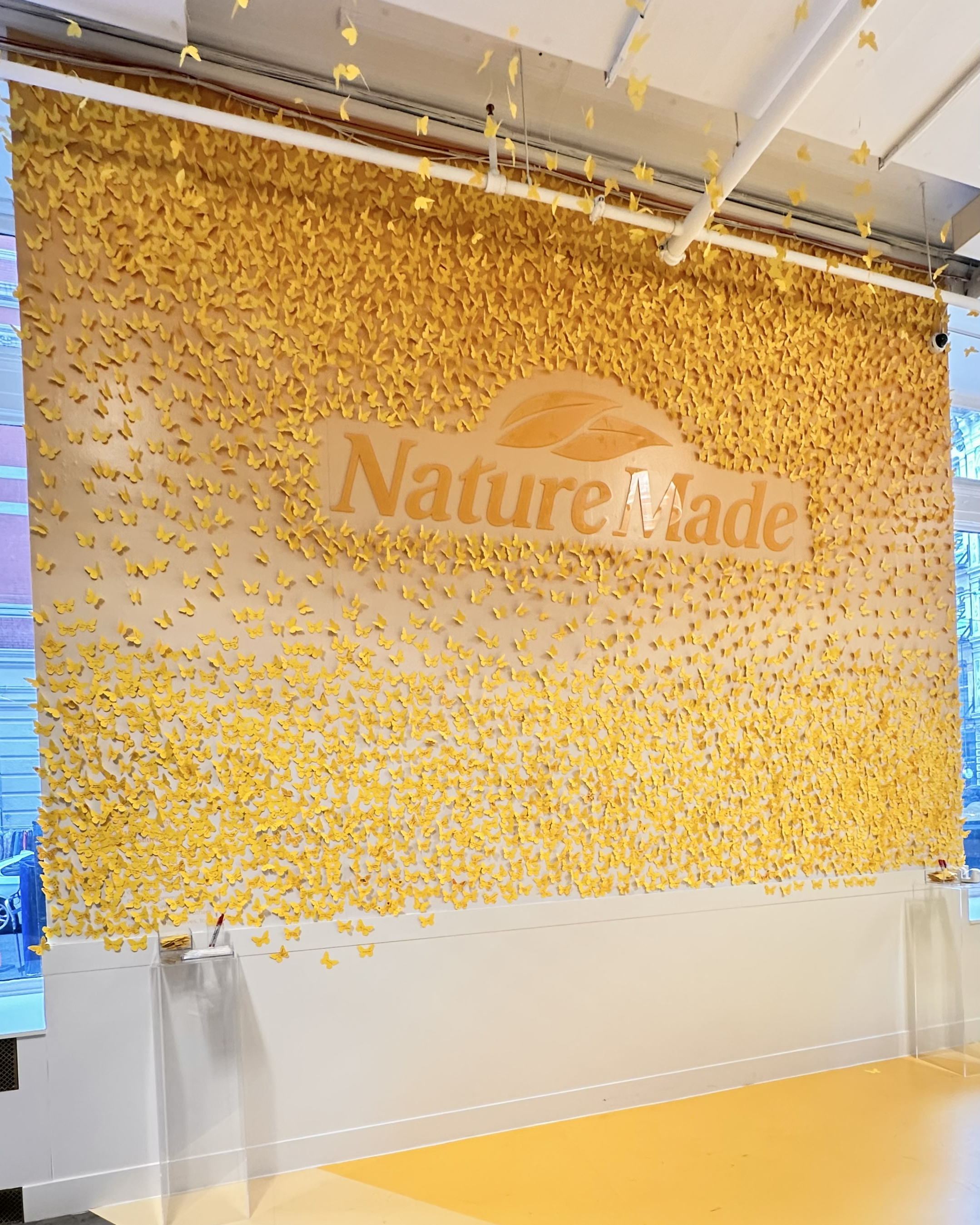 In partnership with Ten Space, Duggal Visual Solutions fabricated and installed the Nature Made® Wellness Experience, an interactive pop-up designed to inspire wellness through color, light, and texture. Duggal produced floor, wall, glass, and column graphics, custom shelving and branded displays, and the signature “Vita Vault” installation—a transformed bank vault featuring illuminated shelving and door graphics. Additional elements included a butterfly wall, cashwrap, storefront façade, and sculptural “Wellness Grove” trees, all brought together to create an uplifting, sensory environment for visitors.