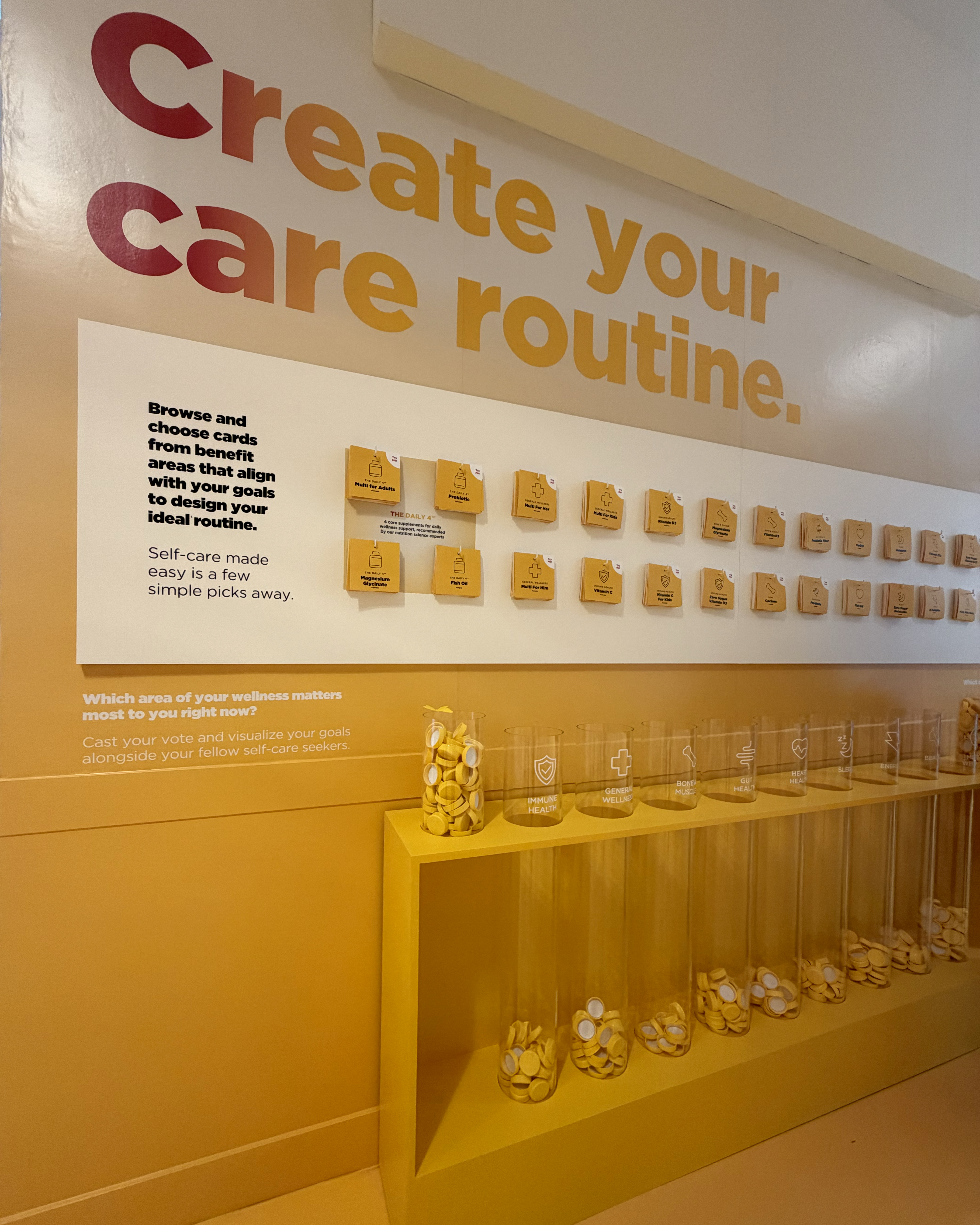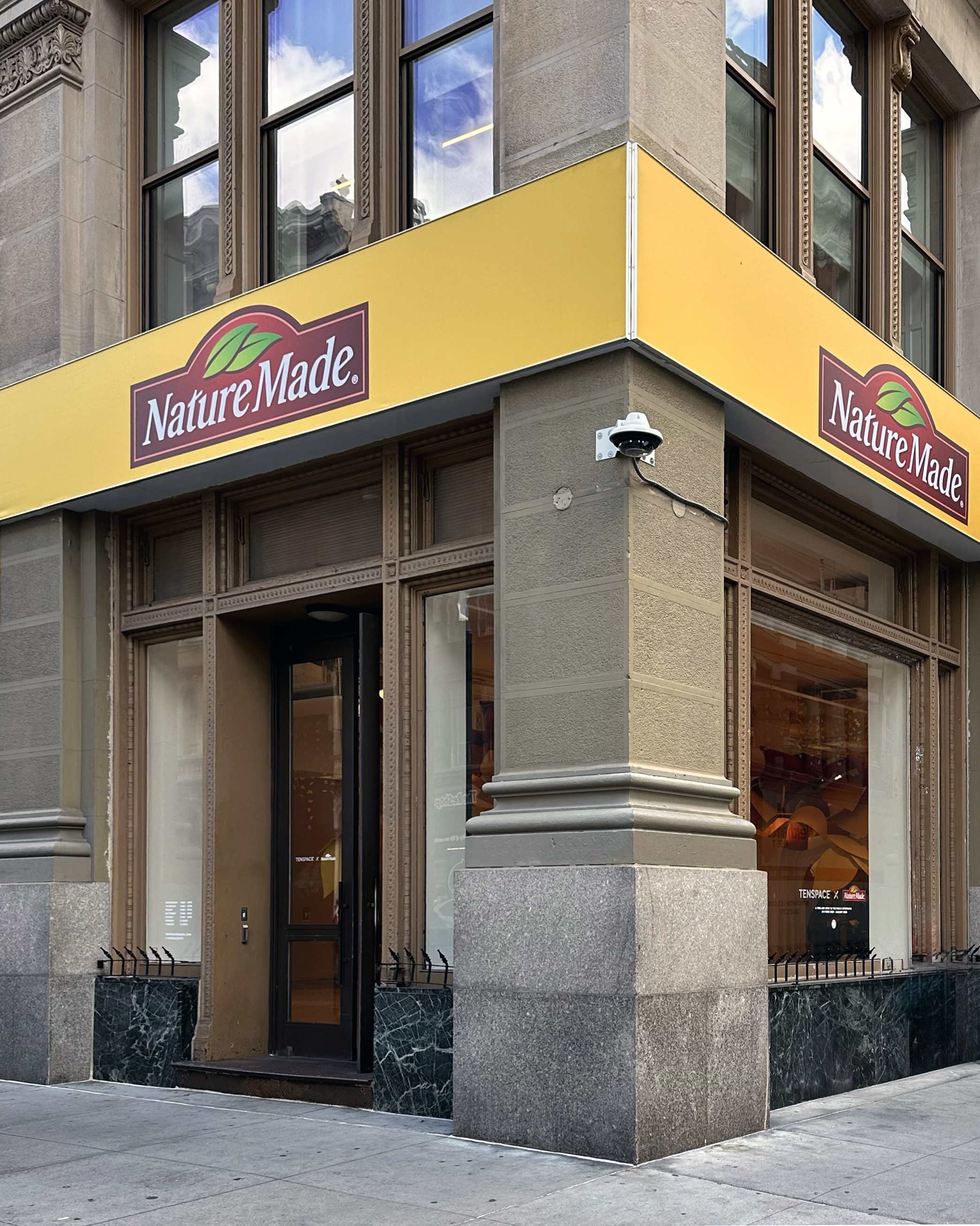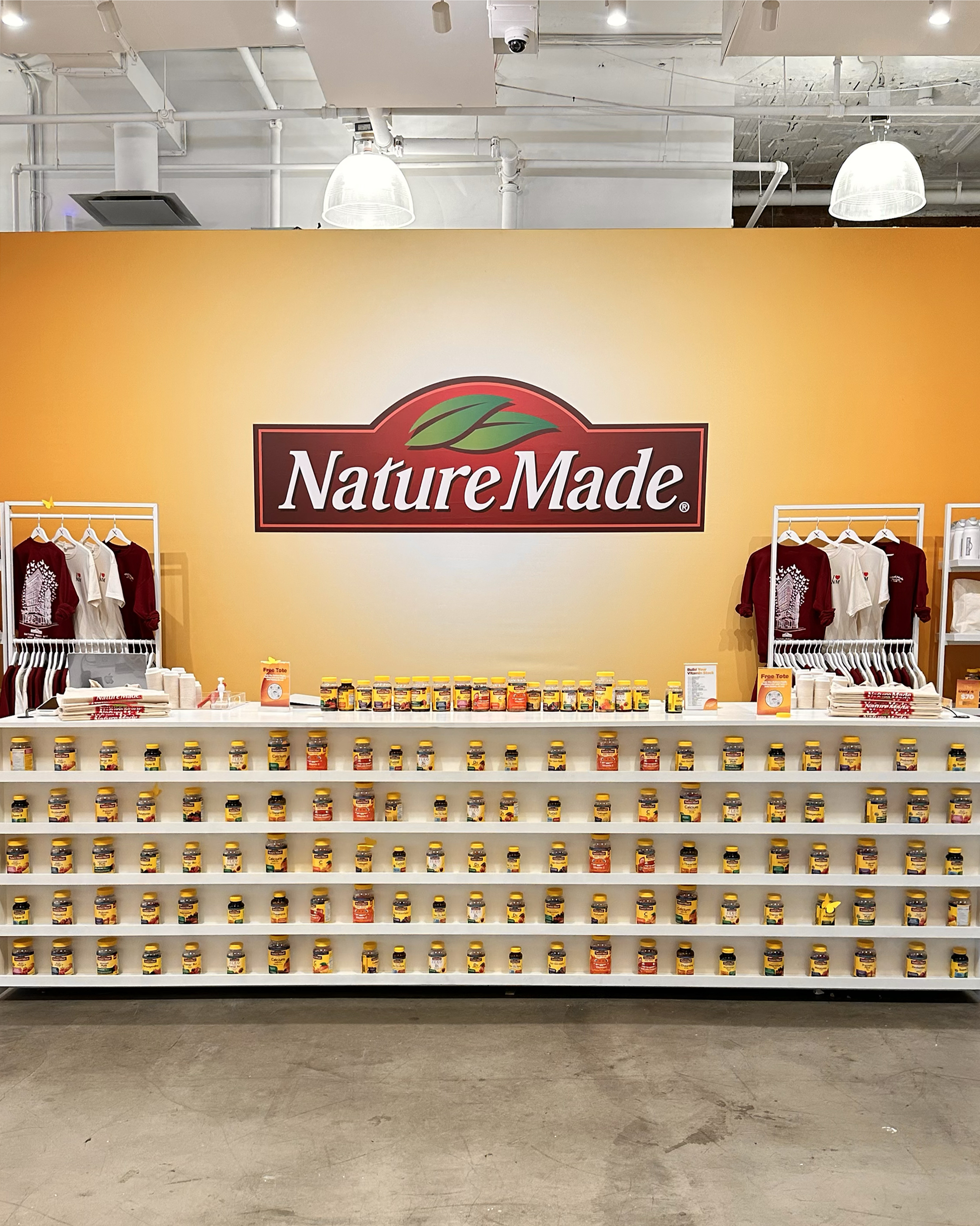 In partnership with Ten Space, Duggal Visual Solutions fabricated and installed the Nature Made® Wellness Experience, an interactive pop-up designed to inspire wellness through color, light, and texture. Duggal produced floor, wall, glass, and column graphics, custom shelving and branded displays, and the signature “Vita Vault” installation—a transformed bank vault featuring illuminated shelving and door graphics. Additional elements included a butterfly wall, cashwrap, storefront façade, and sculptural “Wellness Grove” trees, all brought together to create an uplifting, sensory environment for visitors.