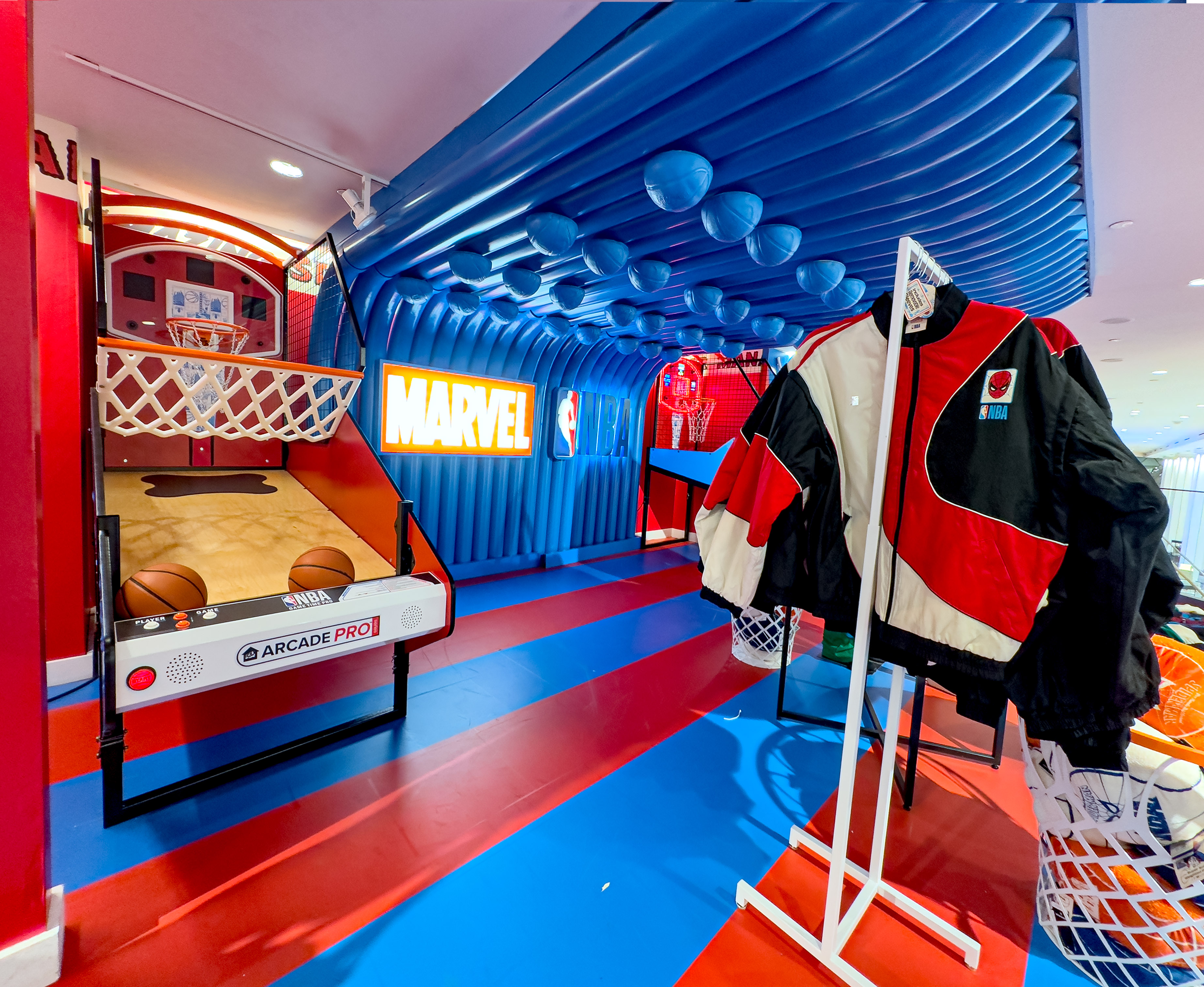Duggal Visual Solutions partnered with Macy’s to bring to life, the retailer’s exclusive Marvel and NBA collaboration—a Spider-Man-inspired capsule collection unveiled at Macy’s Herald Square. From creative development through fabrication and installation, Duggal delivered a bold, immersive environment that merged comic-book energy with athletic design.