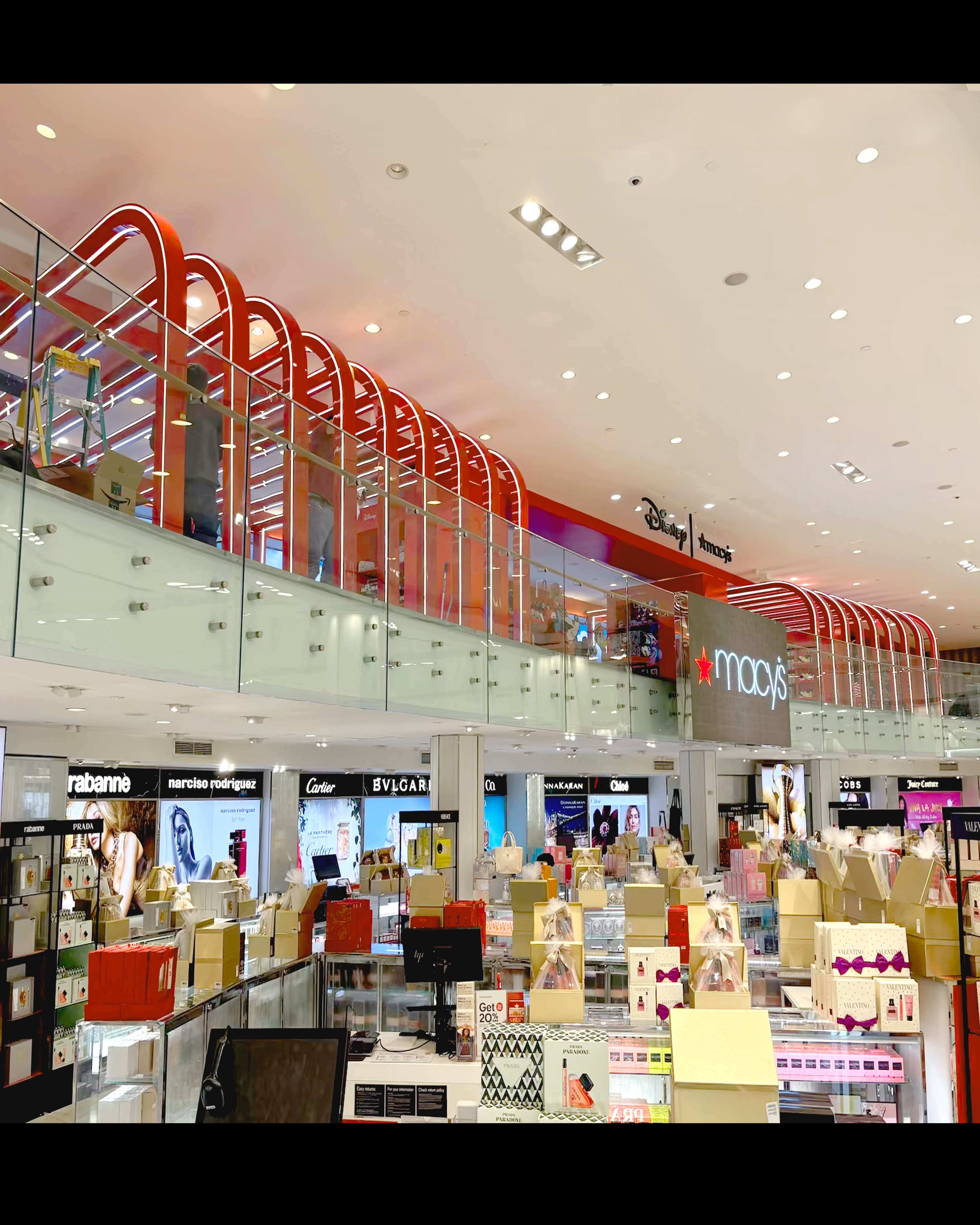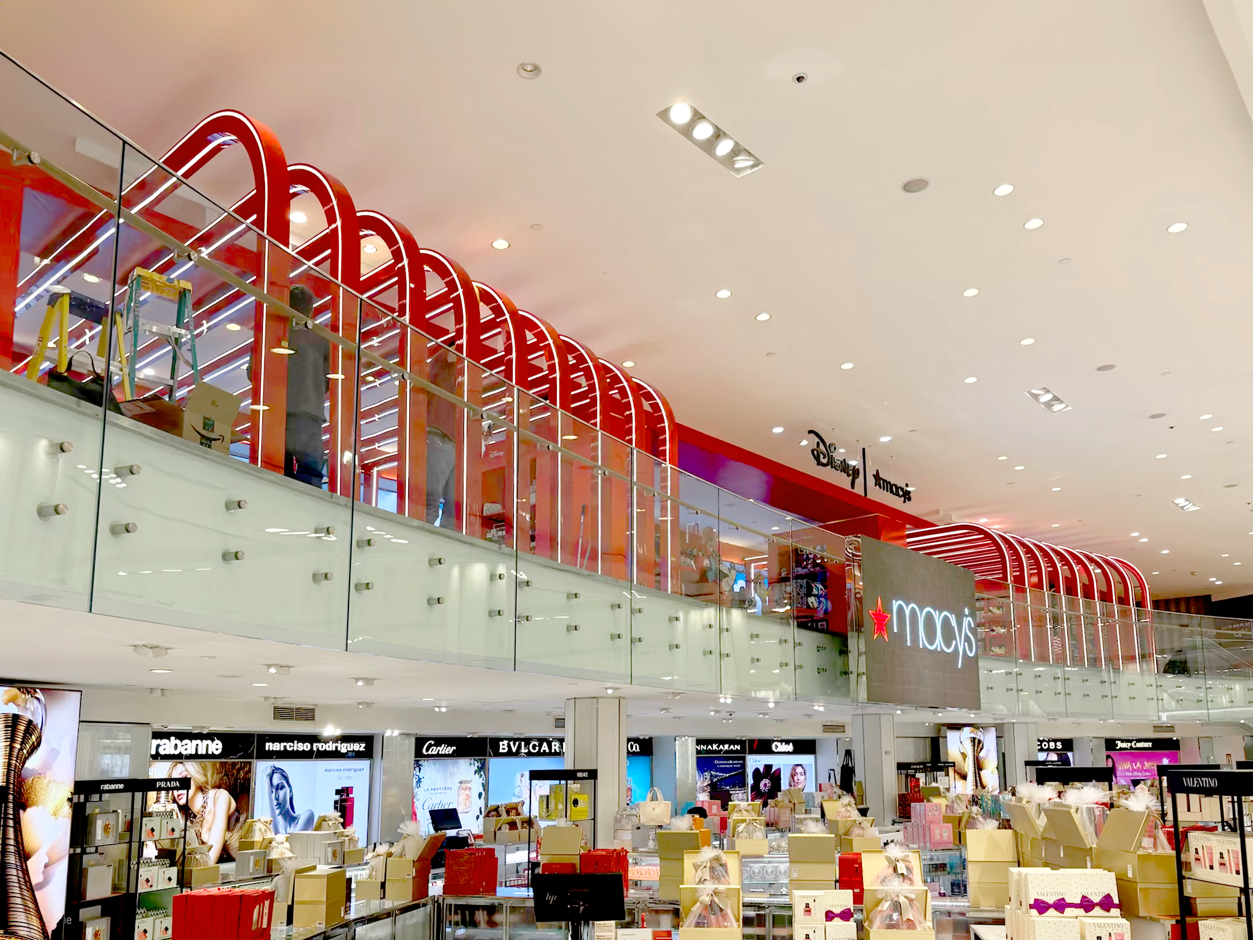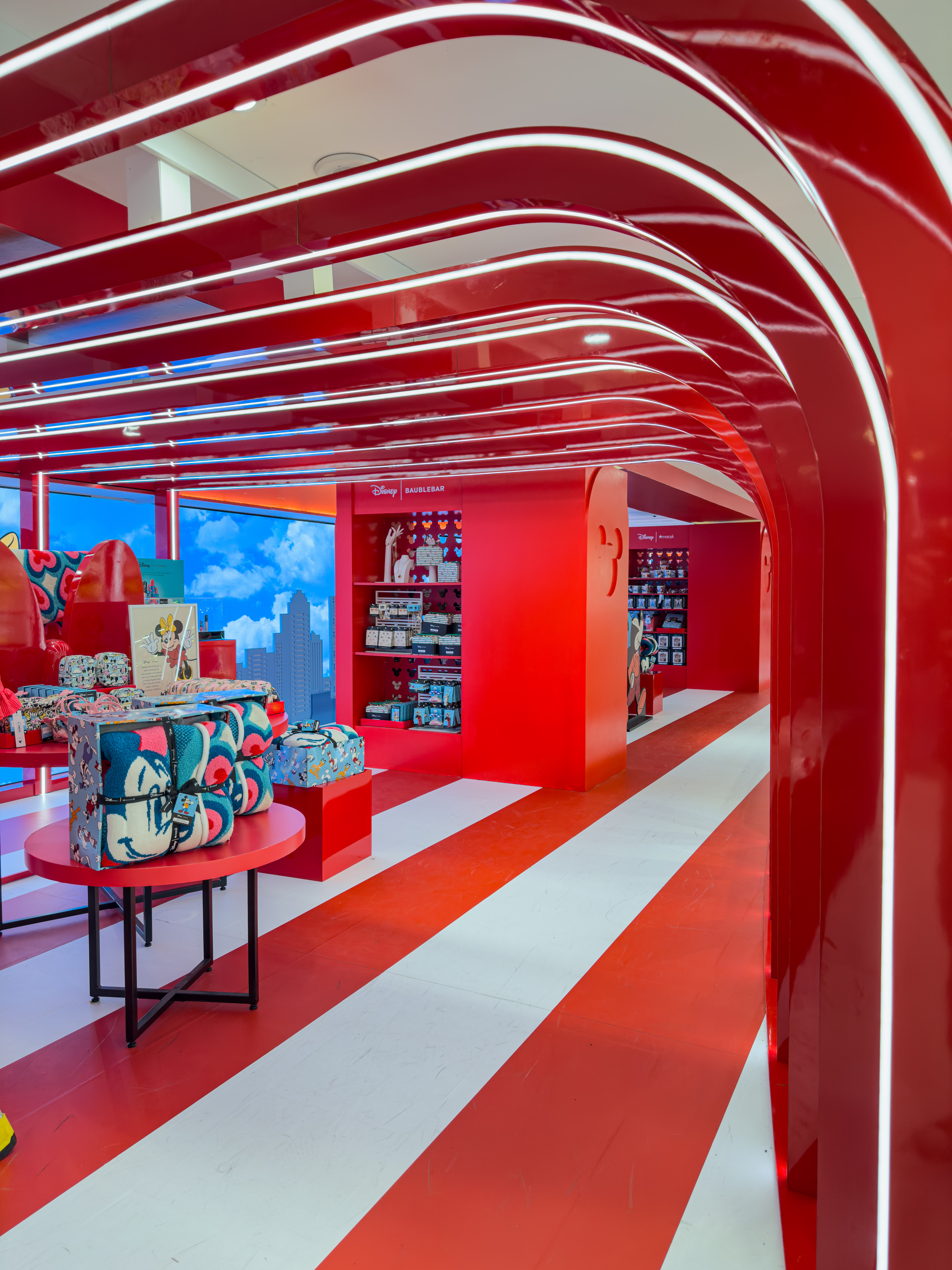 Commissioned by Macy’s, Duggal Visual Solutions transformed the Disney Holiday Collection launch into a vibrant, illuminated installation at Macy’s iconic Herald Square flagship. From creative design development through fabrication and installation, Duggal’s team managed every detail to bring the magic of Disney to life for the 2025 holiday season. The immersive build featured 20-foot illuminated red arches fabricated in aluminum and Sintra with sequential lighting, custom shelving columns with glowing acrylic boxes, and built-in wall displays finished in rich, holiday hues. A 65-foot LED screen formed the centerpiece, framed by 2D building façades, vinyl-wrapped walls and floors, and dimensional Disney characters printed direct-to-surface on sculptural stands. Duggal also handled onsite project management, vinyl and prop installation, and logistics and delivery coordination to ensure precision and quality throughout. The result: a color-rich, light-filled retail environment that seamlessly blended Disney’s storytelling magic with Macy’s signature holiday presentation—an inspiring example of Best Use of Light, Best Collaboration, and Best Exhibit/Installation in retail design. #macys #disney #holidaydisplay #retaildesign #fabrication #installation #visualmerchandising #duggalvisualsolutions #bestuseoflight #bestcollaboration #bestexhibit #heraldsquare #nyc