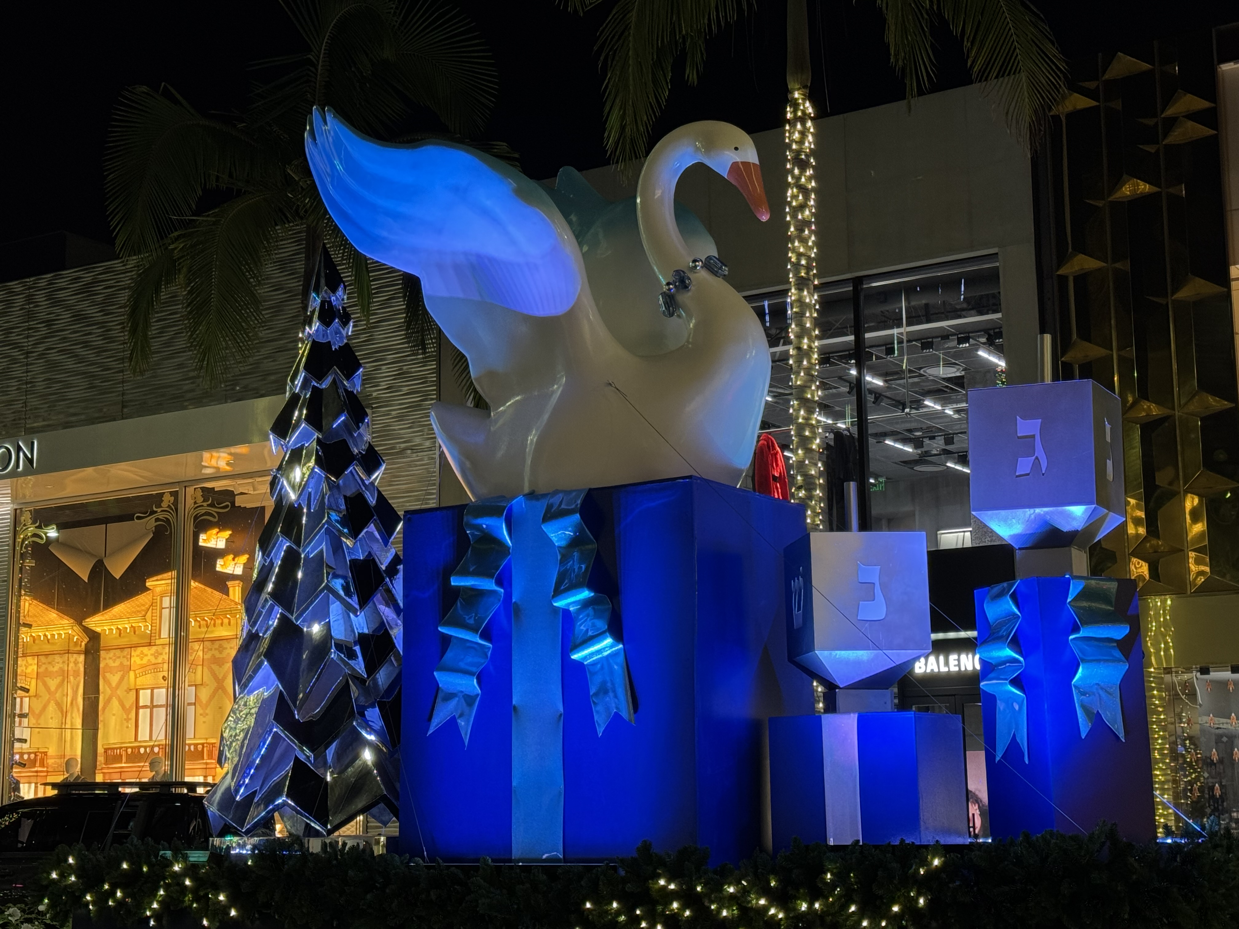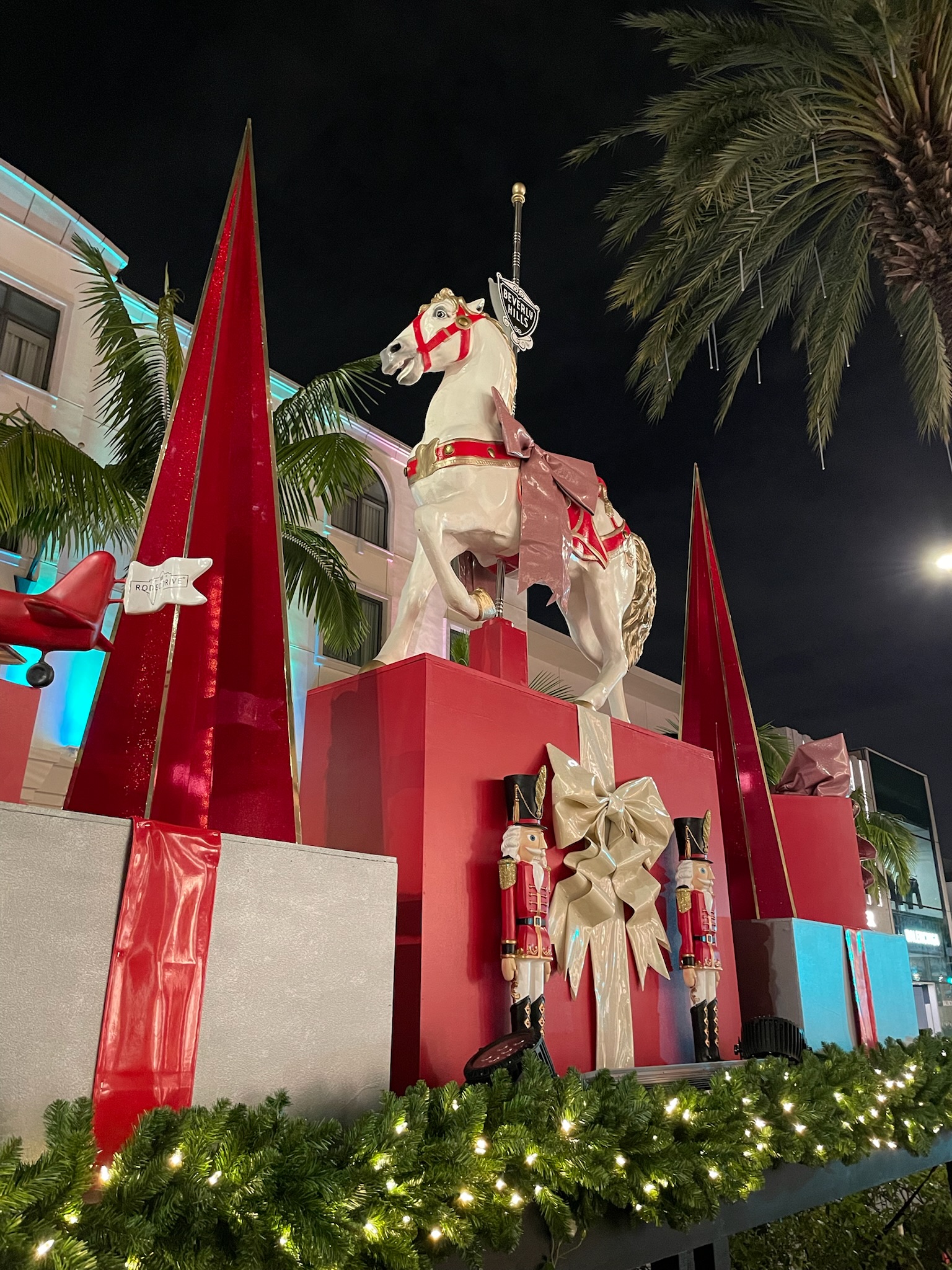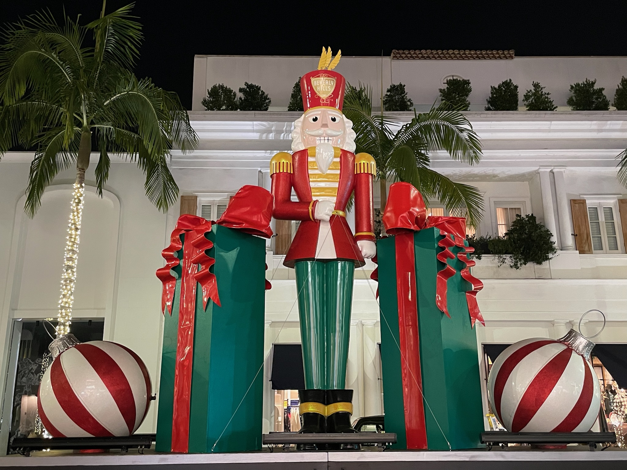 The City of Beverly Hills and the Rodeo Drive Committee proudly present this year’s holiday installation, “Enchanted Holiday Dreams,” a shimmering celebration inspired by Tchaikovsky’s The Nutcracker ballet. Spanning three iconic blocks from Wilshire Boulevard to Santa Monica Boulevard, Rodeo Drive transforms into a theatrical winter fantasy, alive with oversized characters and sparkling moments of magic. Guests are greeted by towering 12-foot Nutcrackers, a majestic “Mouse Maestro” poised atop jeweled percussion drums, and graceful ballerinas twirling beneath cascades of lights that drape elegantly from palm to palm. Additional vignettes include 10-foot origami-inspired chrome trees, soaring stacks of gifts adorned with custom Rodeo Drive tags, and whimsical statement pieces such as a bejewelled swan and an antique-style carousel horse. Designed by Set + Stage Creative in Los Angeles, the display was crafted to evoke warmth, wonder, and a sense of grand holiday enchantment—bringing a touch of theatrical storytelling to the world’s most iconic luxury shopping street.