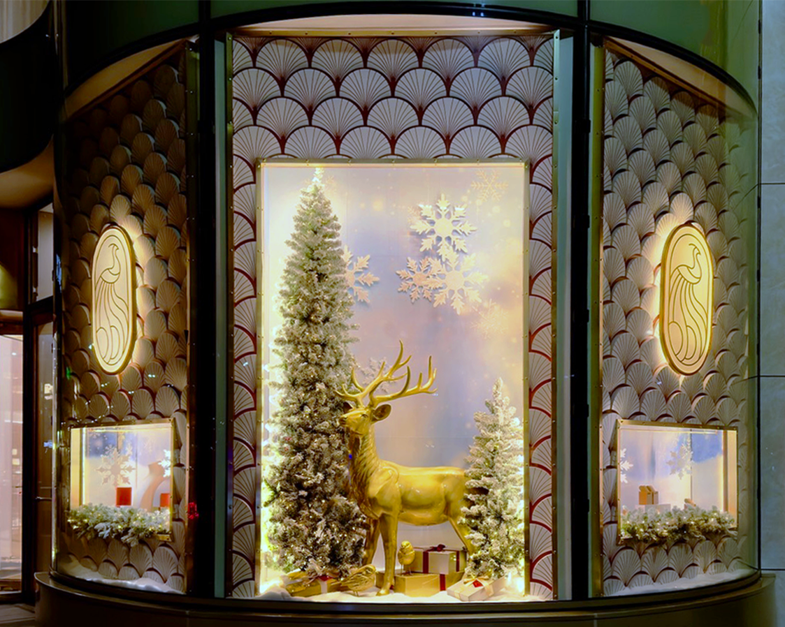 Duggal returned to the CD Peacock Mansion in Chicago to craft a renewed Holiday experience for 2025, blending handcrafted décor, illuminated architectural elements, and a refreshed window story that spans the façade. The installation spotlights a towering gift-box tree, ornate display case treatments, and a dramatic exterior wrap—creating a festive atmosphere that carries through the mansion’s grand interiors. The seasonal presentation will captivate visitors throughout the holiday period.