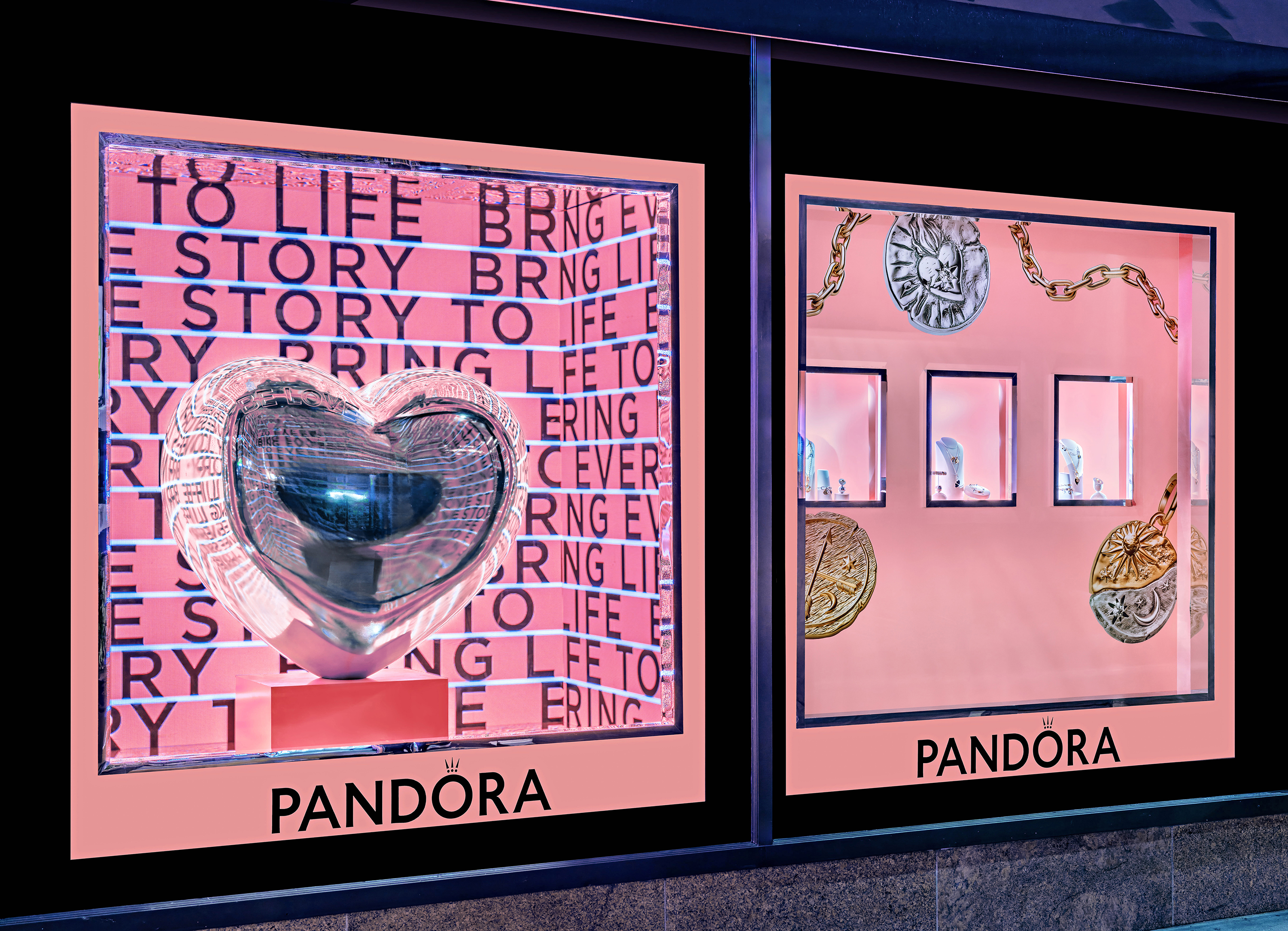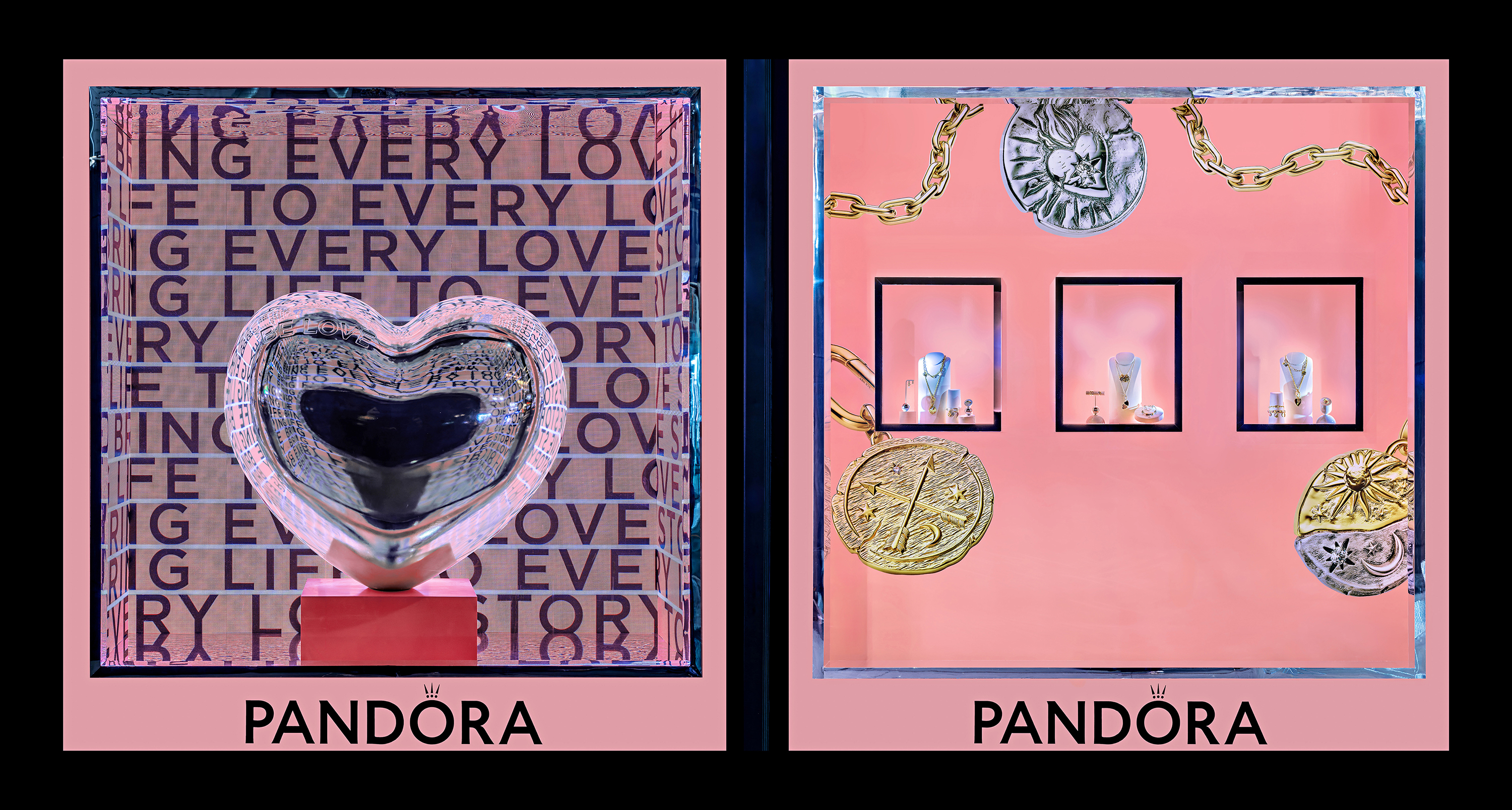 The striking installation, created by B_RD, captivated passersby with a bold product presentation framed by signature Pandora iconography. Most notably, the brand’s beloved puffy heart charm was reimagined at an impressive scale and set against a dynamic digital backdrop that brought motion and magic to the scene.