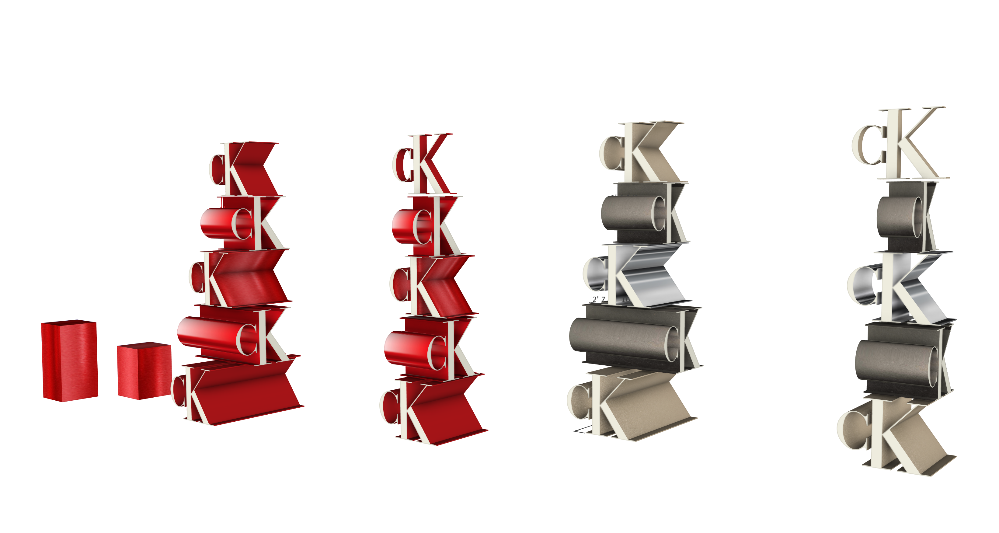 Together, the finishes (Metallic Red, Champagne Metallic, and the illuminated White branding elements) deliver three distinct material effects that support the brand’s Holiday Heat campaign: bold, modern, and premium. The installation functions as both a holiday centerpiece and a visual amplifier of Calvin Klein’s iconic identity—clean lines, strong shapes, and minimalist impact with seasonal warmth.