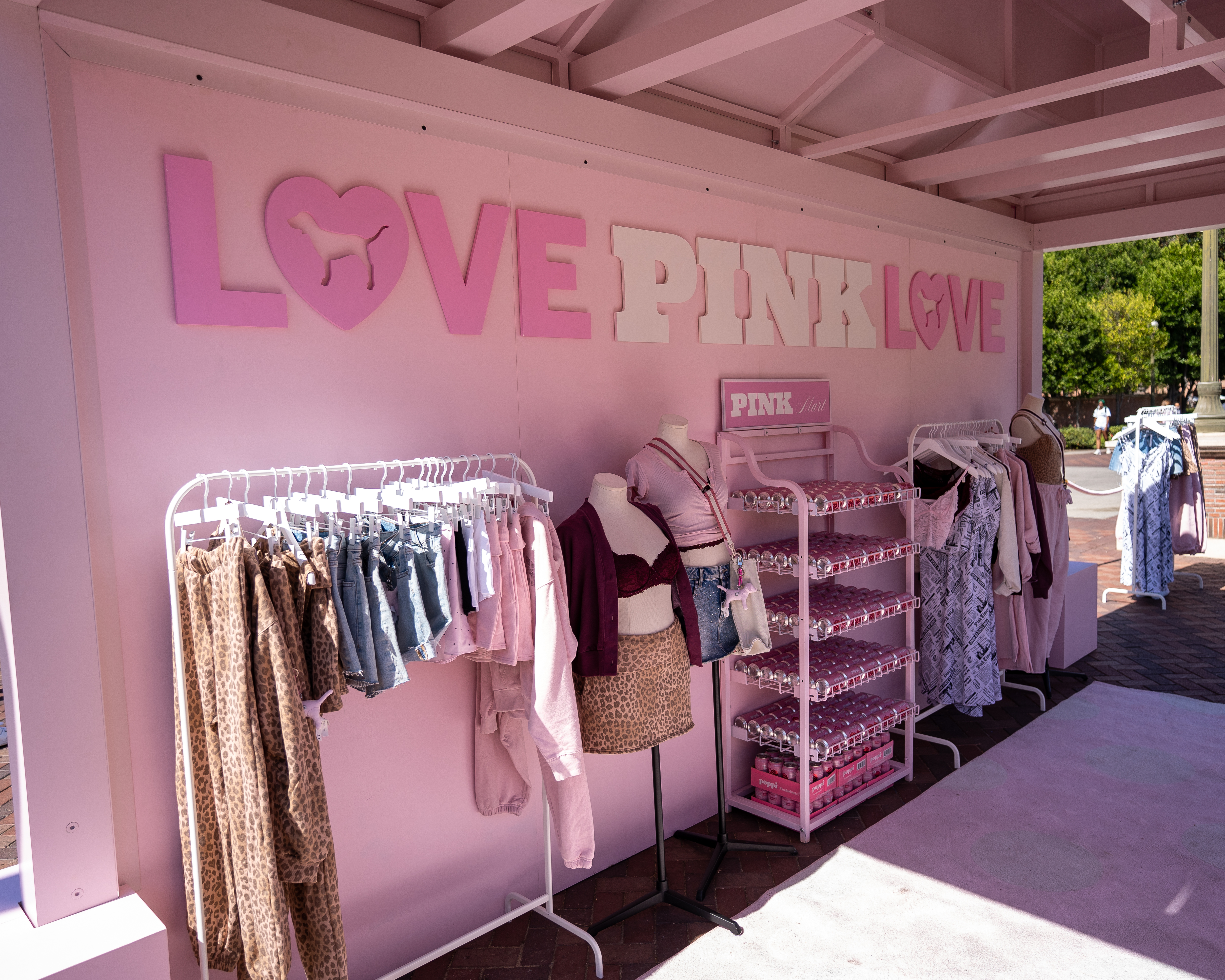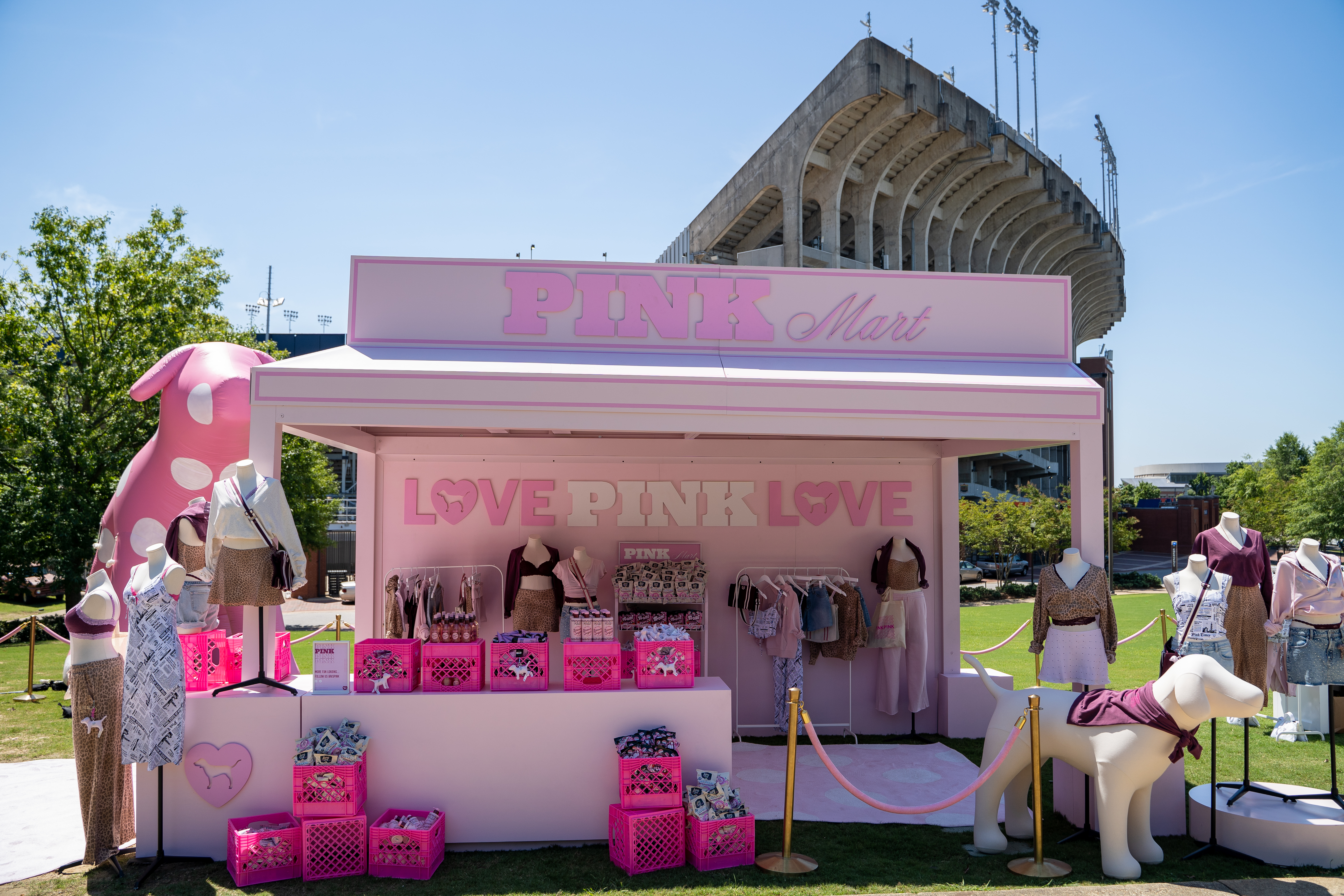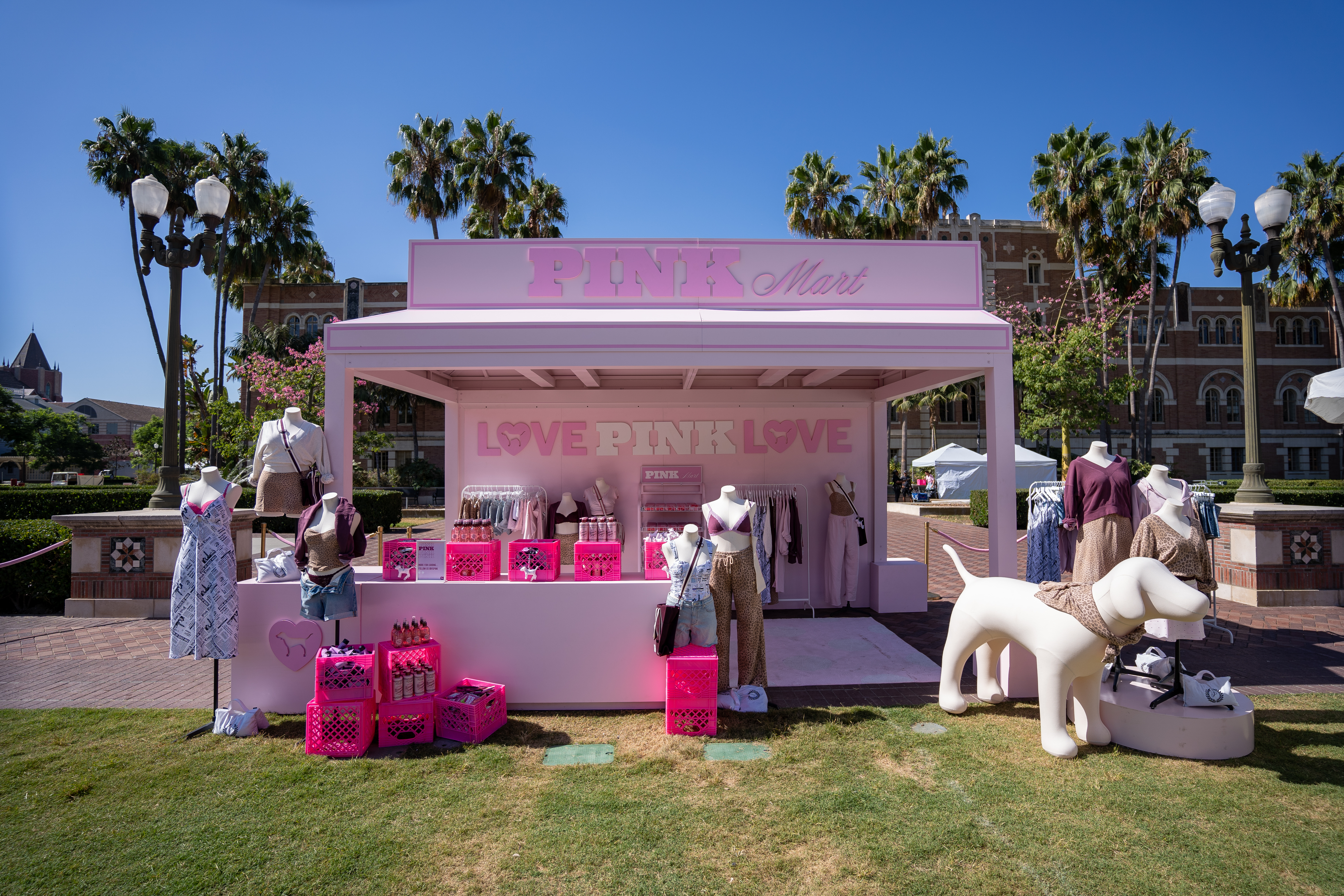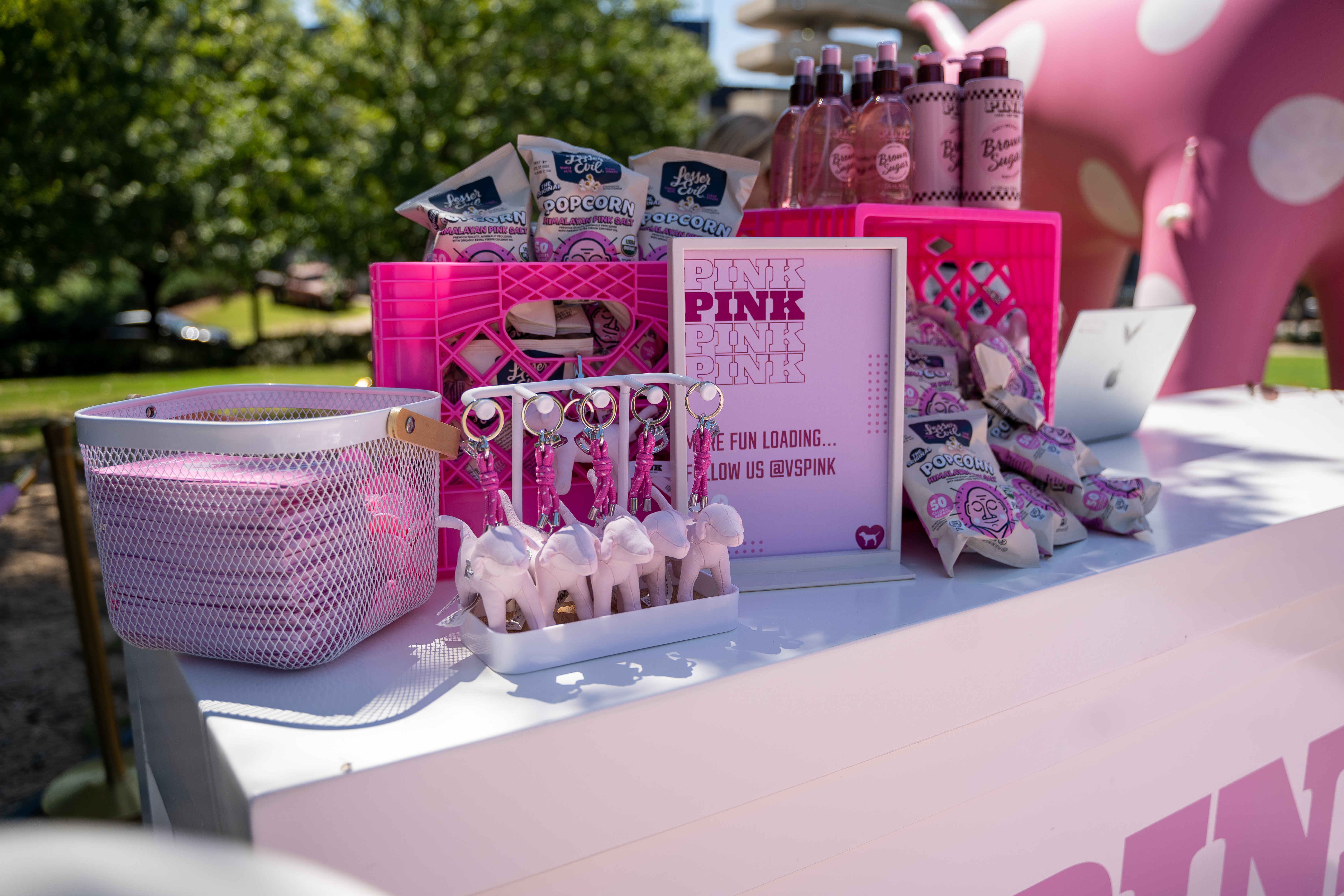 Victoria's Secret PINK celebrated the launch of their Fall Pink in the City campaign and back to campus collection with a city inspired corner market pop up that traveled across 3 campuses. The buildout featured a custom shoppable market where guests could shop product, fill up a "Thank You" style PINK grocery bag with free snacks and beauty products as well as take pictures with a 13' inflatable dog mascot. In partnership with 3CS Productions.