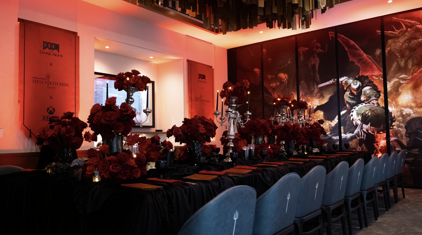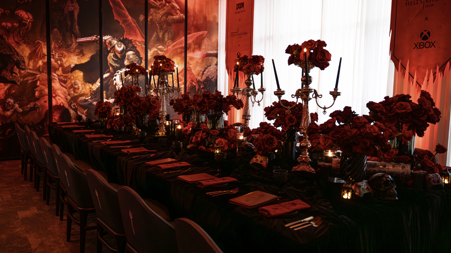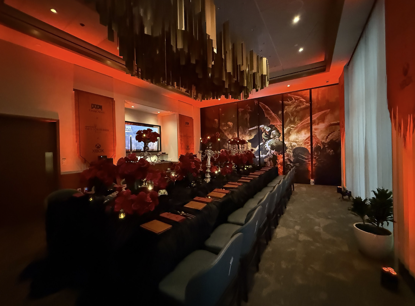 To celebrate the launch and early access to DOOM: The Dark Ages; Xbox, Bethesda and Hell's Kitchen collaborated with Spark to create an immersive creators dinner in Miami. Guests enjoyed a special DOOM inspired menu, unique Skull Crack dessert and opulent room dressing to fully immerse them into the world of DOOM: The Dark Ages.