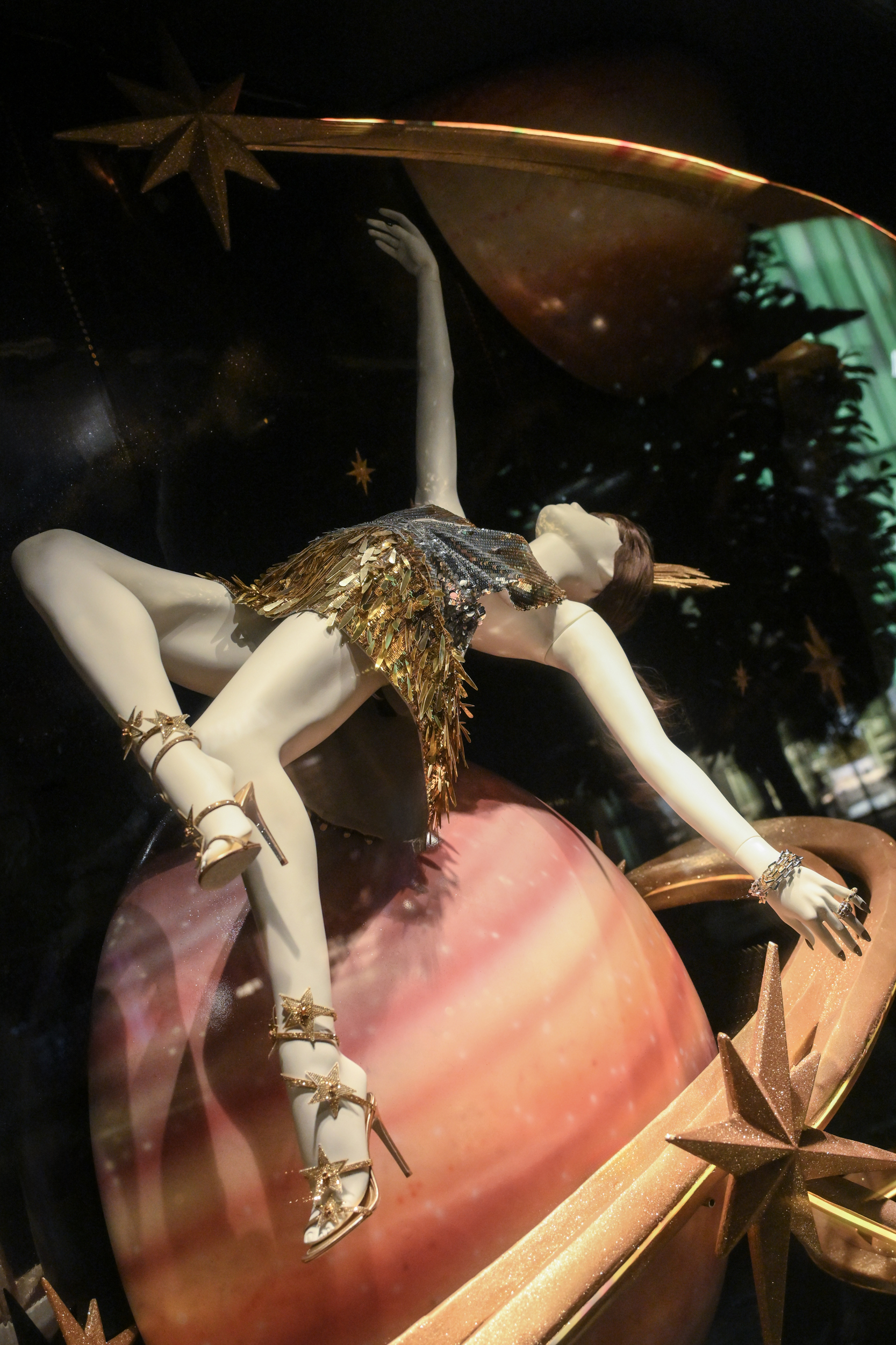 At the heart of the design are meticulously crafted planet structures and mannequin compositions that echo celestial surfaces, gradients, and orbit-like motion. Each element captures the energy and rhythm of a living, breathing cosmos.