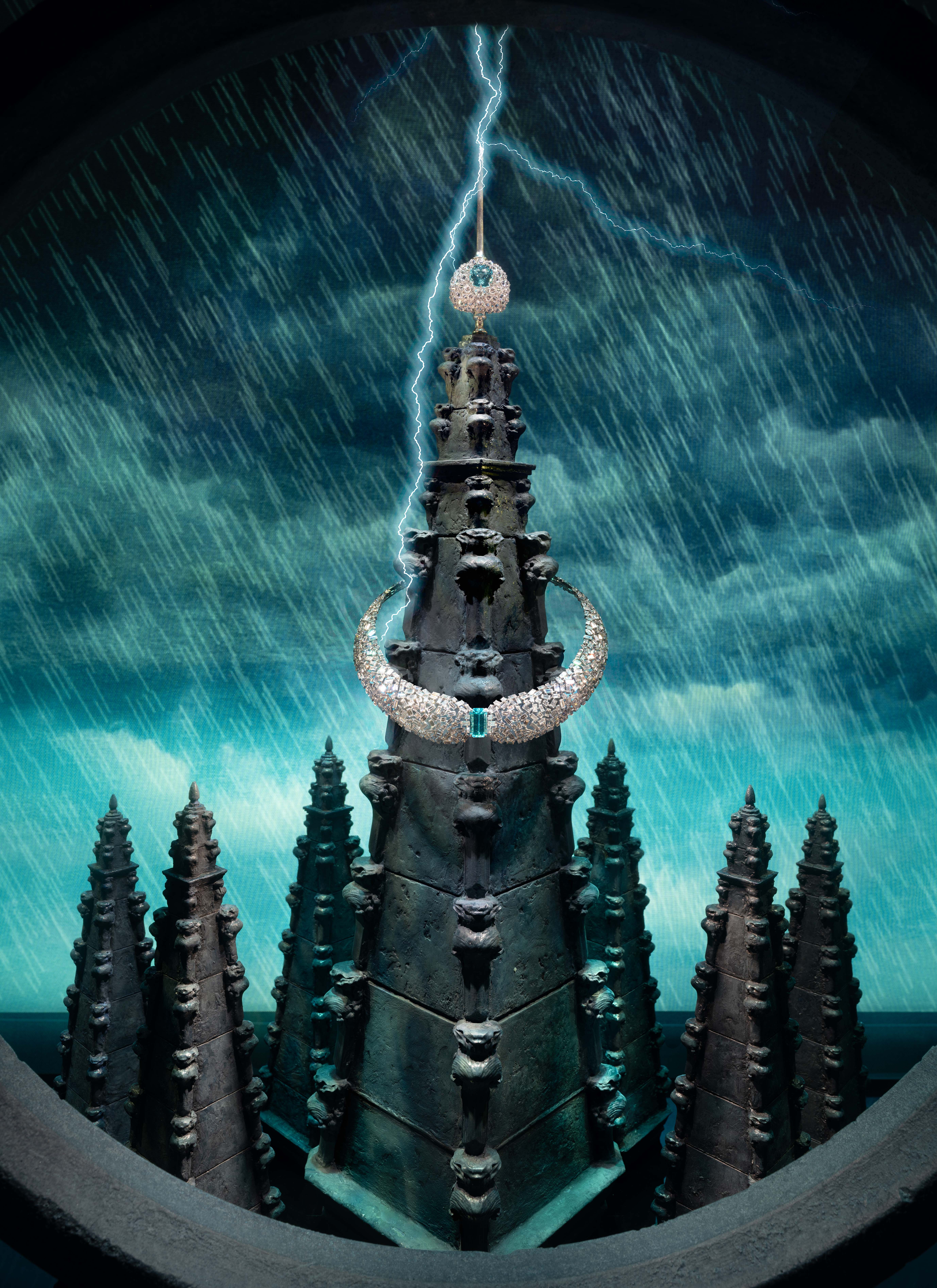 A special window collaboration paid tribute to the imaginative world of Guillermo del Toro’s Frankenstein. Directed by del Toro, this exclusive installation at The Tiffany Landmark featured archival treasures showcased in the film, intricate miniature set maquettes, and the haunting original score composed by Alexandre Desplat. The windows were brought to life under the leadership of Tiffany & Co.’s Vice President and Creative Director Christopher Young, Creative Production Director Camilla Slattery-Eidenberg, Window Design Director Gloria Kim, together with the CVM Design and Production teams.