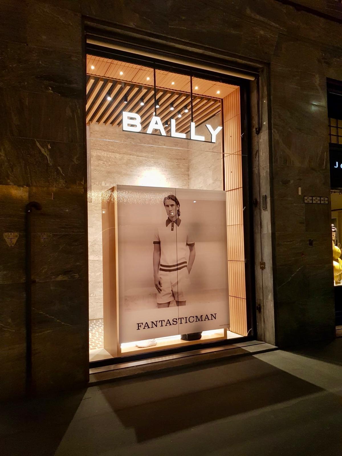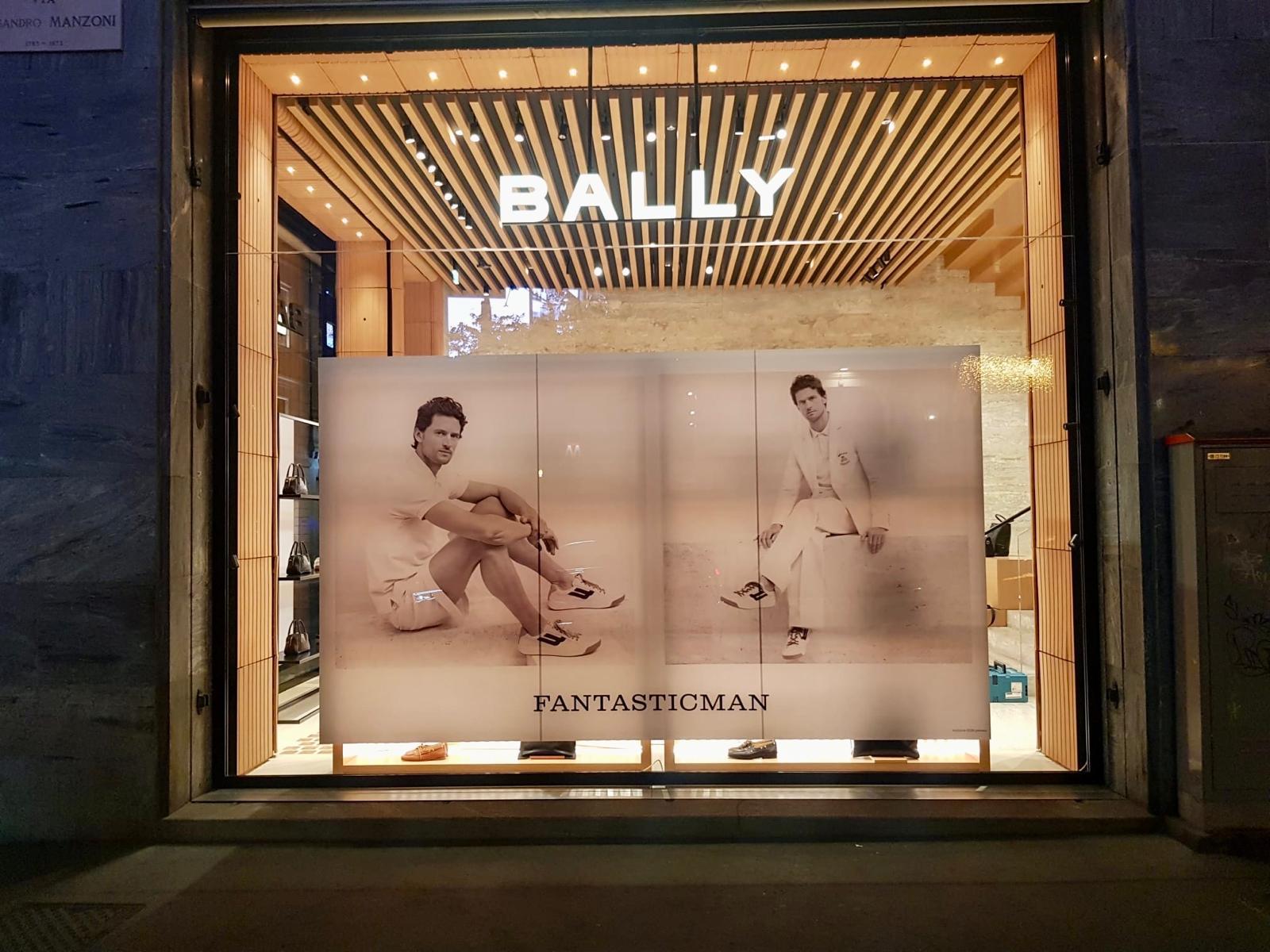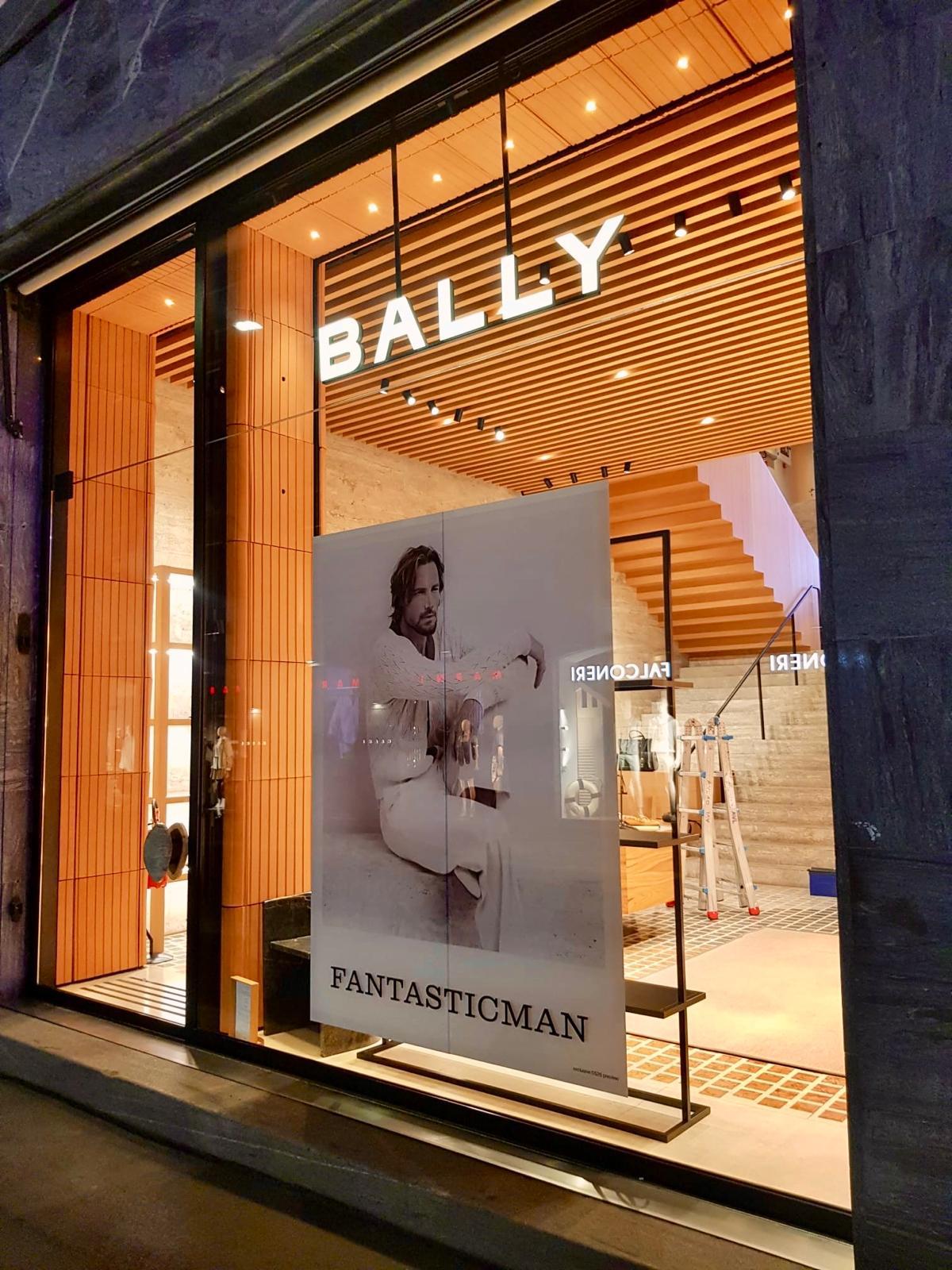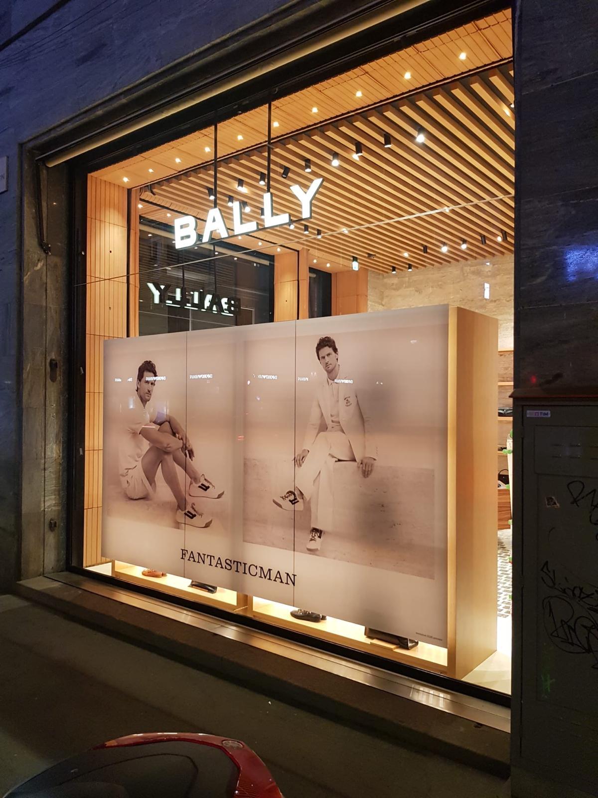 Bally stickers for shop windows in Via Montenapoleone, Milan