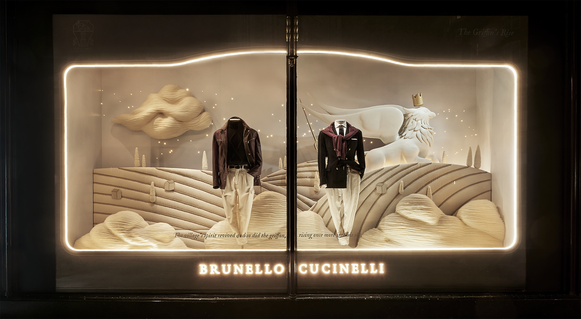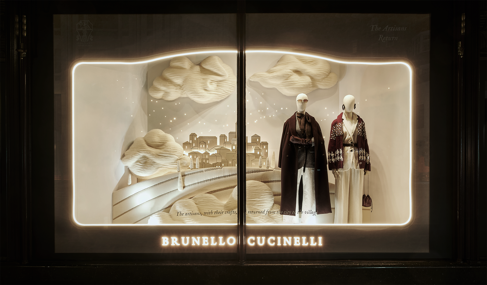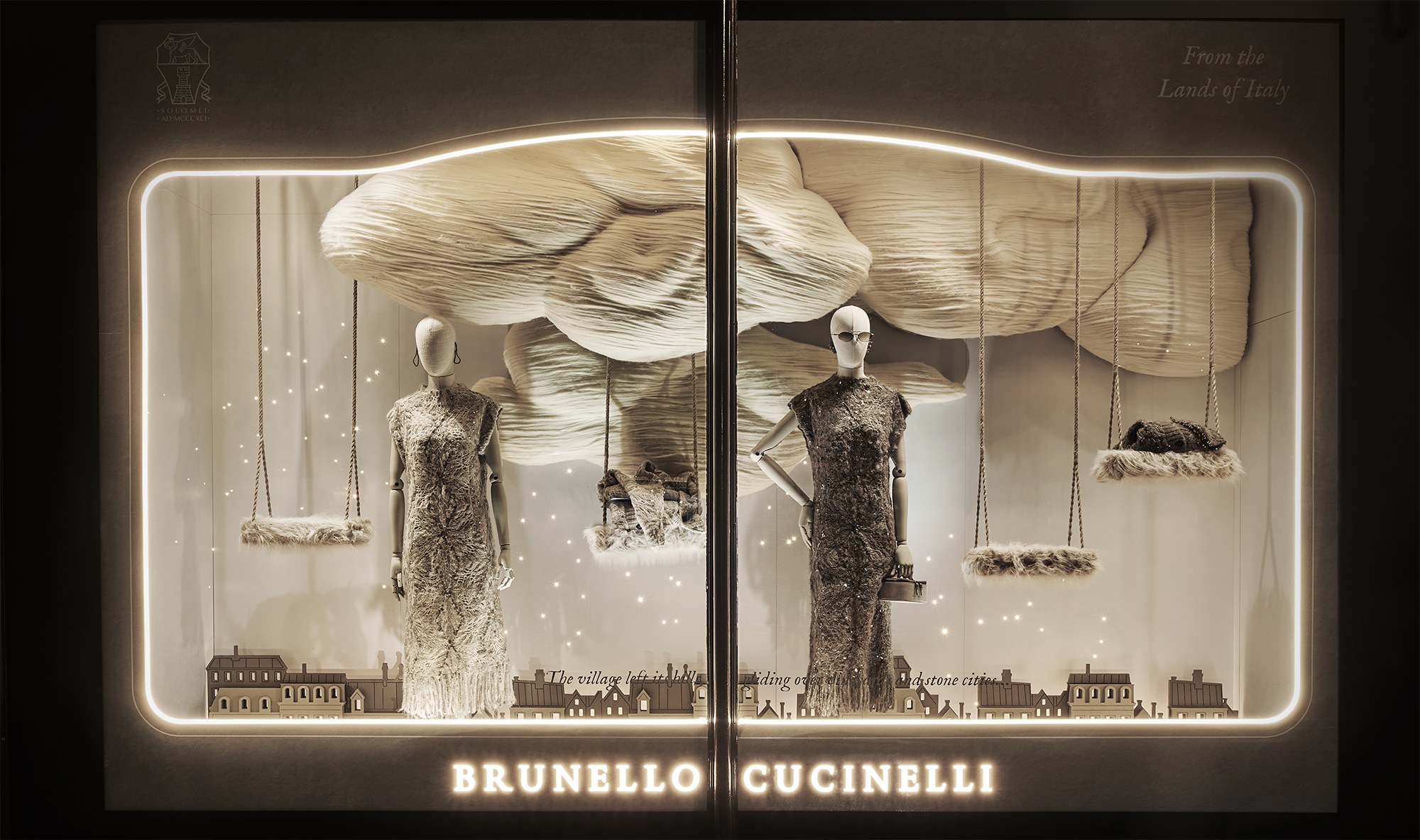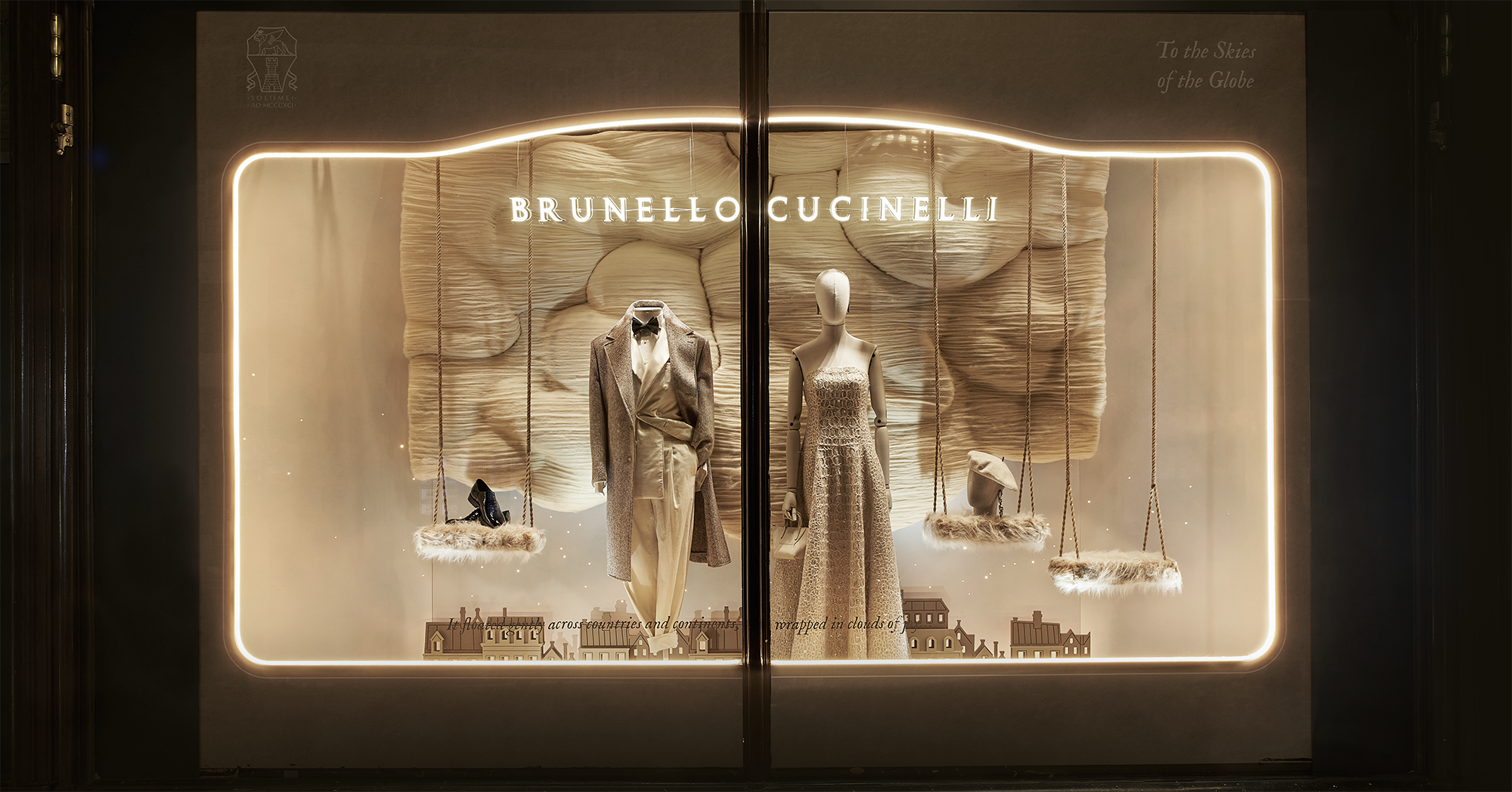 Brunello Cucinelli “Feelosophy” Christmas Takeover, Harrods, London, Westminster, GB Concept design by Axielab, production, installation and logistics by Pardgroup